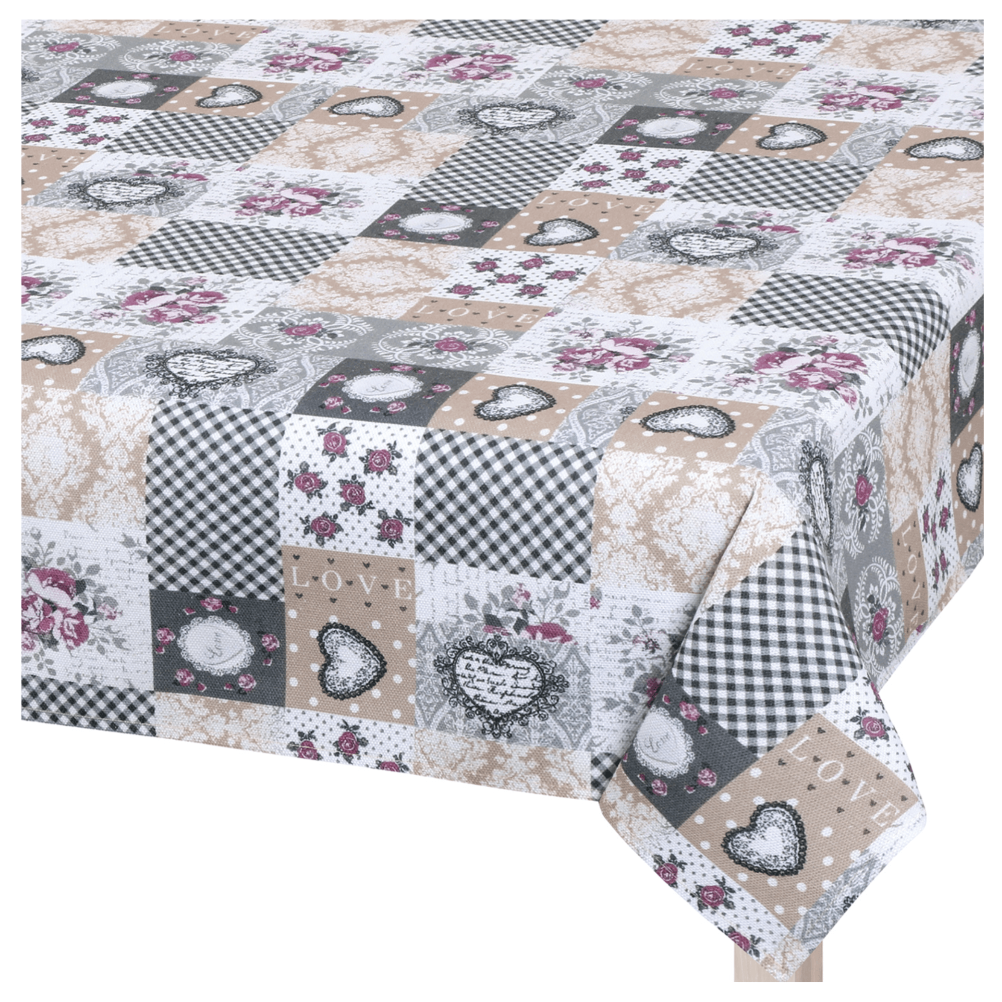 Obrus LOVE s nadčasovým patchwork motívom skvele oživí stôl ako pri domácich, tak aj vonkajších posedeniach s priateľmi či rodinou. Spoľahlivo tiež ochráni dosku stola pred znečistením aj mechanickým poškodením. Plátenné vyhotovenie je vyrobené z 90% bavlny a 10% polyesteru. Svoj obrus LOVE si môžete vybrať z viacerých rozmerov a kombinovať ho so sedákmi, vankúšikmi alebo chňapkou v rovnakom motíve.