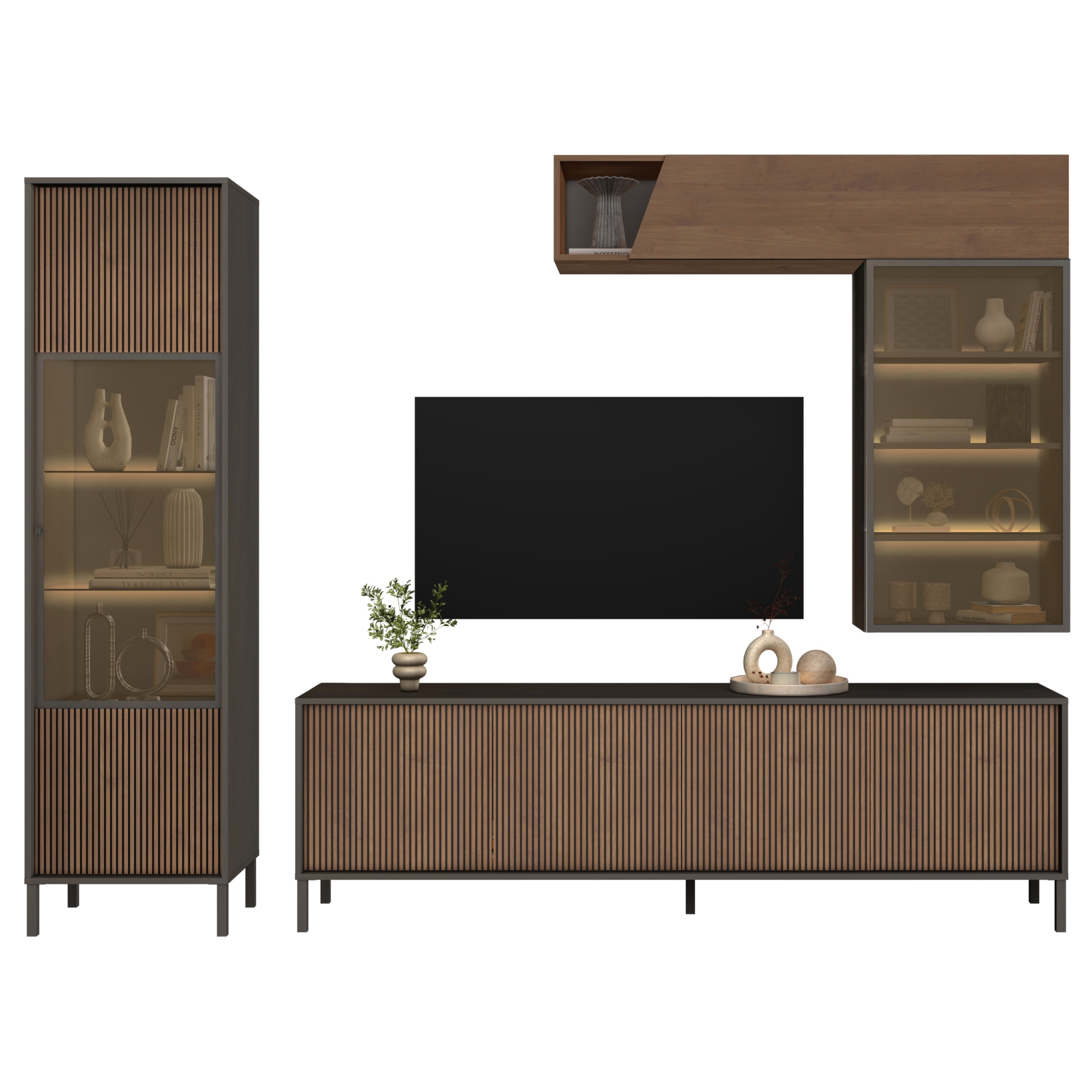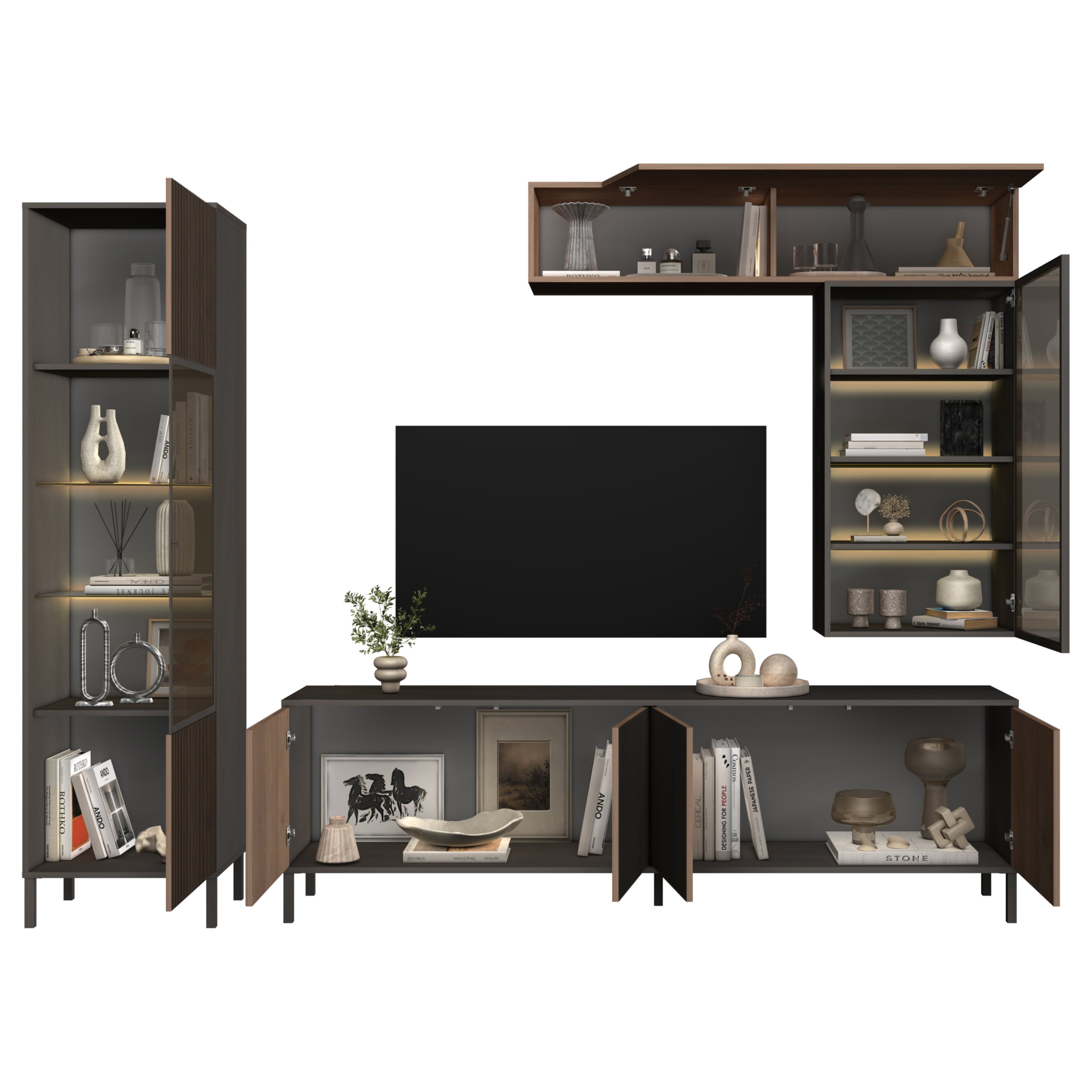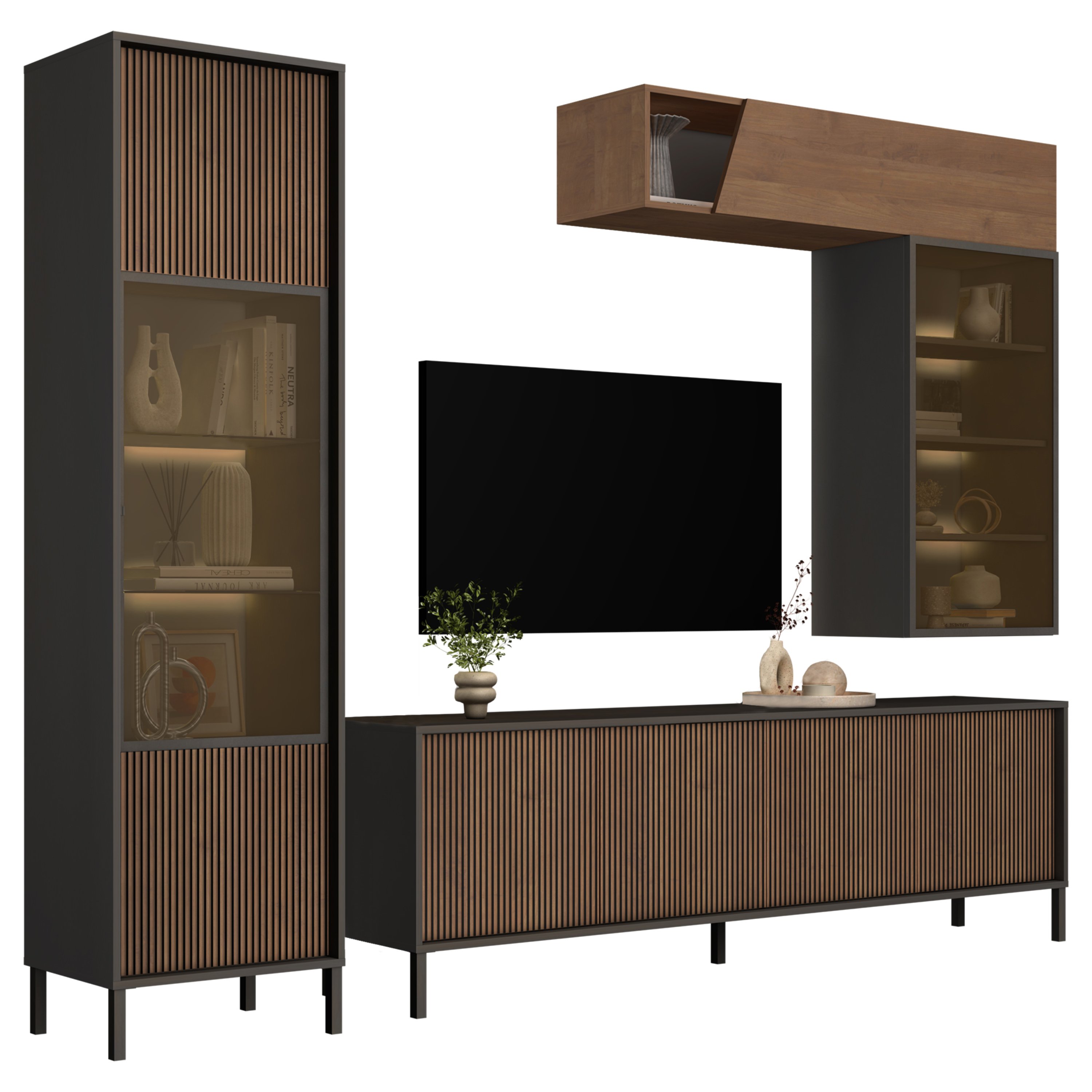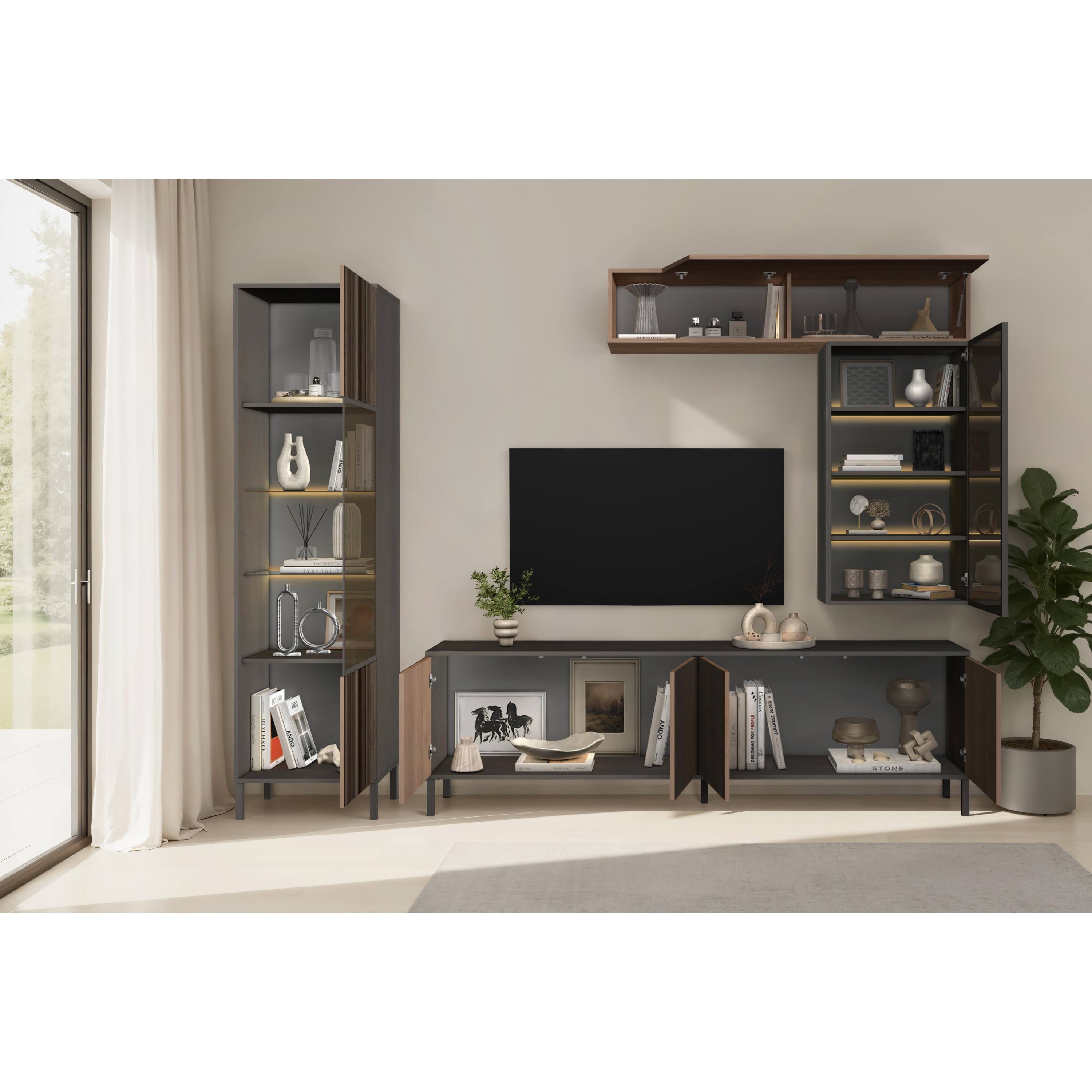 Obývacia stena CORTINA - antracitová/tmavohnedá