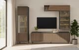 - Skladá sa z: TV komoda, vitrína, nástenný regál