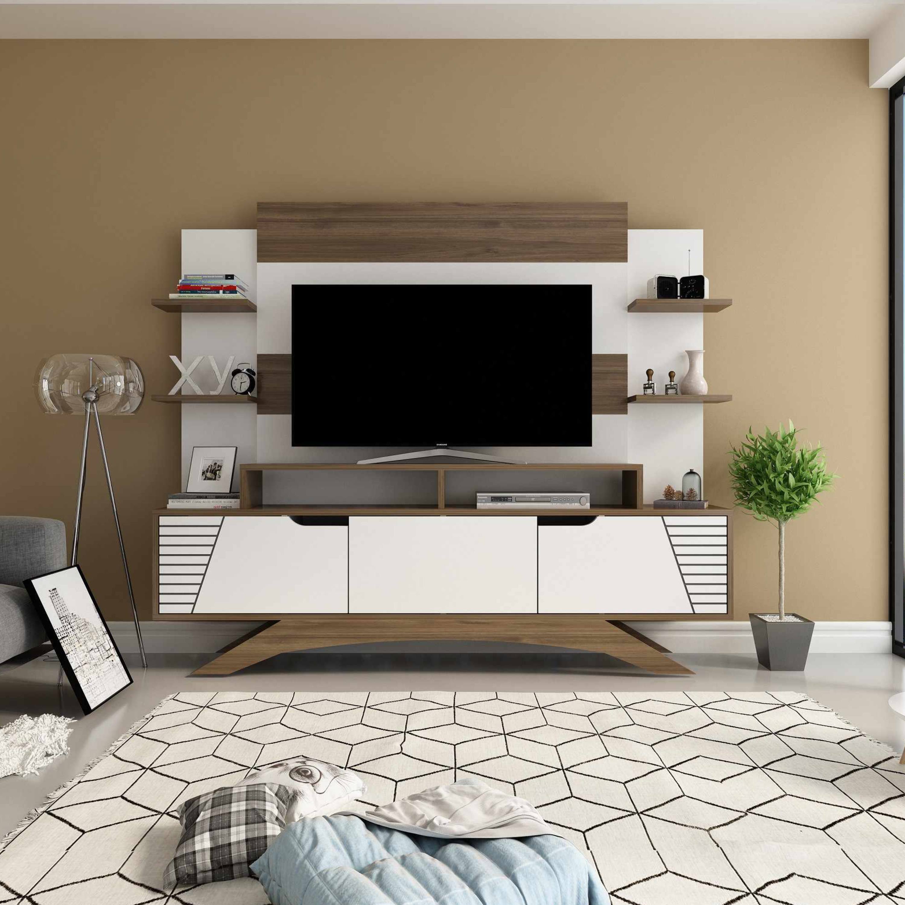 Obývacia stena DEPARO predstavuje komplexné riešenie funkčného nábytku do obývačky. Kombinácia dekoru orecha a odtieňa bielej farby vnesie do vašej obývačky prírodný nádych.