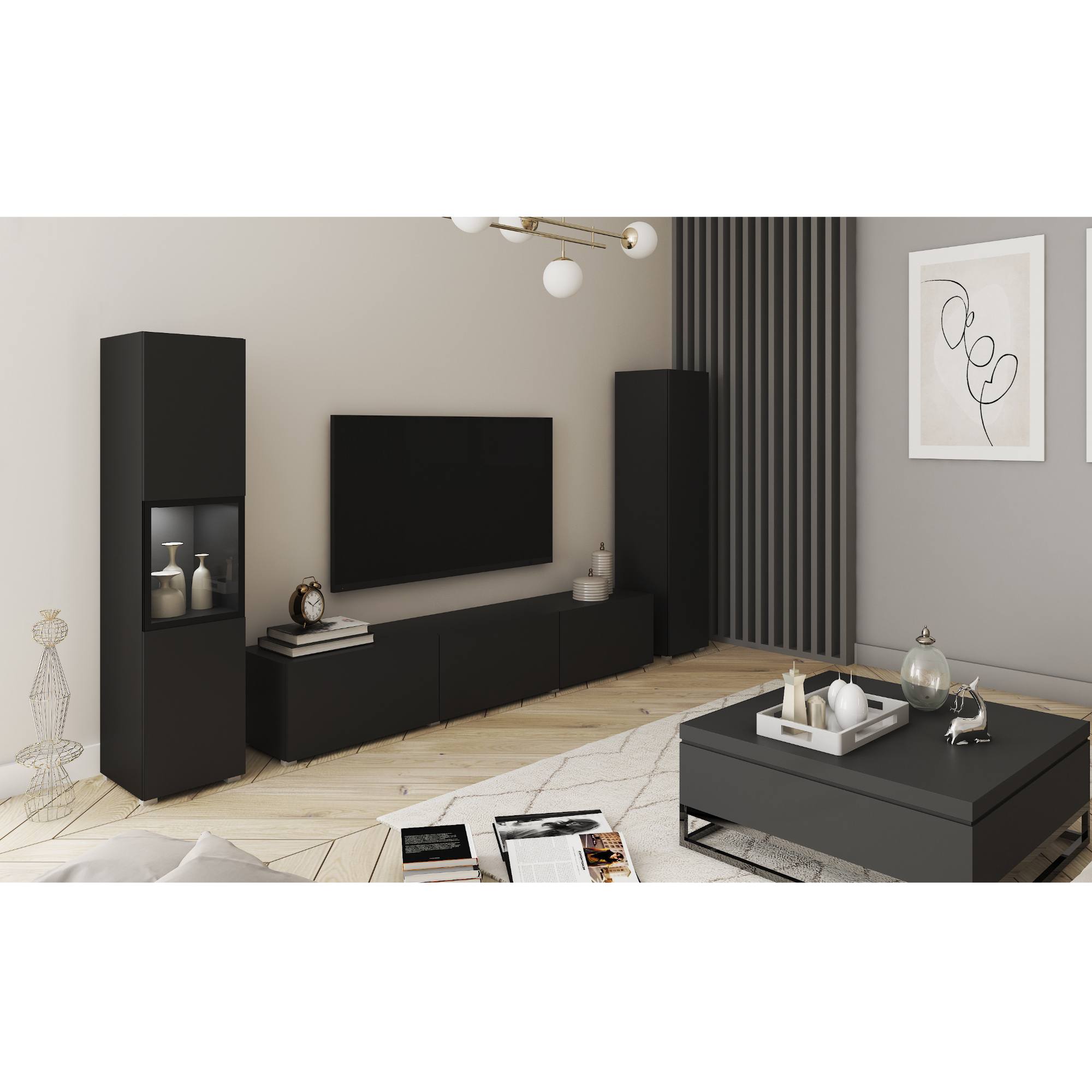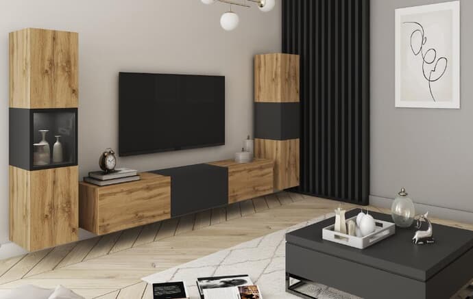 Bezrúčková obývacia stena ERLING III vďaka svojmu modernému dizajnu pozdvihne eleganciu vášho interiéru na vyššiu úroveň.