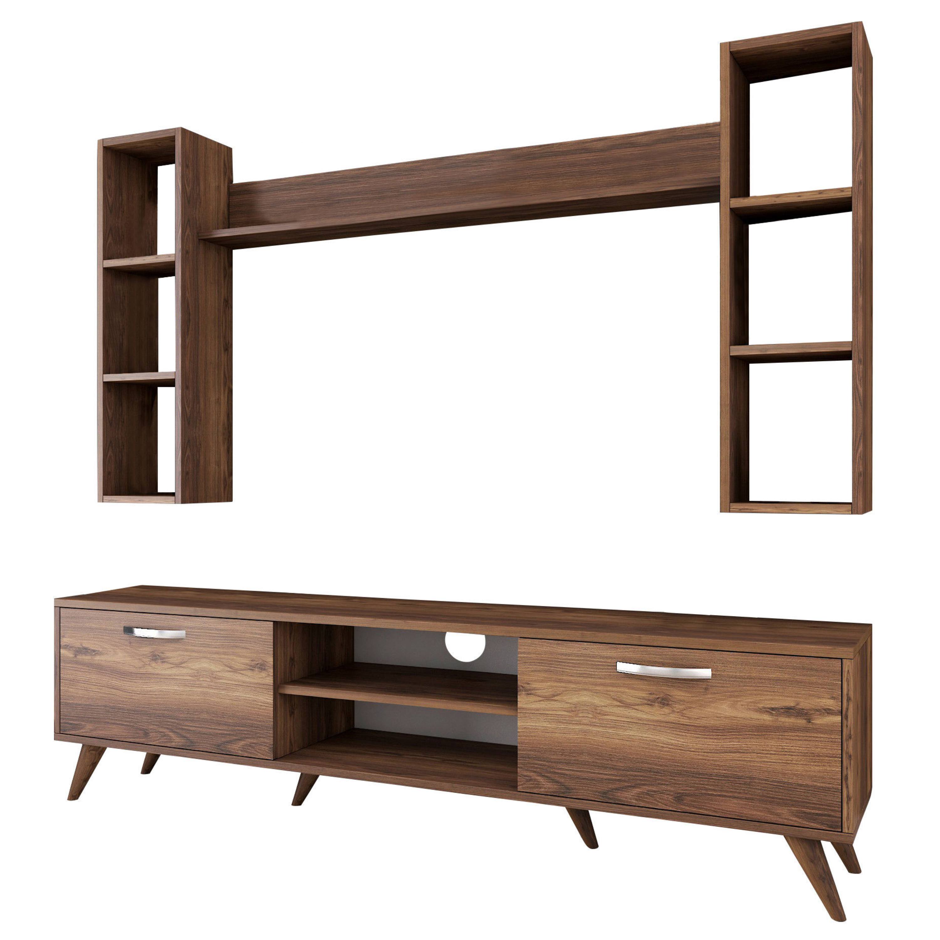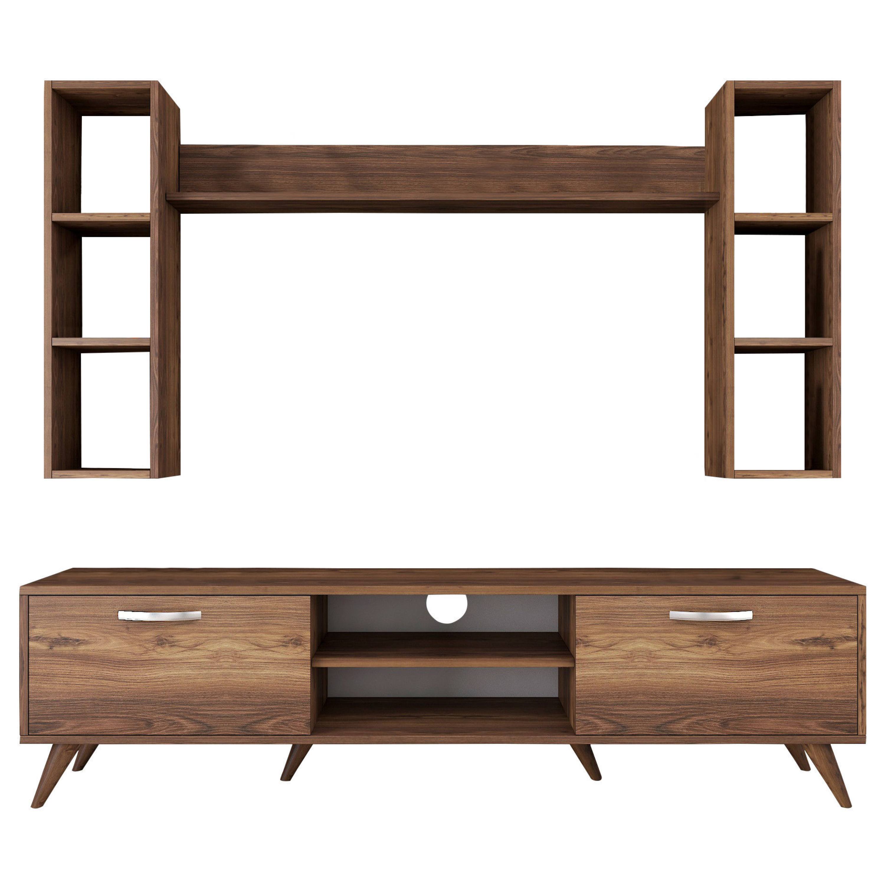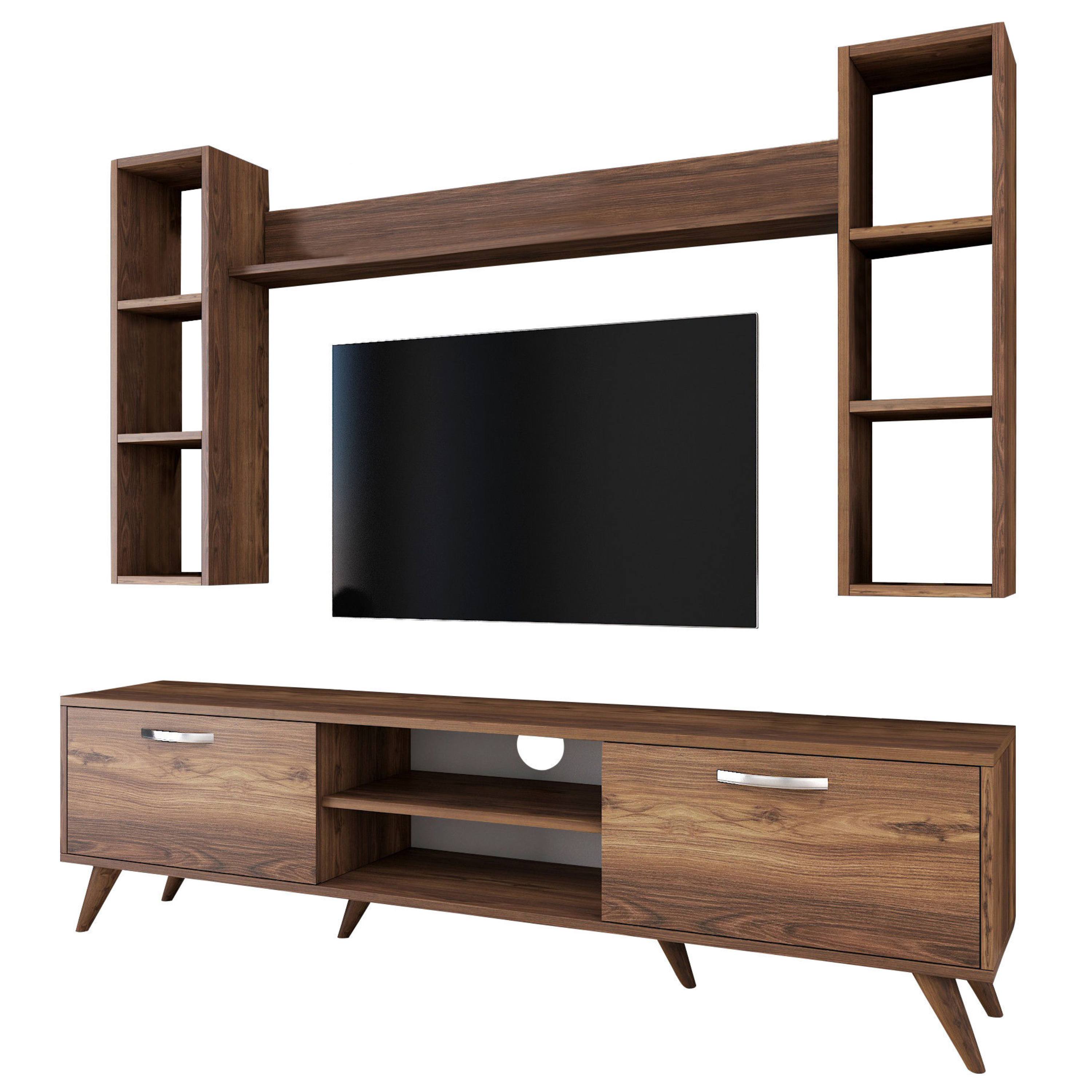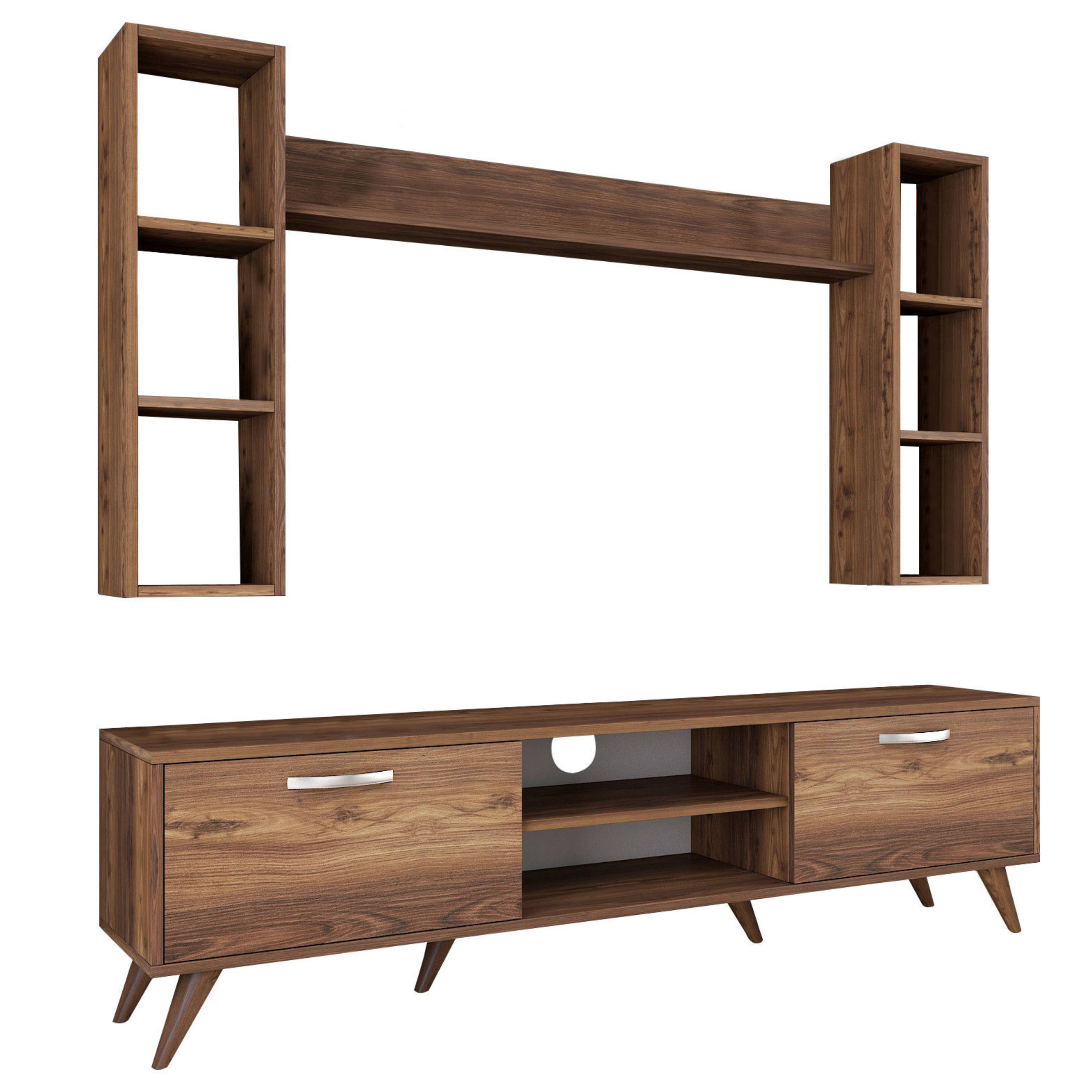Vyrobená je z laminovaného dreveného materiálu, pre ktorý je typická jednoduchá údržba a dlhá životnosť. Kombinovaný úložný a odkladací priestor sa skladá z TV komody, z dvoch nástenných regálov a z jednej police.