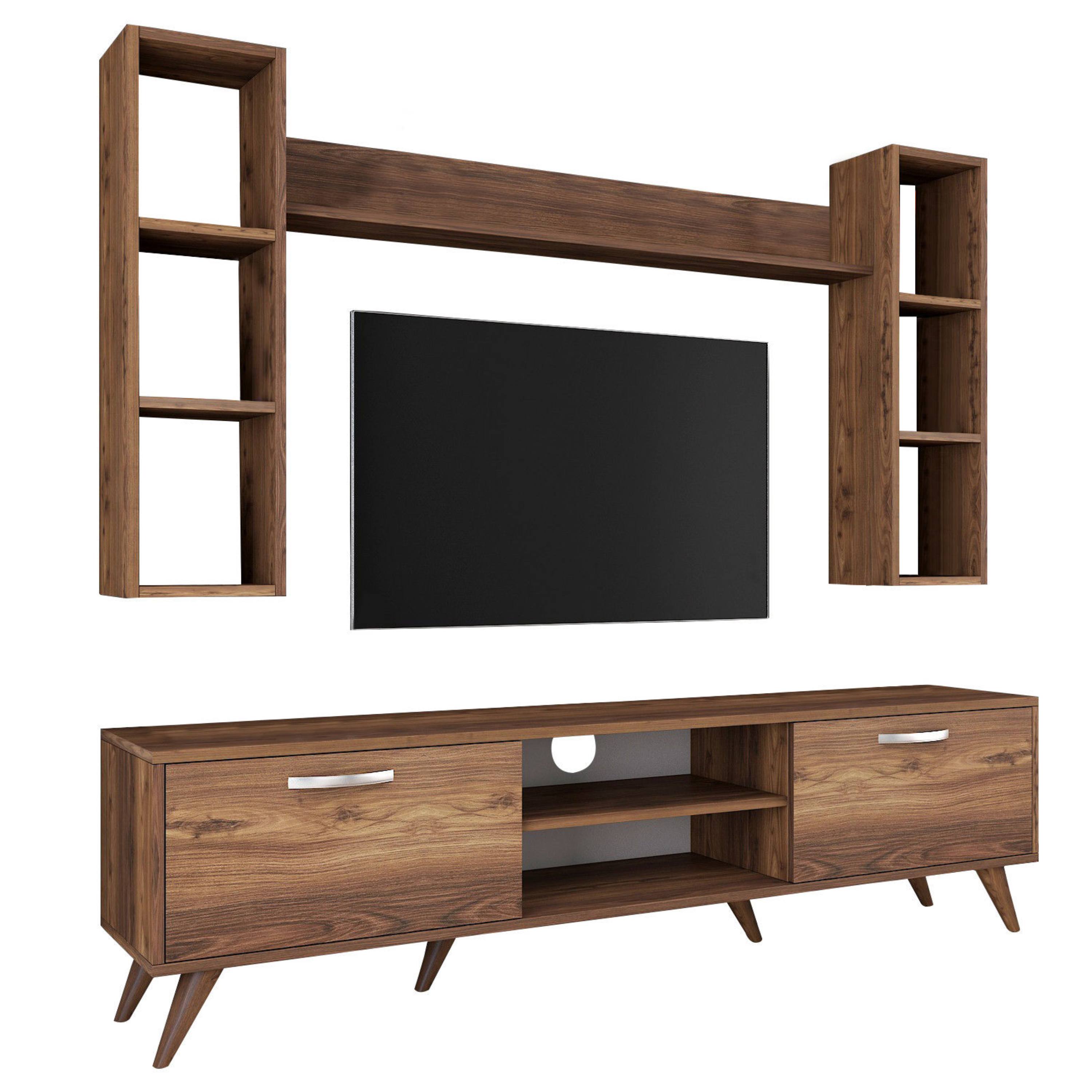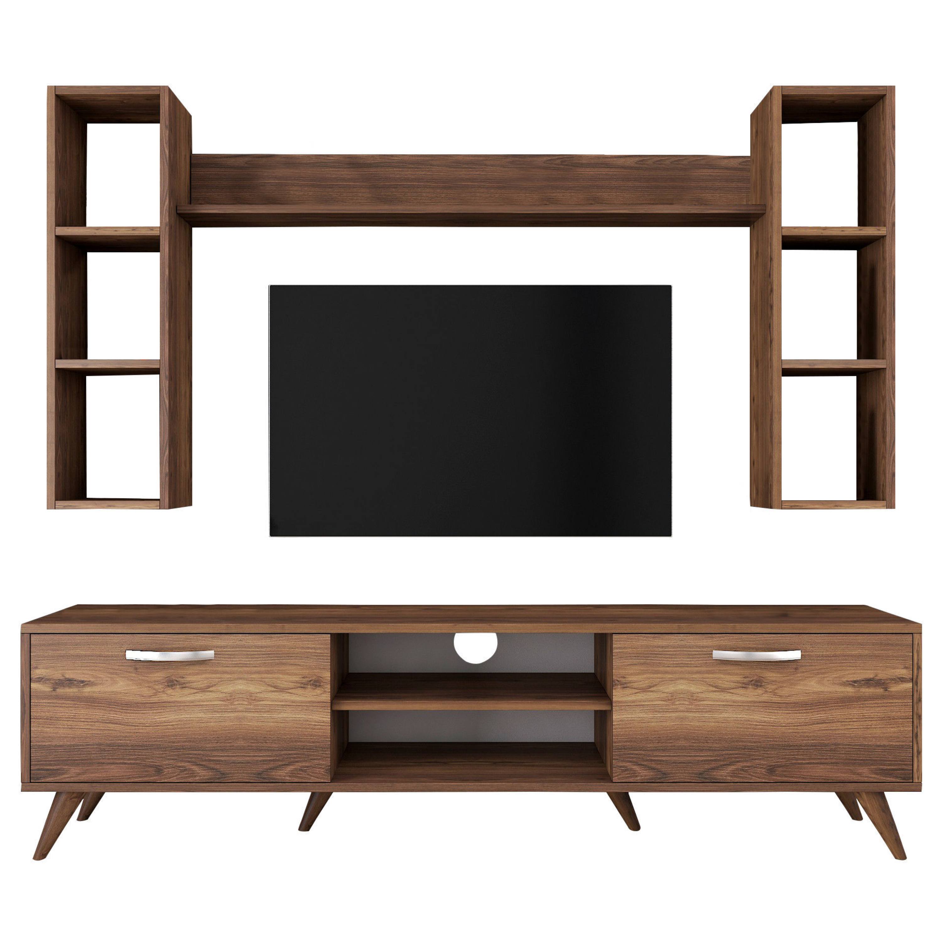 Obývacia stena GOO 2 predstavuje komplexné riešenie funkčného nábytku do obývačky. Dekor orecha vnesie do vašej obývačky prírodný nádych.