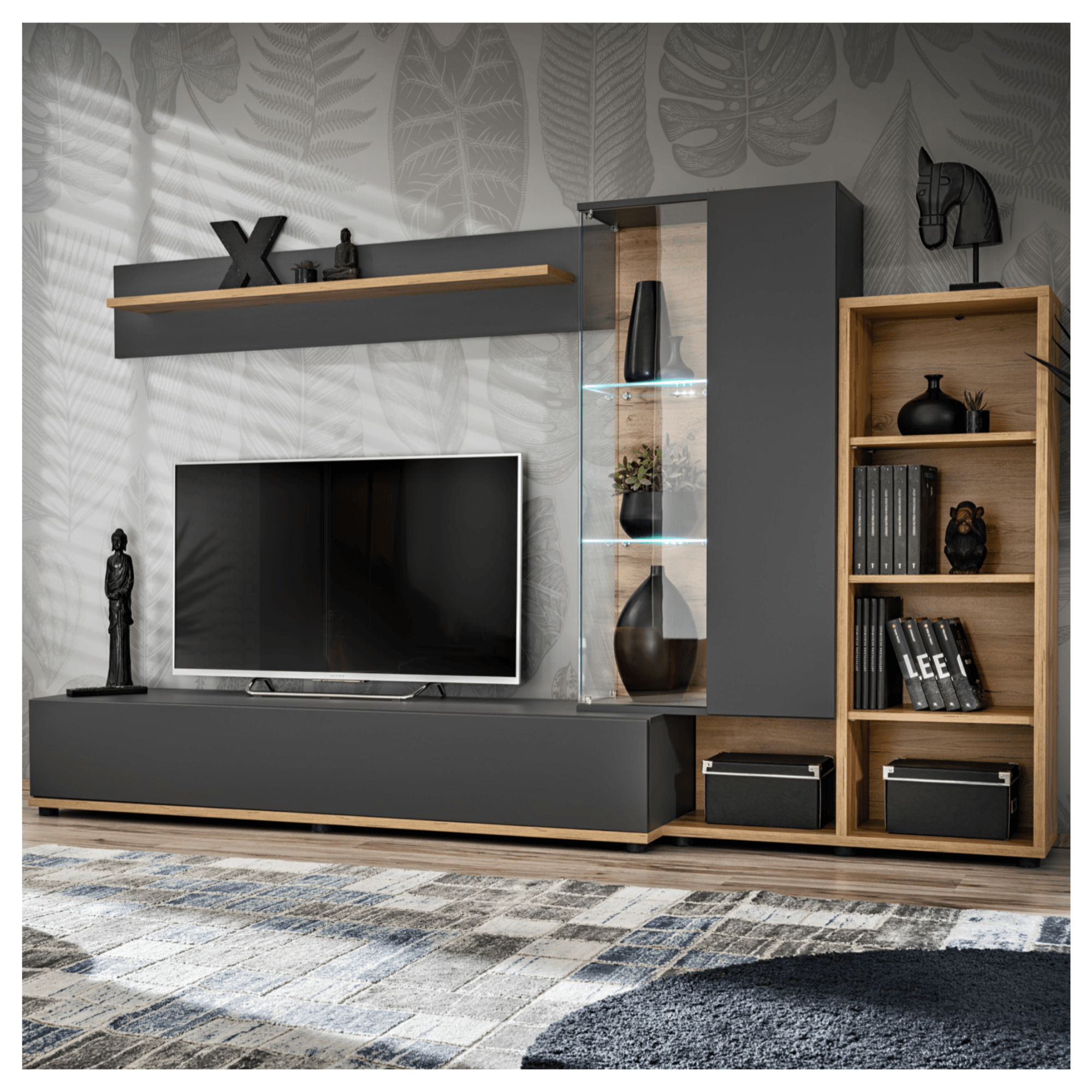 Obývacia stena JAMIL II - dub wotan/antracitová