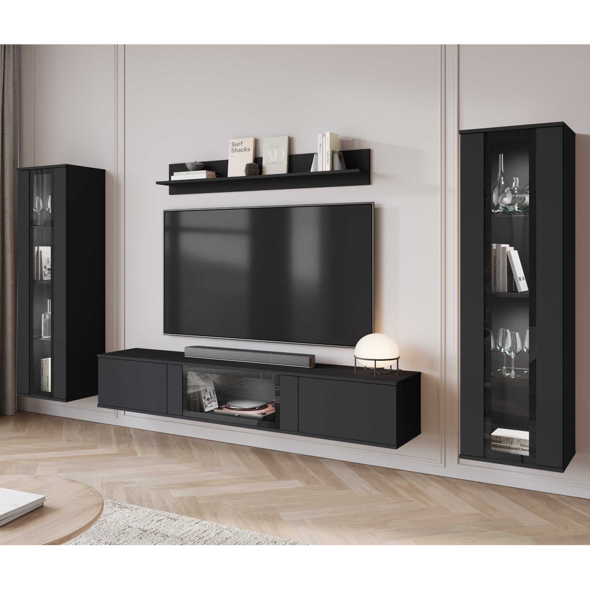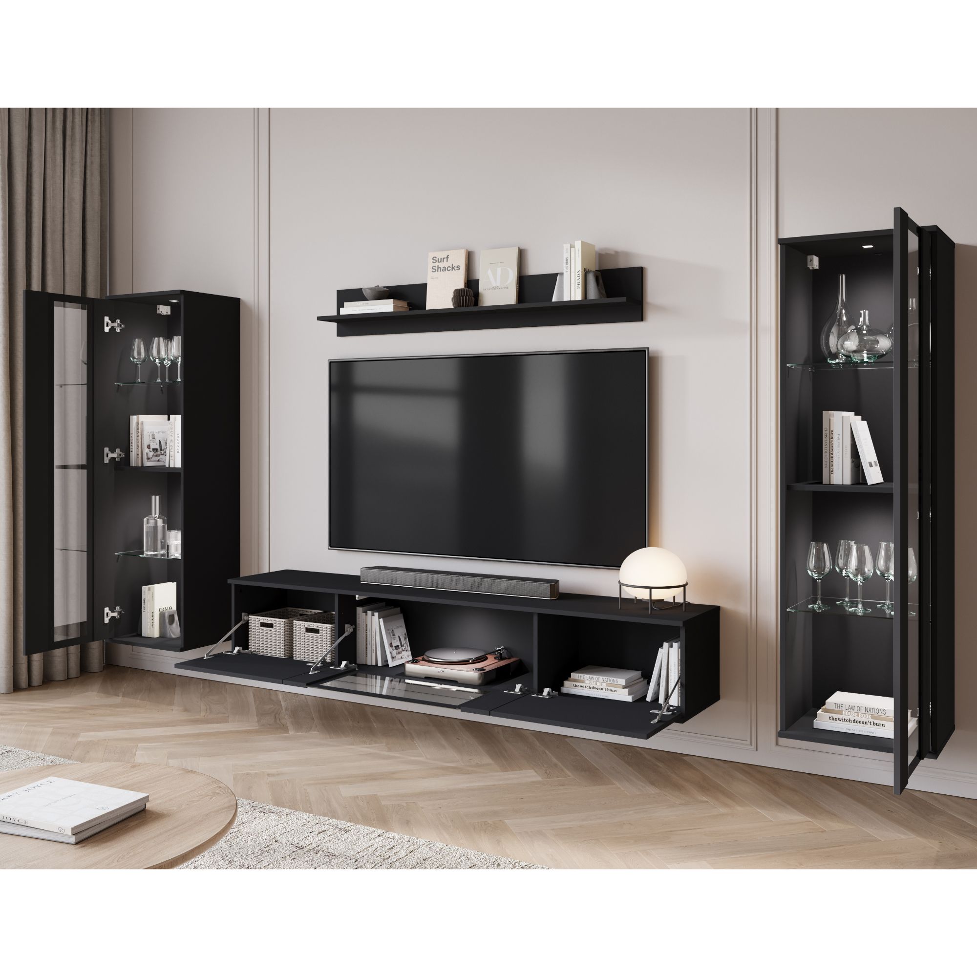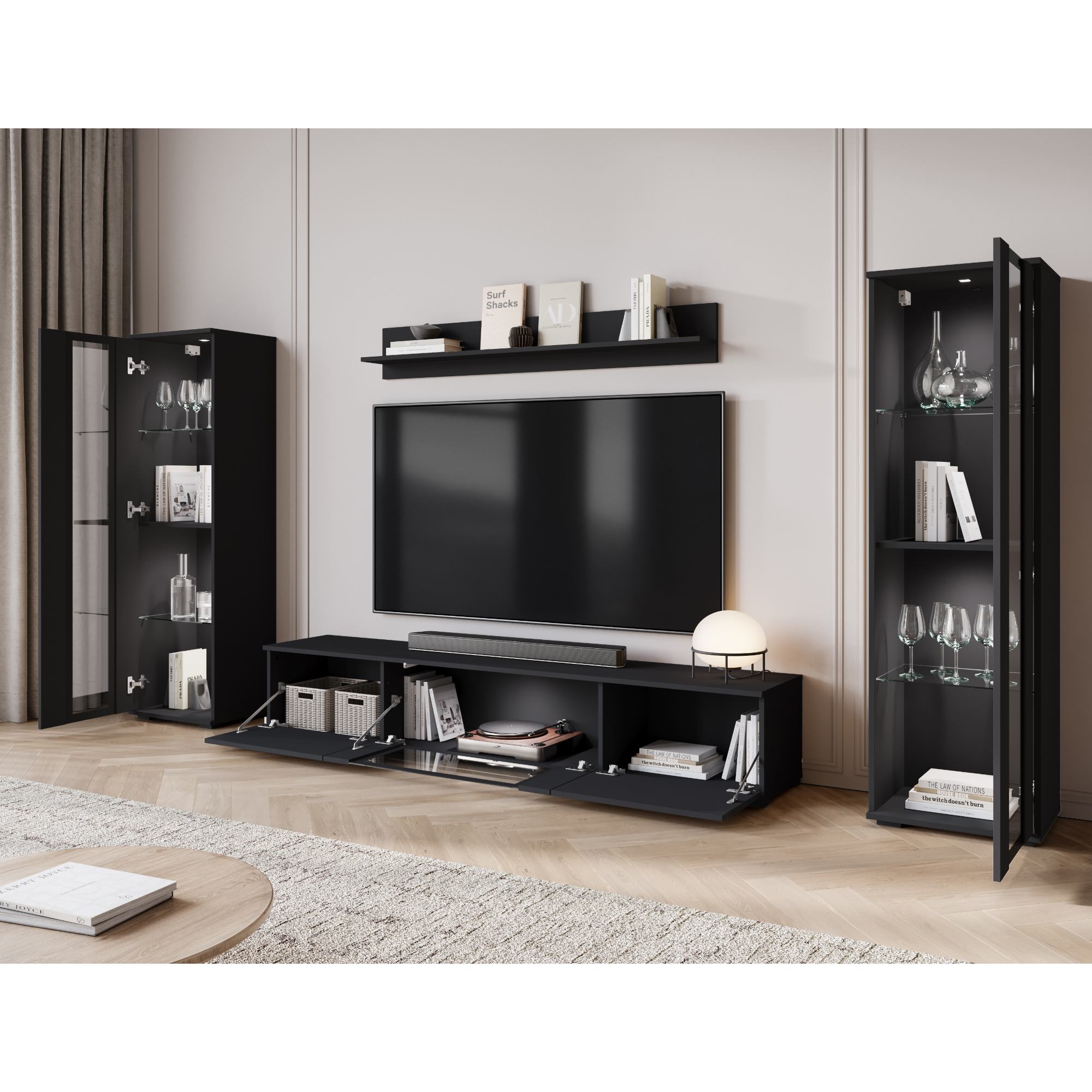 Moderná obývacia stena LAIMA vyhotovená v čiernej farbe ponúka ideálne prepojenie štýlového dizajnu a funkčnosti.