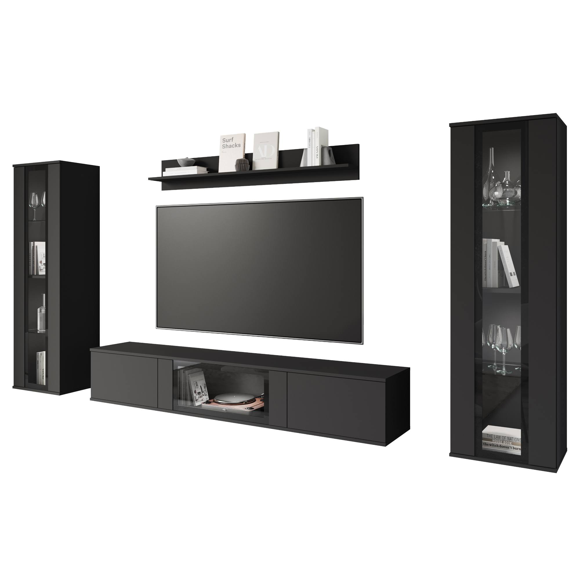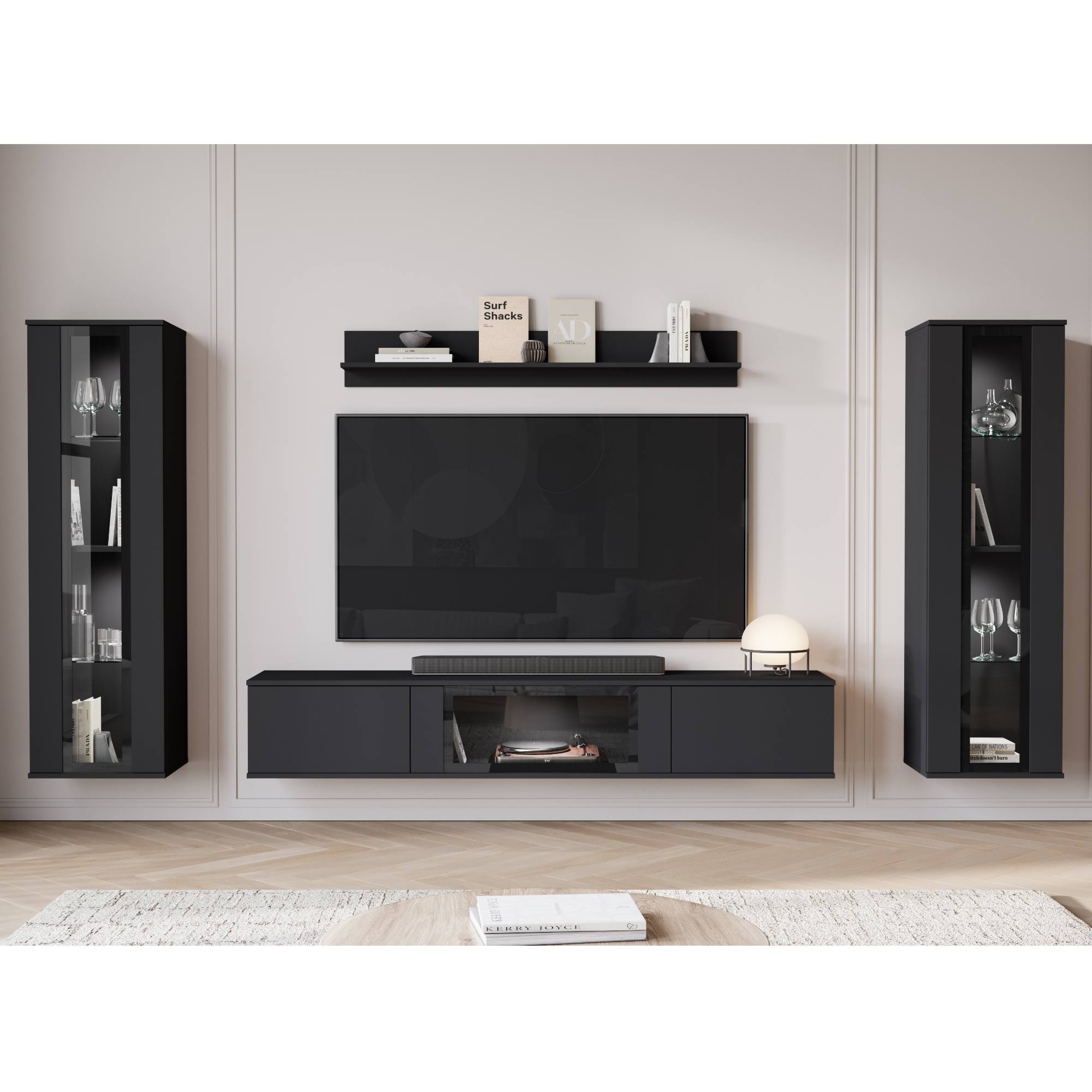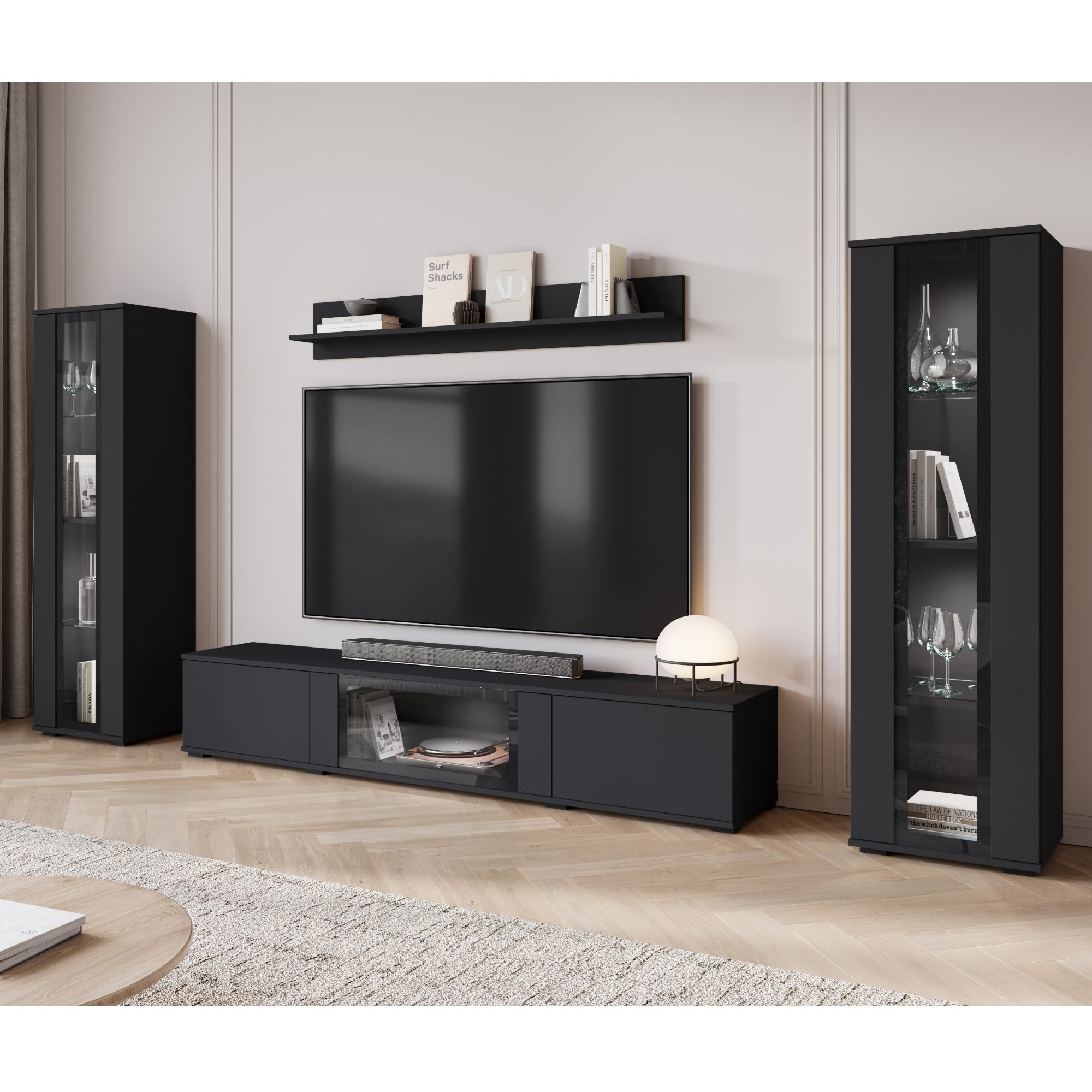 Moderná obývacia stena LAIMA vyhotovená v čiernej farbe ponúka ideálne prepojenie štýlového dizajnu a funkčnosti.
