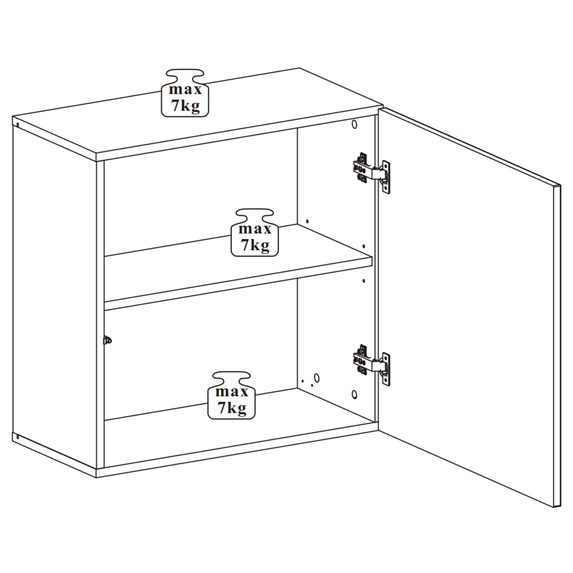 Zostavu tvoria dve závesné skrinky s praktickým odkladacím priestorom, ktorý sa skrýva za otvárateľnými dvierkami. Dvierka je možné navyše namontovať na ľavú či pravú stranu, podľa vašich potrieb. Stenu dopĺňa šikovná polica, ktorá spoľahlivo vyplní voľný priestor nad skrinkami. Hodiť sa bude predovšetkým na vystavenie rastlinnej zbierky, rodinných fotografií, suvenírov z ciest alebo ďalších dekoračných predmetov. Vyrobená je z laminovaného dreveného materiálu, ktorý sa vám bude ľahko čistiť.