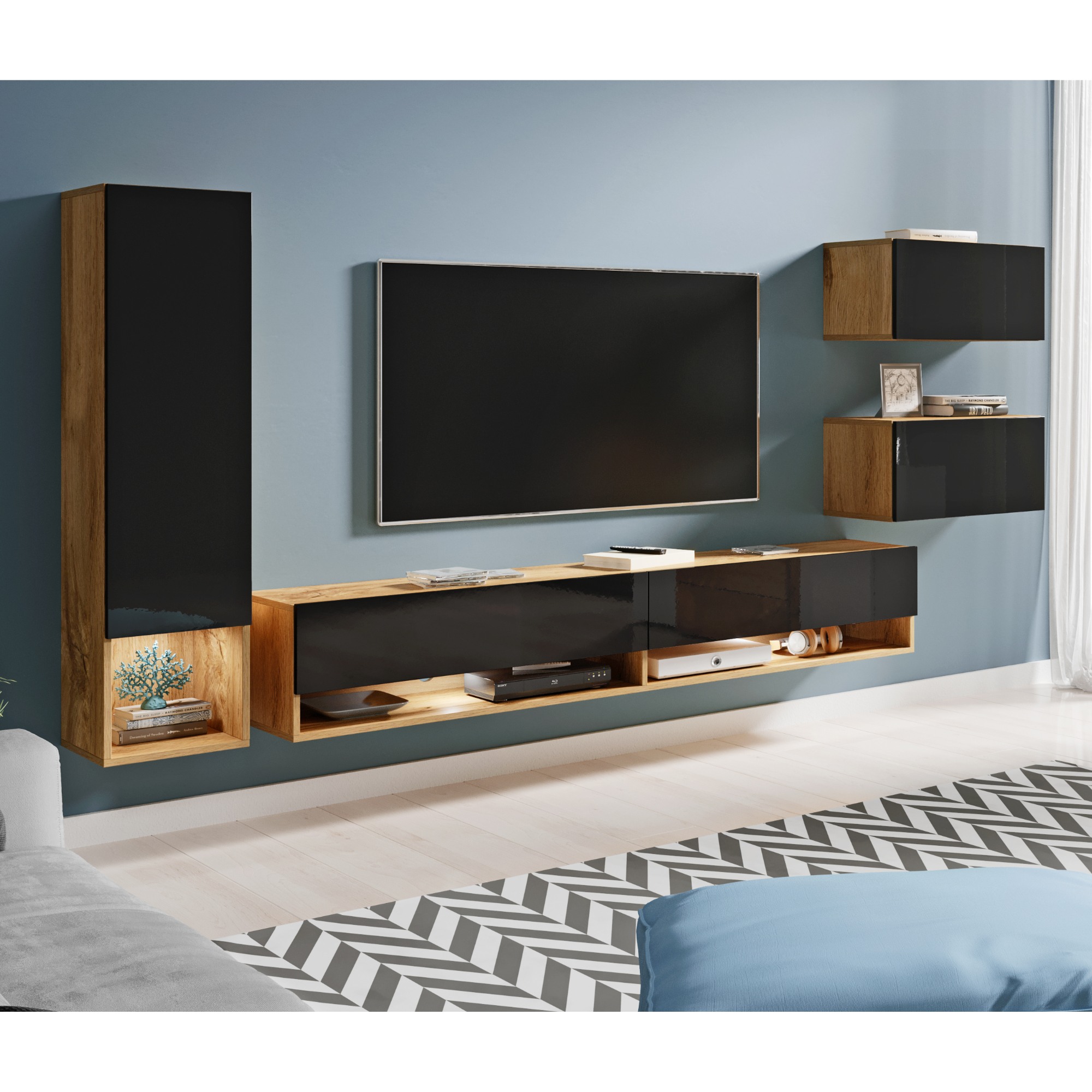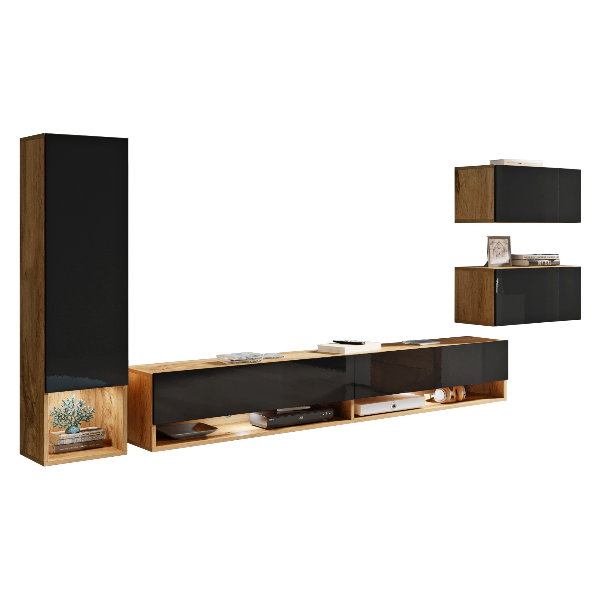 Obývacia stena MÉDEA - dub wotan/čierna lesklá