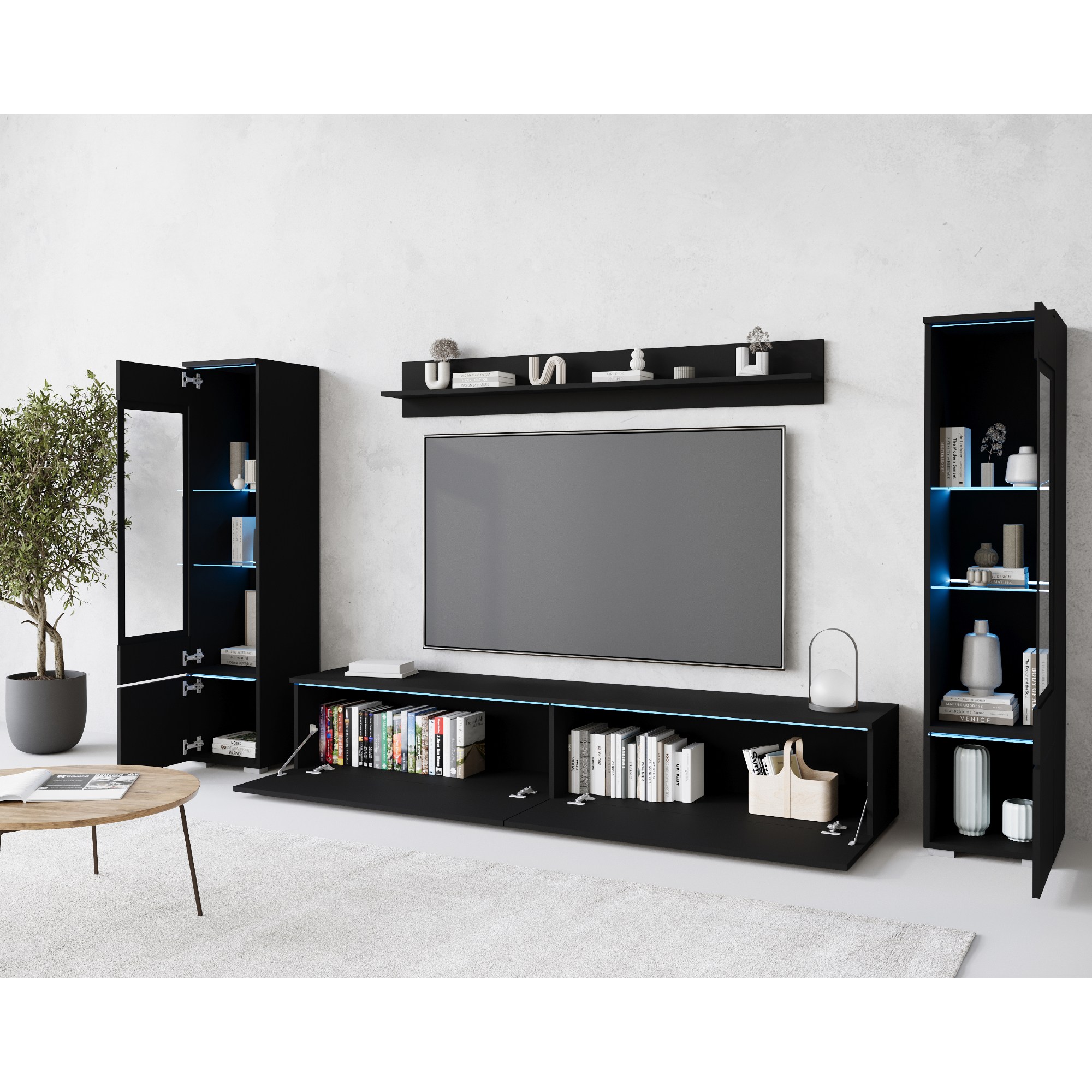 Obývacia stena PAVIA II - čierna/grafitová matná