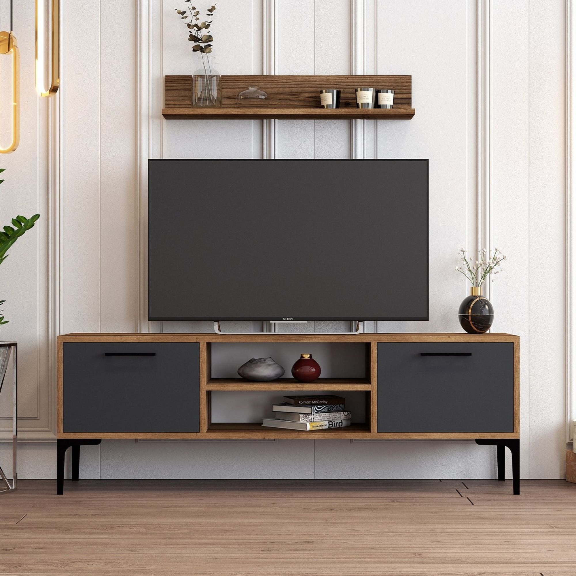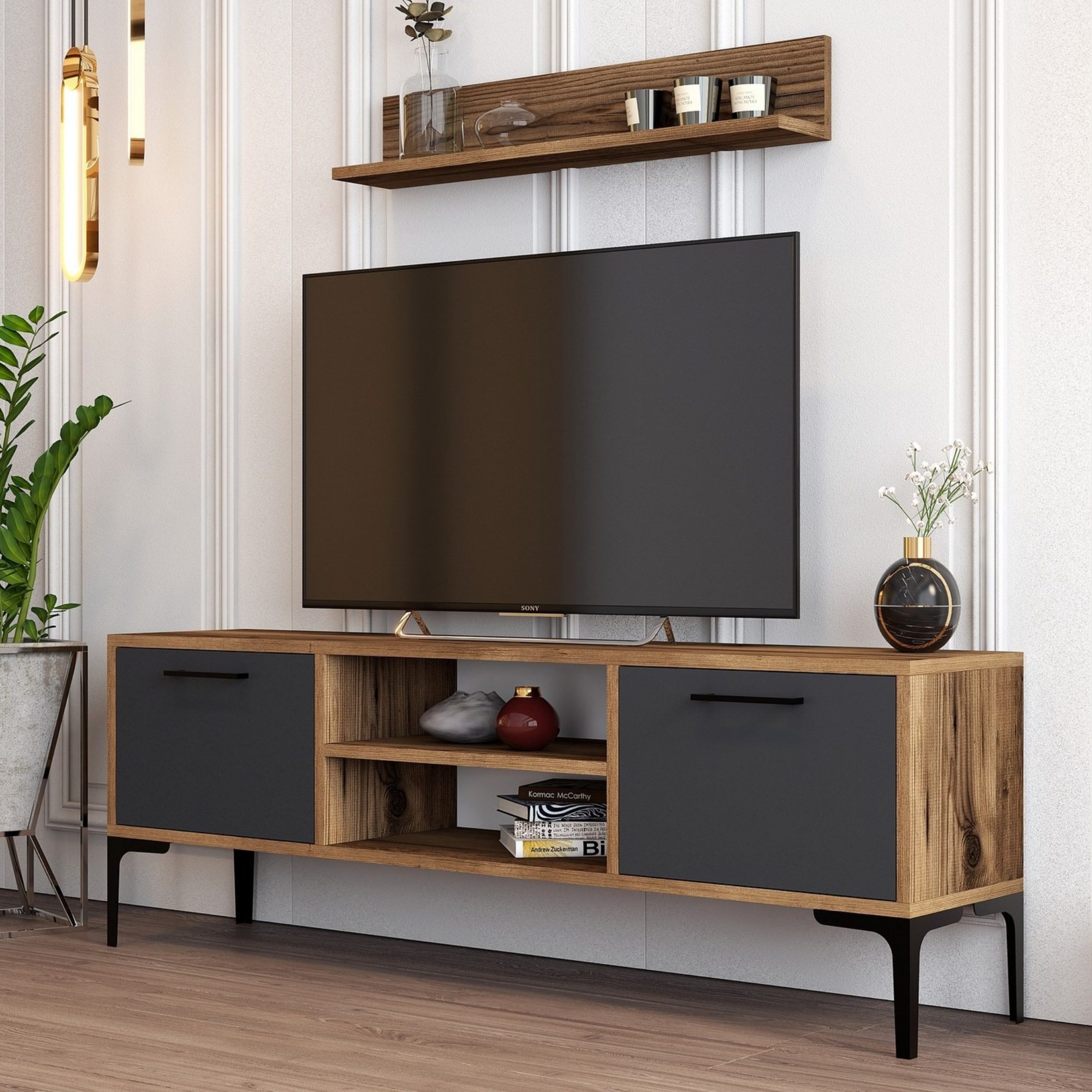 - Zostava zložená z nástennej police a TV stolíka