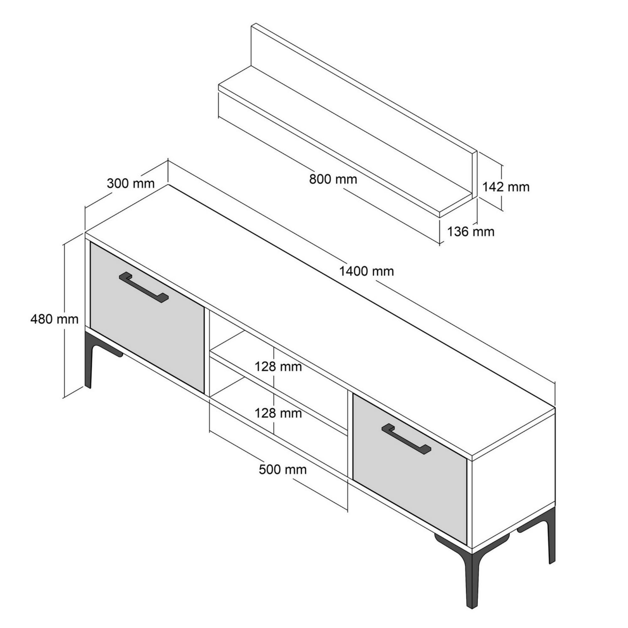 | Časť 1 (ŠxVxH) | Rozmery TV stolíka: 140x48x30 cm |