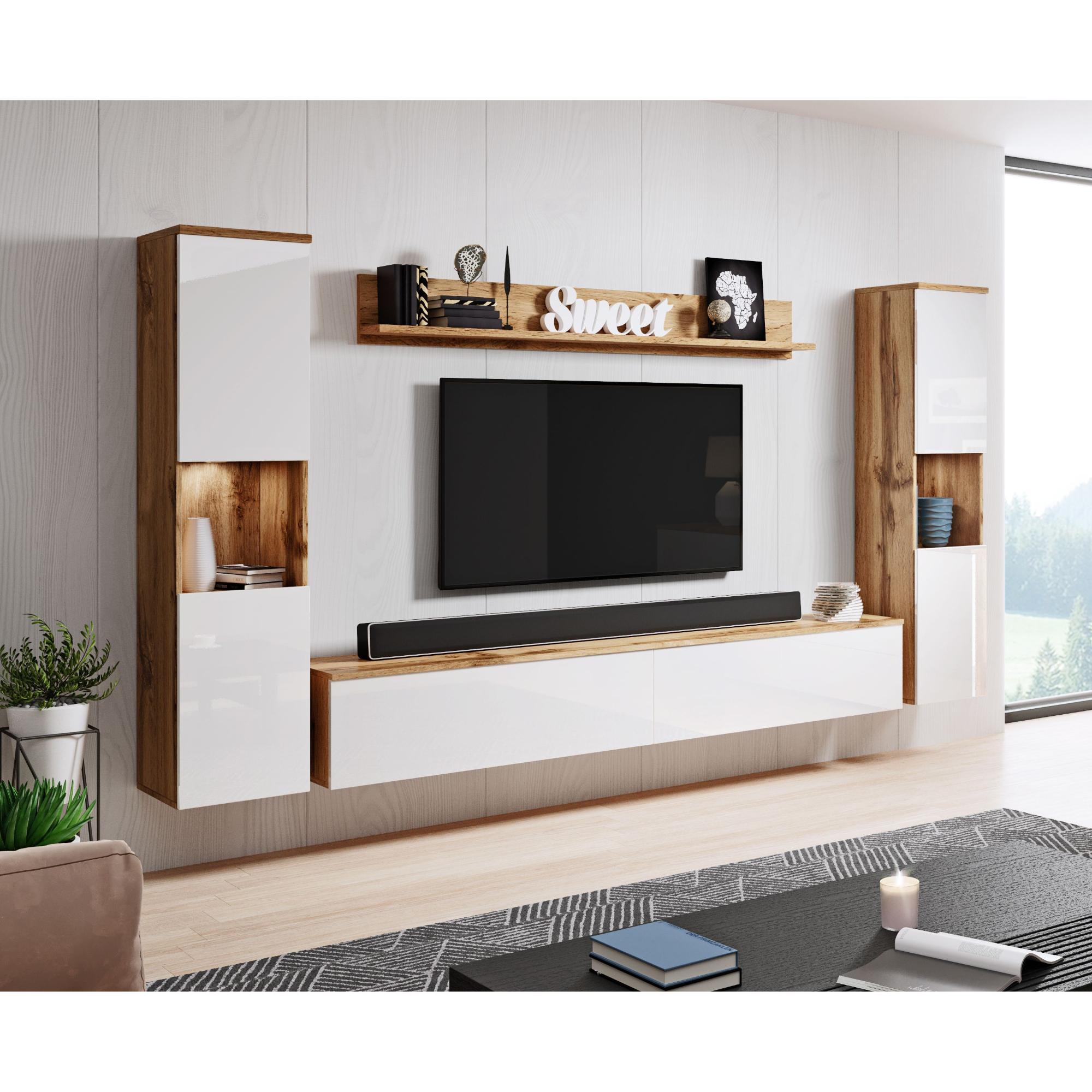 Obývacia stena SORIA XL - dub wotan/biela lesklá