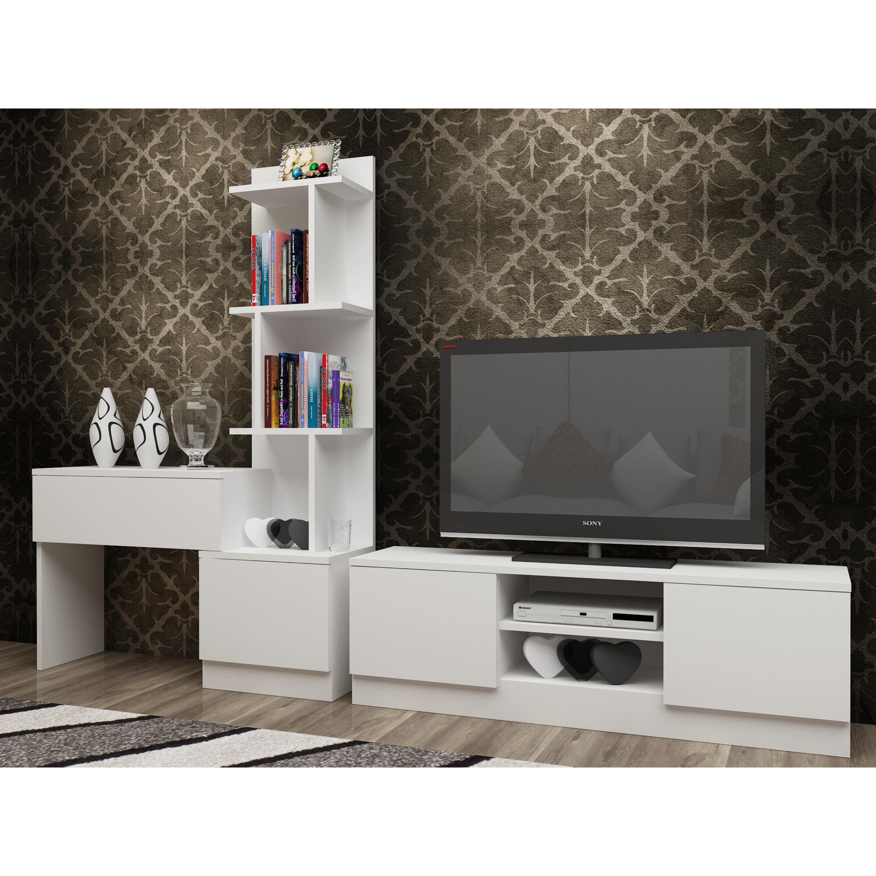Vyrobená je z laminovaného dreveného materiálu, pre ktorý je typická jednoduchá údržba a dlhá životnosť. Kombinovaný úložný a odkladací priestor sa skladá z TV komody, regála a komody. Bezúchytové prevedenie ešte viac podčiarkuje celkový čistý dojem.