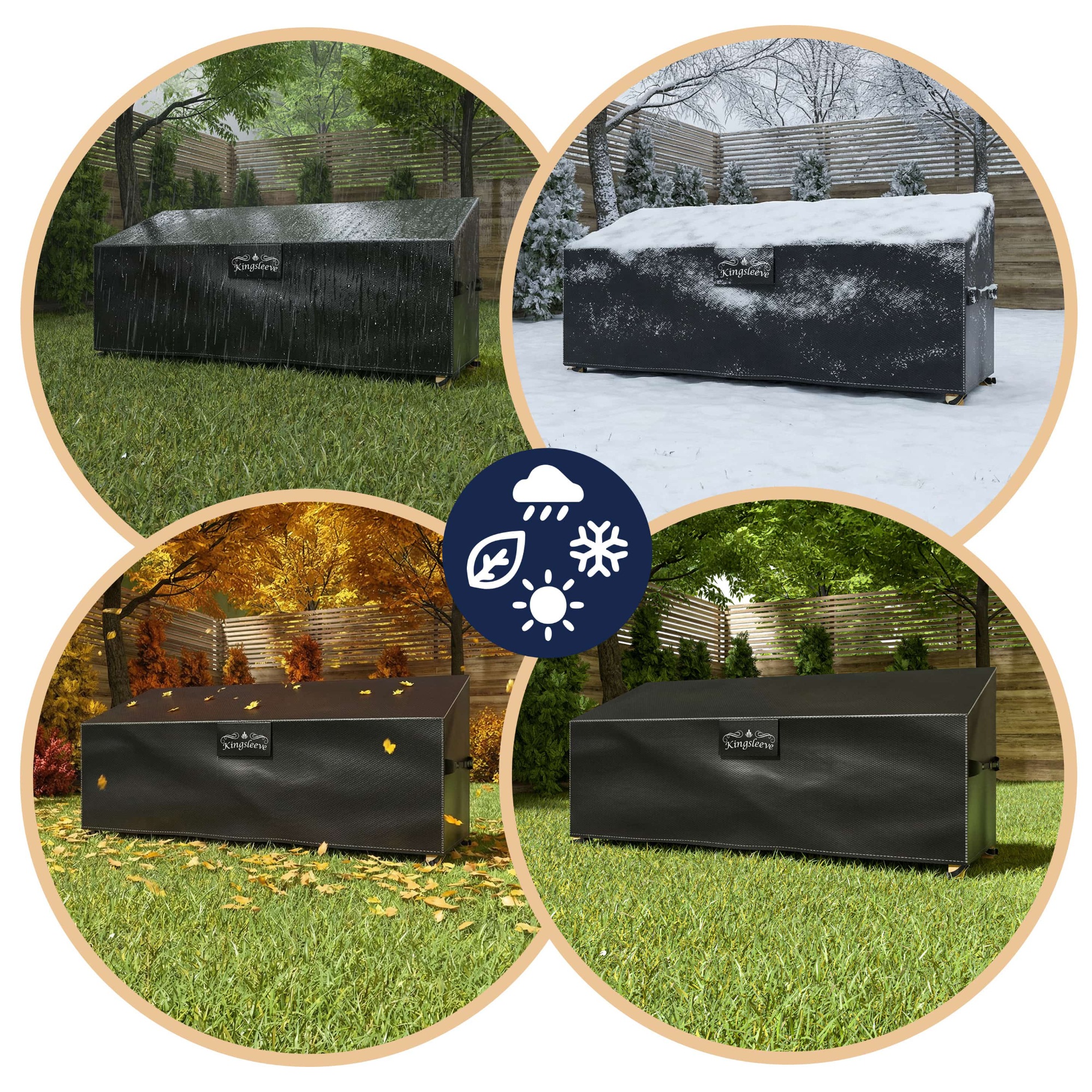 Ochranný obal KINGSLEEVE, ktorý sa vyznačuje odolnosťou voči UV žiareniu, spoľahlivo ochráni vašu záhradnú lavičku pred dažďom, snehom i slnkom.