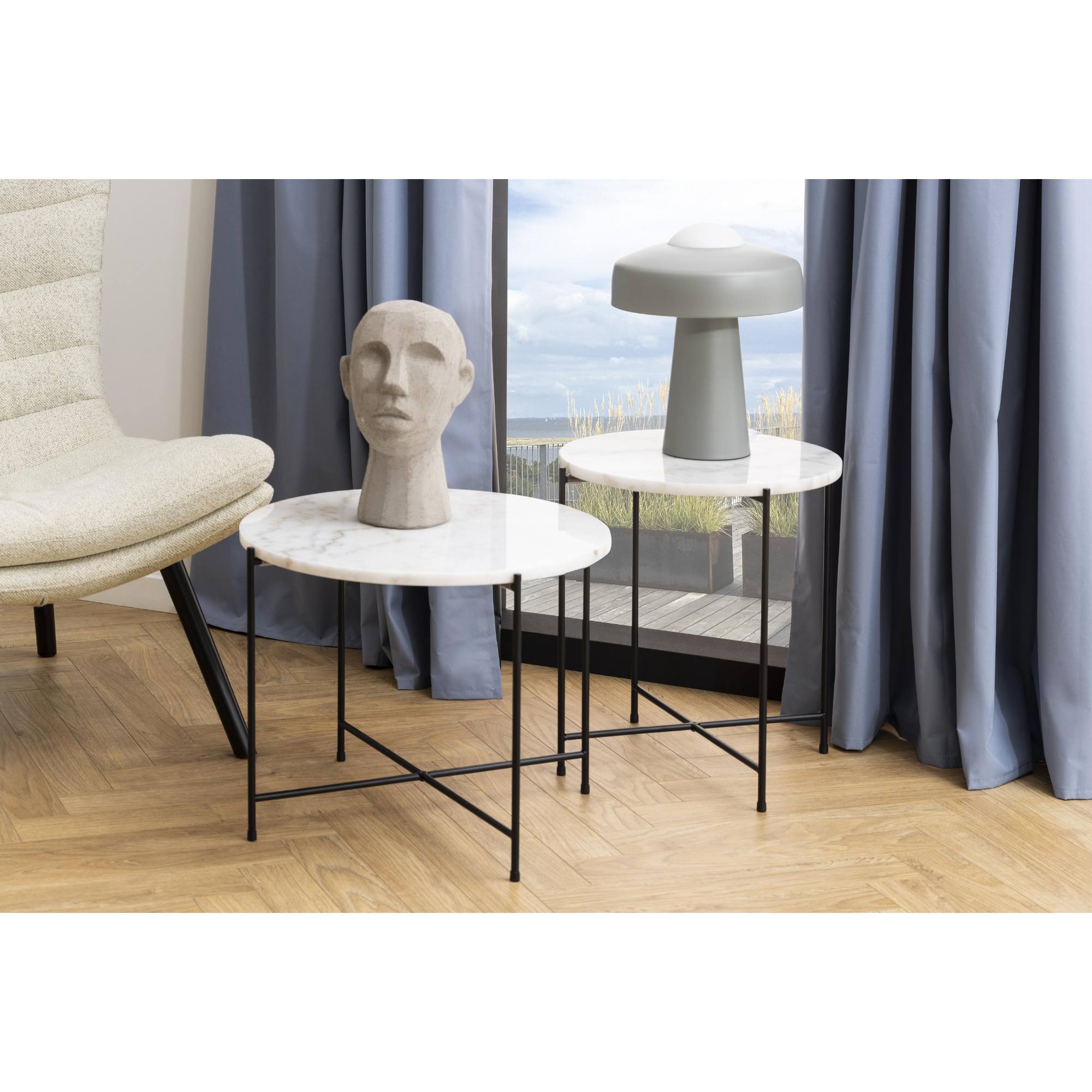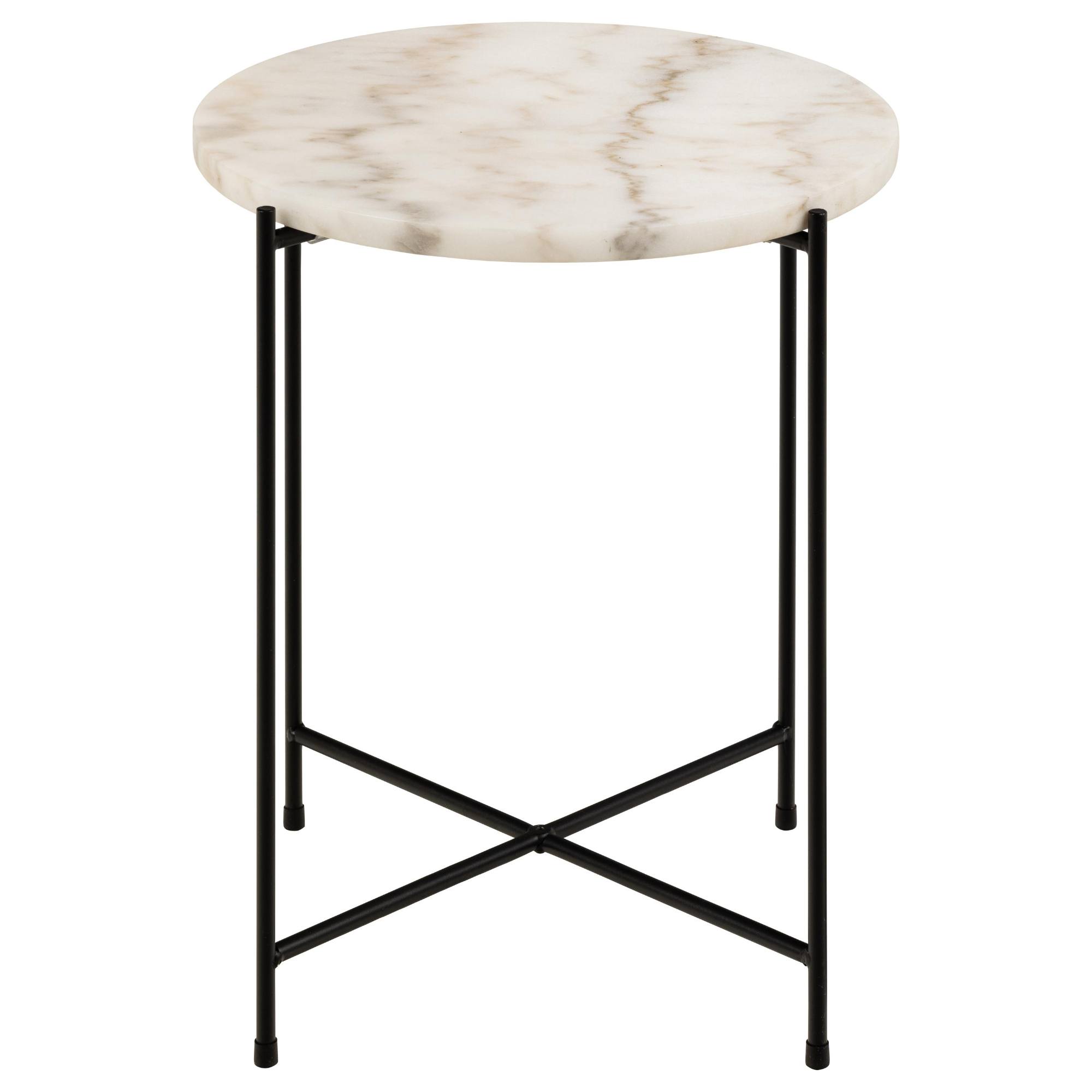Odkladací stolík AVILA skvele poslúži naprieč celou domácnosťou. Krásna mramorová doska vsadená do čiernej kovovej konštrukcie ponúka nepreberné možnosti využitia. Svoje uplatnenie nájde snáď v každej miestnosti. Poslúži ako atraktívny podstavec pod kvet, alebo ako doplnok do spálne či obývacej izby. Spodná časť podstavca je doplnená o protišmykové podložky slúžiace na ochranu podlahových krytín.