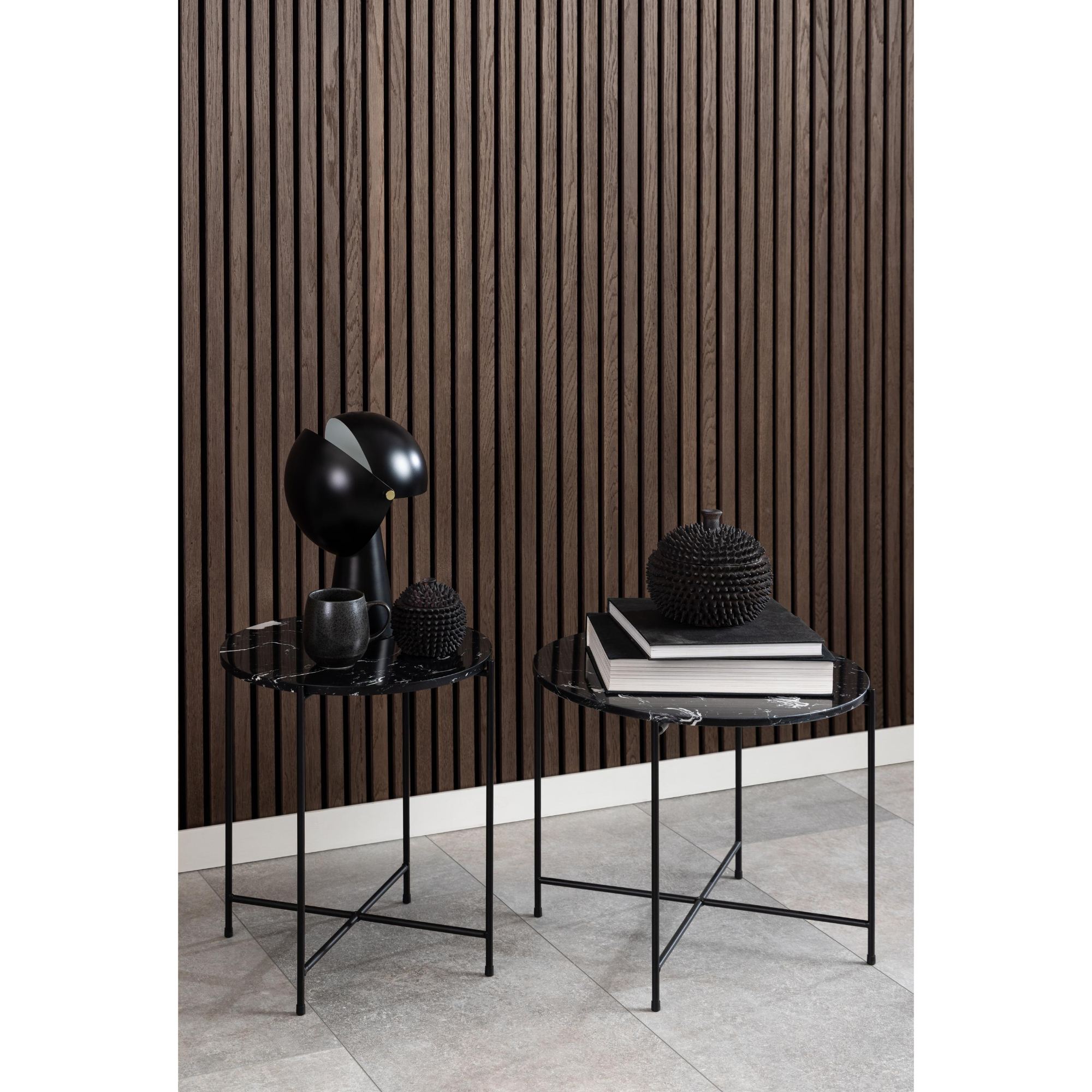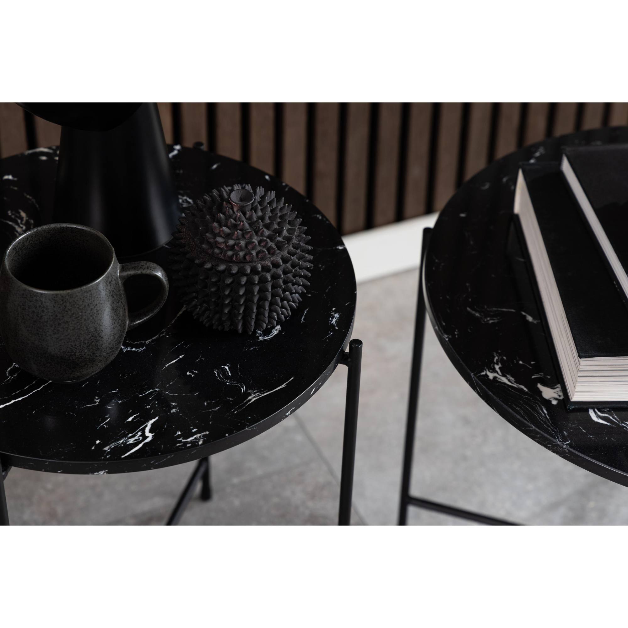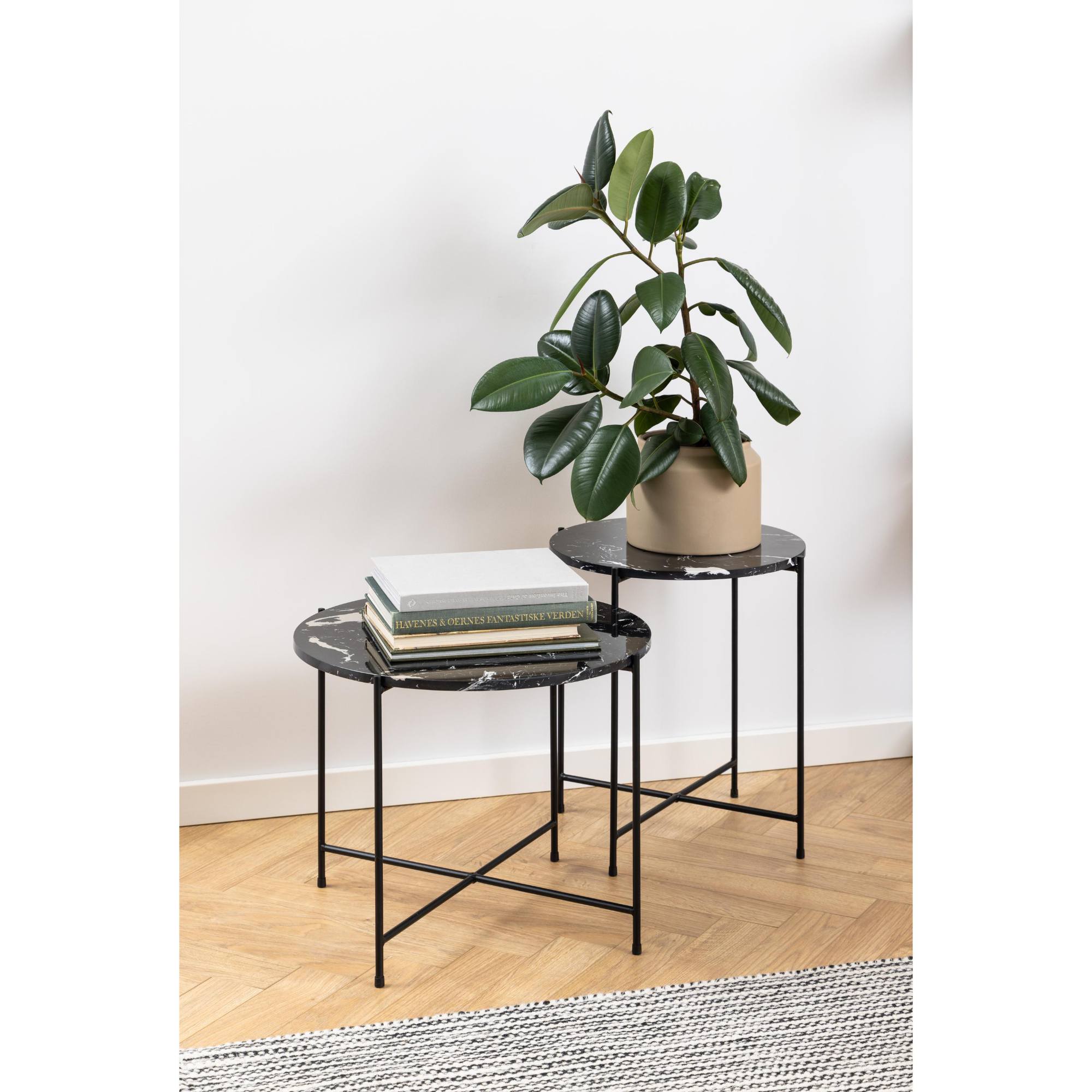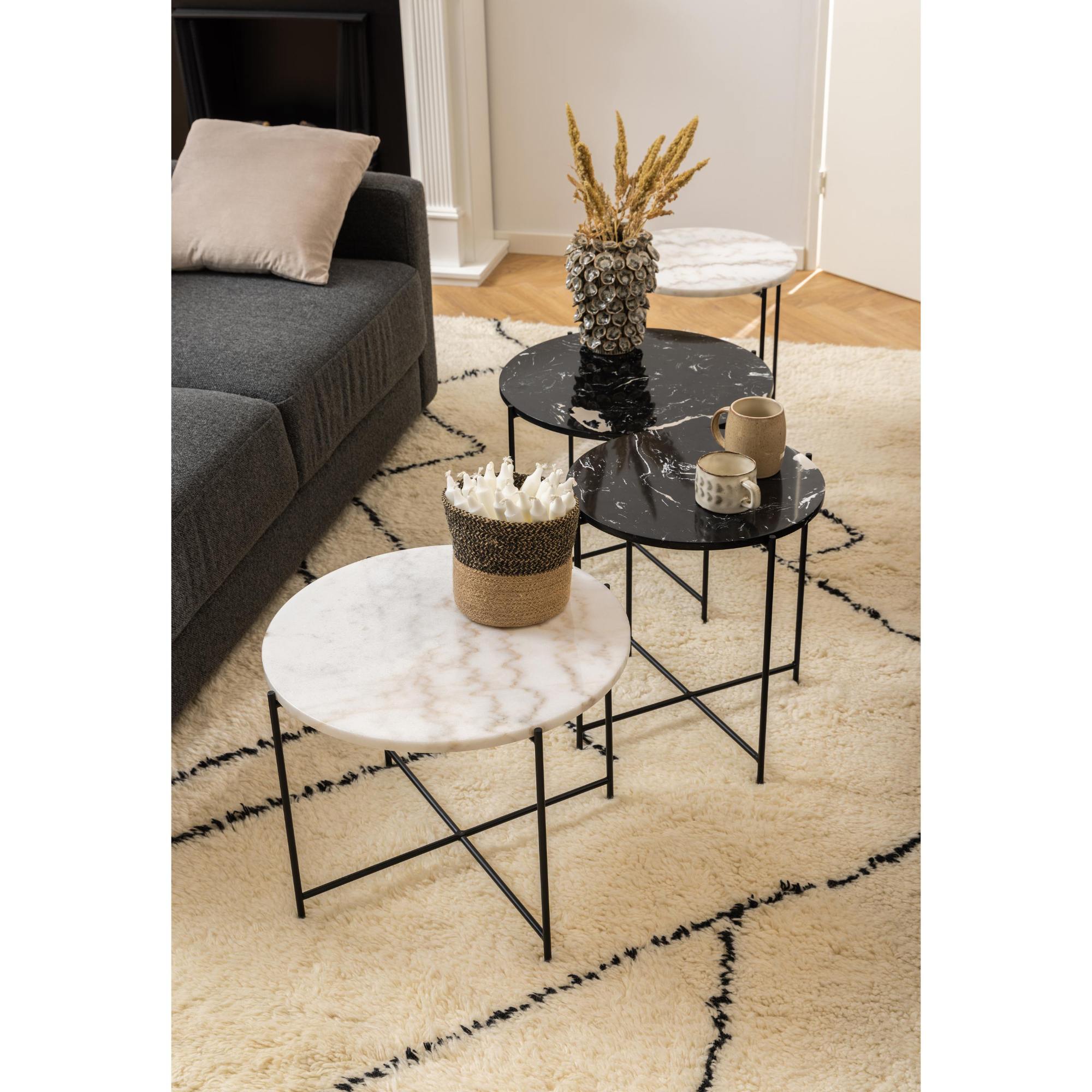 Odkladací stolík AVILA skvele poslúži naprieč celou domácnosťou. Krásna mramorová doska vsadená do čiernej kovovej konštrukcie ponúka nepreberné možnosti využitia. Svoje uplatnenie nájde snáď v každej miestnosti. Poslúži ako atraktívny podstavec pod kvet, alebo ako doplnok do spálne či obývacej izby. Spodná časť podstavca je doplnená o protišmykové podložky slúžiace na ochranu podlahových krytín.