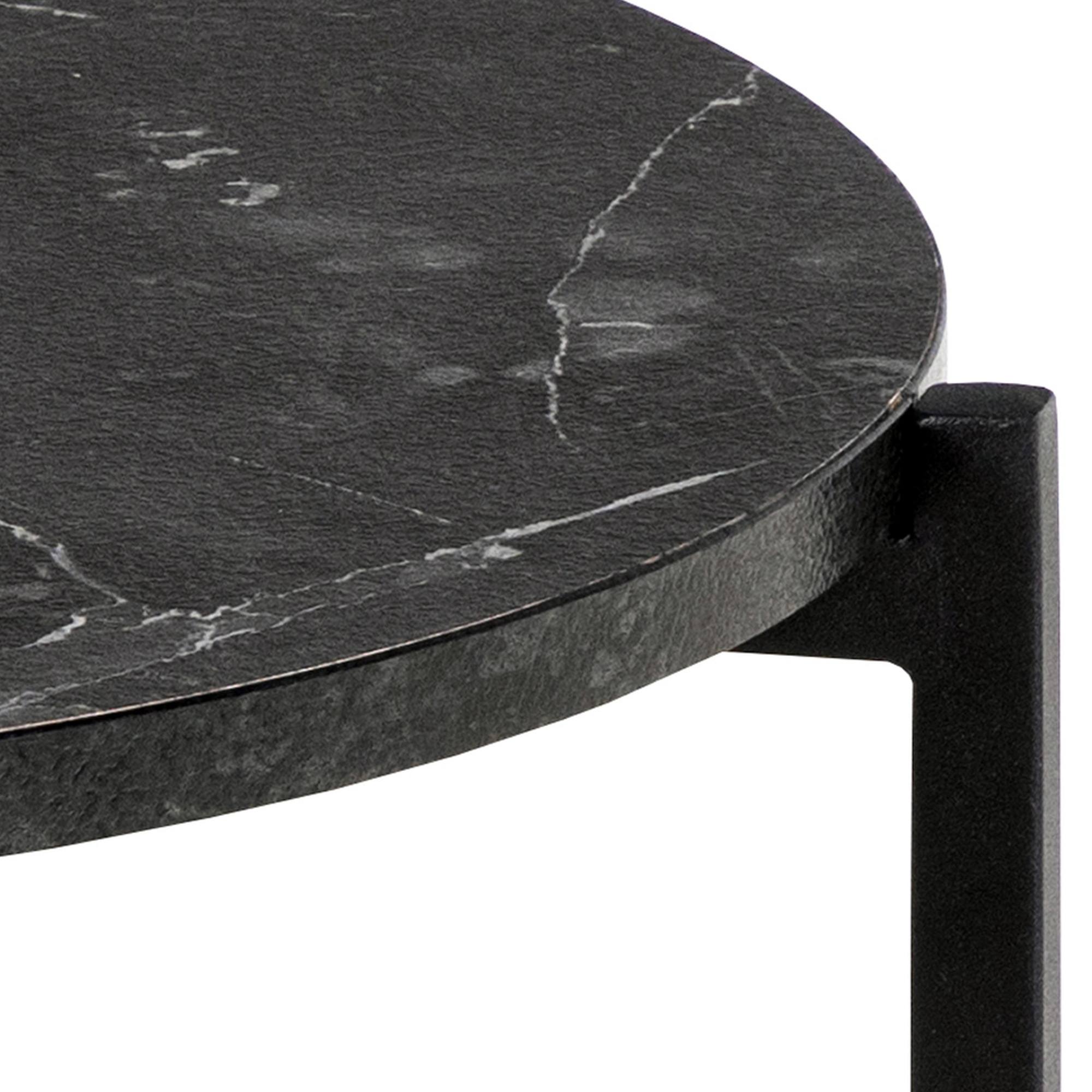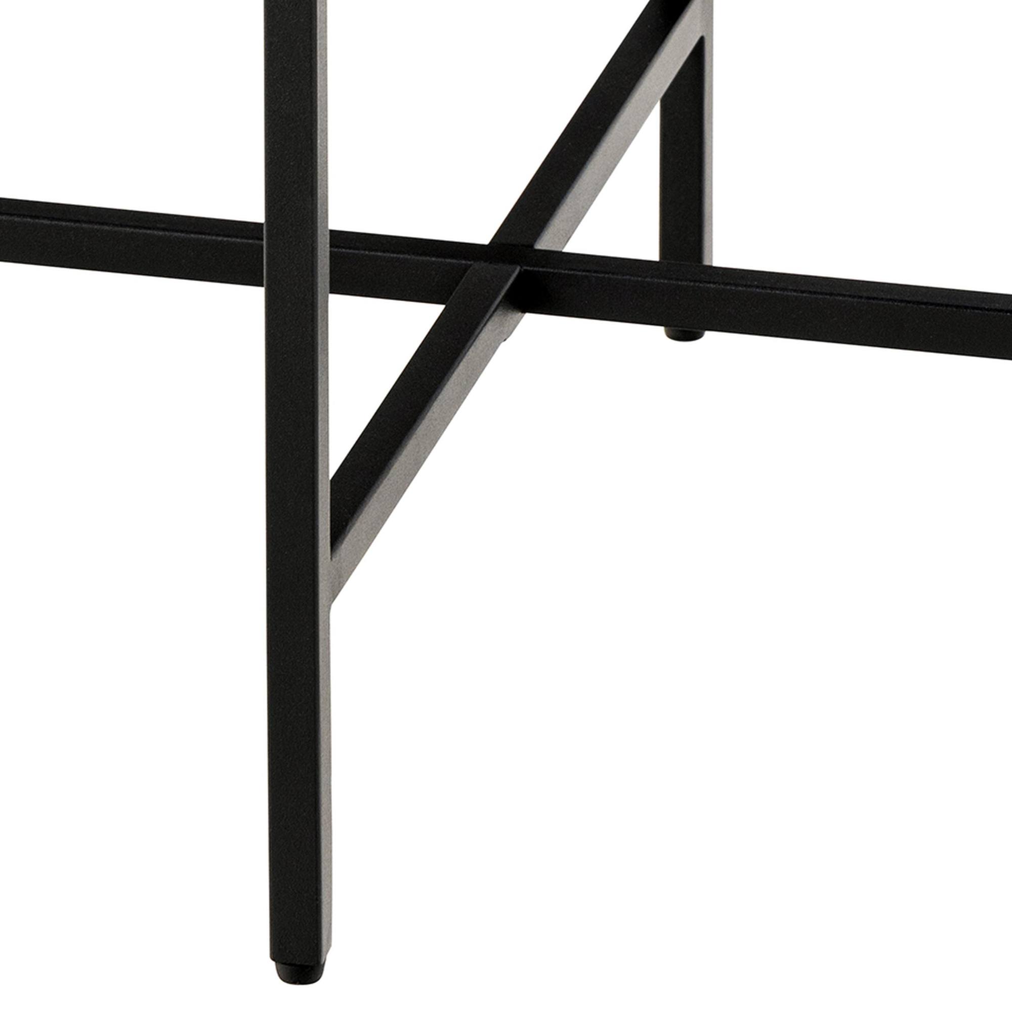 Za svoju stabilitu vďačí tento stolík svojej pevnej kovovej konštrukcii. Jeho horná doska je z laminovanej drevotrieskovej dosky.