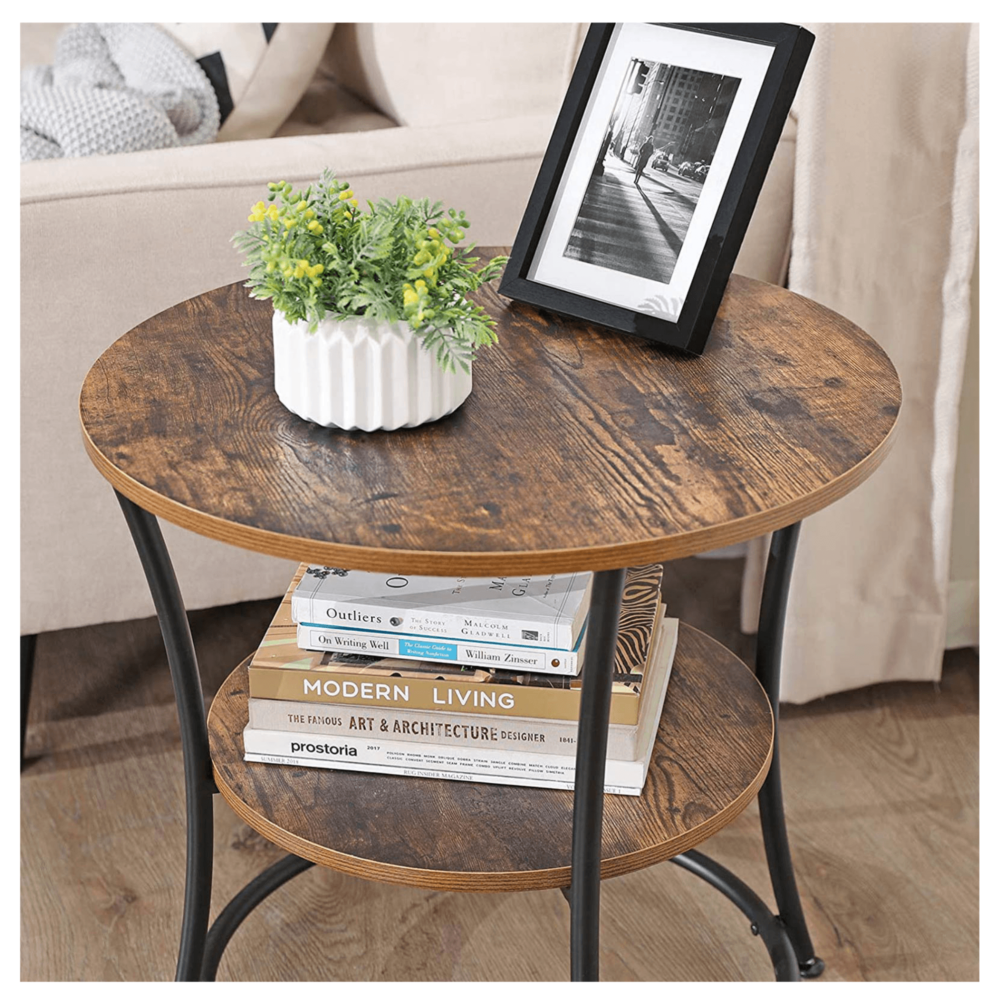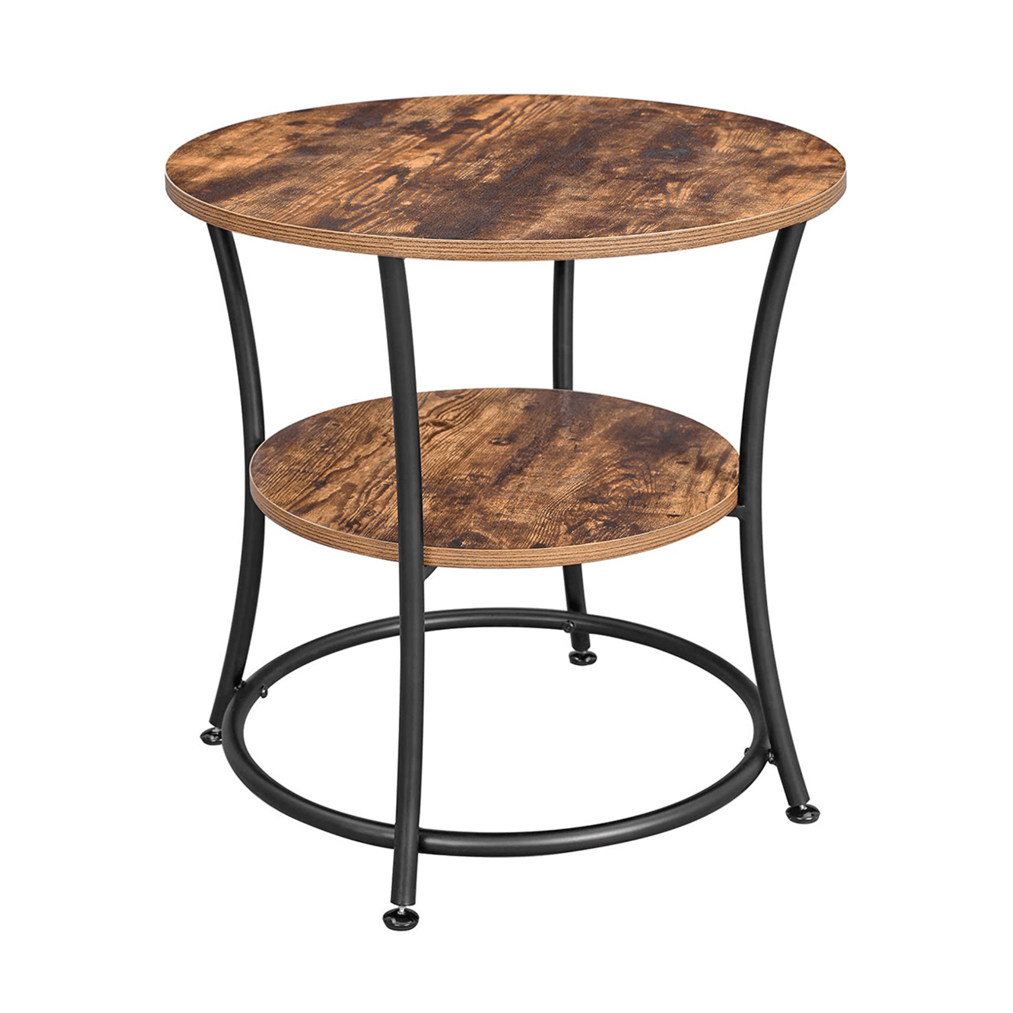 Odkladací stolík SIDE s nádychom industriálneho štýlu skvele podporí každú domácnosť. Vyrobený je v kombinácii stabilnej kovovej konštrukcie a ľahko udržiavateľnej drevotriesky. Dostatočný odkladací priestor zaisťuje hlavná doska s priemerom 55 cm a spodná polica. Konštrukcia stolíka disponuje nastaviteľnými nôžkami, vďaka ktorým ho ľahko vyrovnáte na nerovnom povrchu. Ku kreslu na kávu, do rohu na kvet, k posteli a jednoducho kamkoľvek, kde potrebujete decentný odkladací priestor – univerzálny prístavný stolík SIDE nájde uplatnenie naprieč celou domácnosťou.