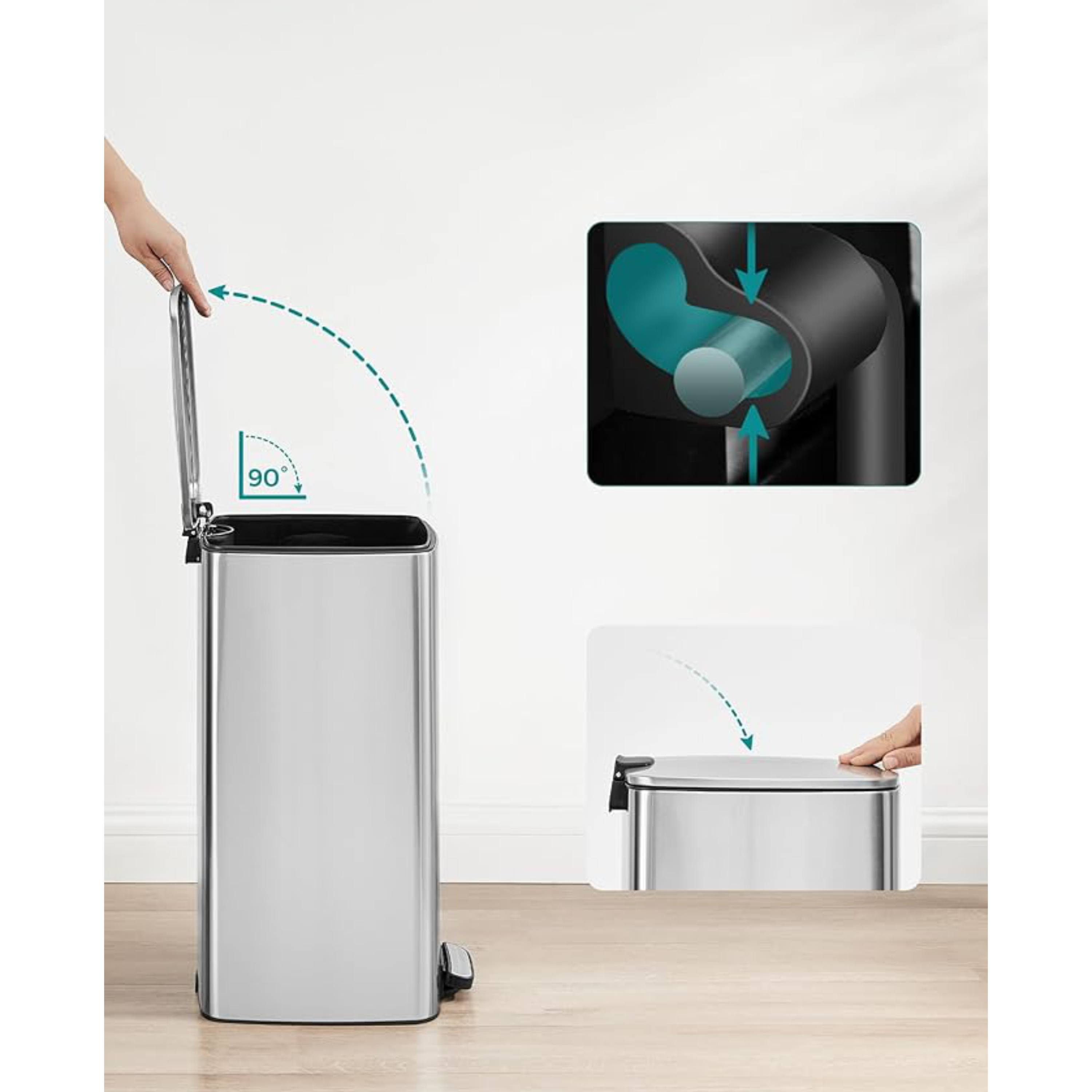 Elegantný odpadkový kôš HOLD sa stane nepostrádateľným a štýlovým doplnkom vašej kuchyne. Využiť ho samozrejme môžete aj v ďalších častiach domácnosti. Vyrobený je z ocele, a preto je ľahko umývateľný. Plastovú vloženú nádobu s objemom 30 l môžete kedykoľvek jednoducho vybrať a uľahčiť si tak manipuláciu. Kôš sa otvára pomocou hygienického pedálového mechanizmu a disponuje funkciami STAY OPEN a SOFT CLOSE, pri ktorých môže veko zostať pri otvorení úplne otvorené a pri zatváraní sa pomaly doviera.