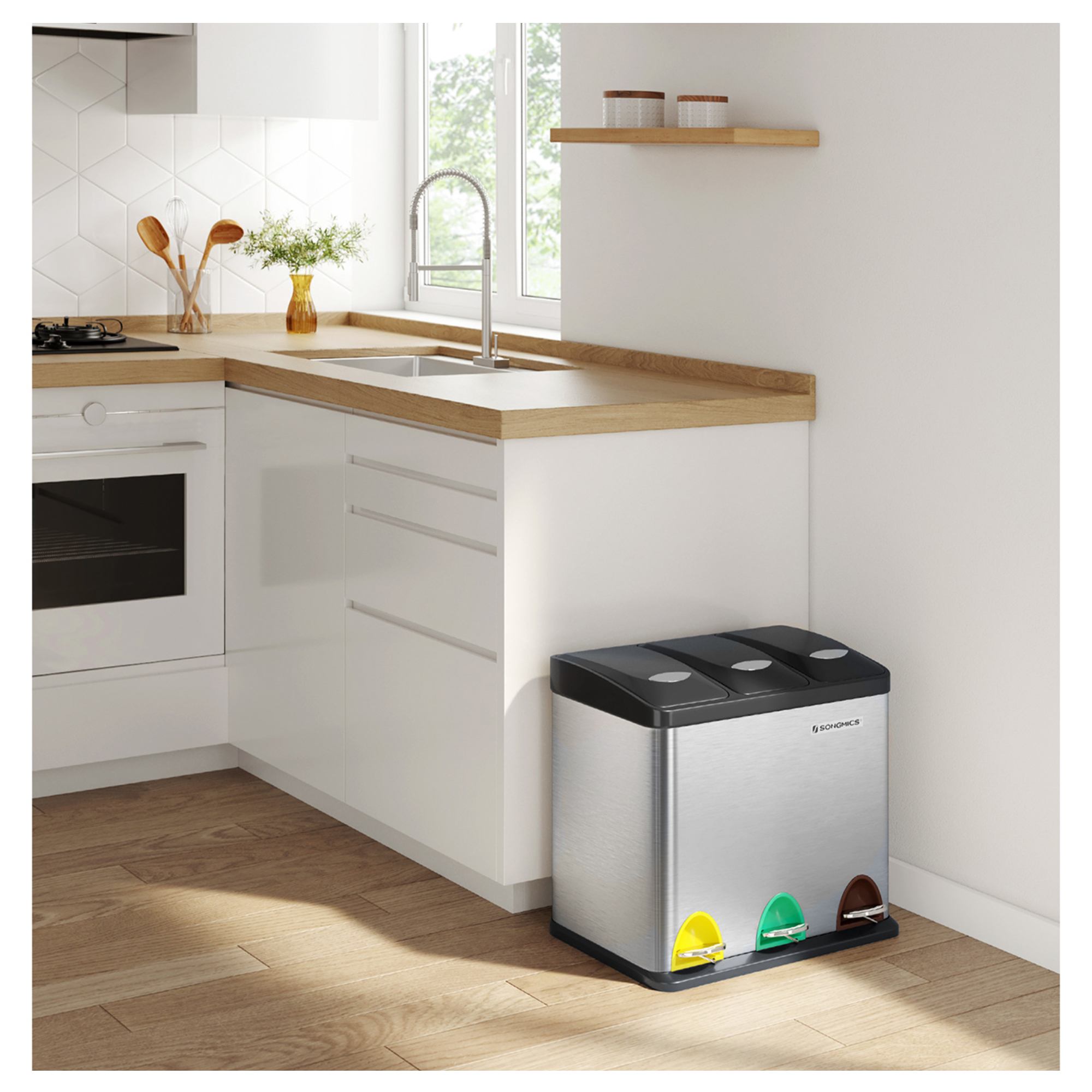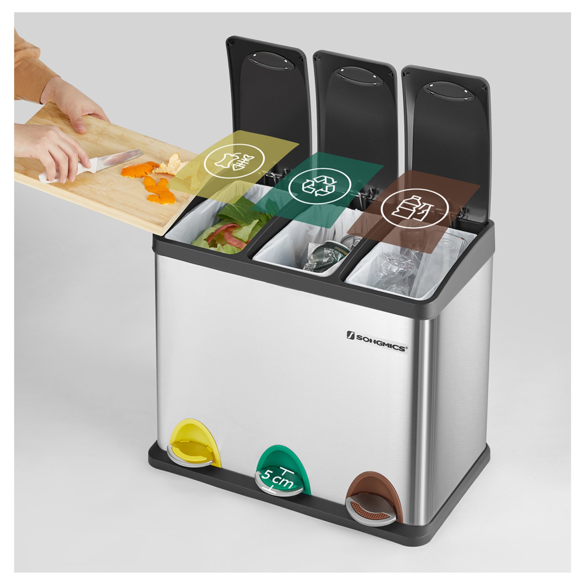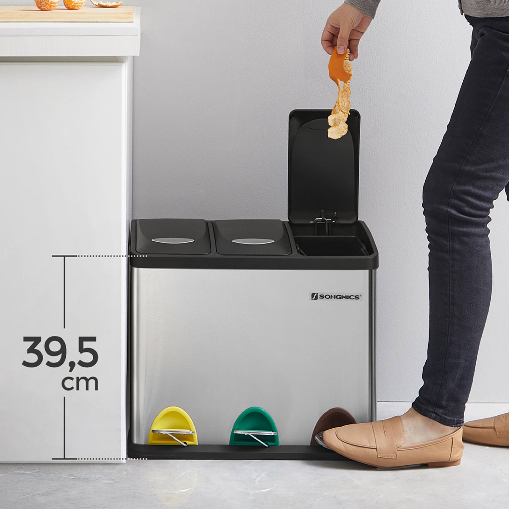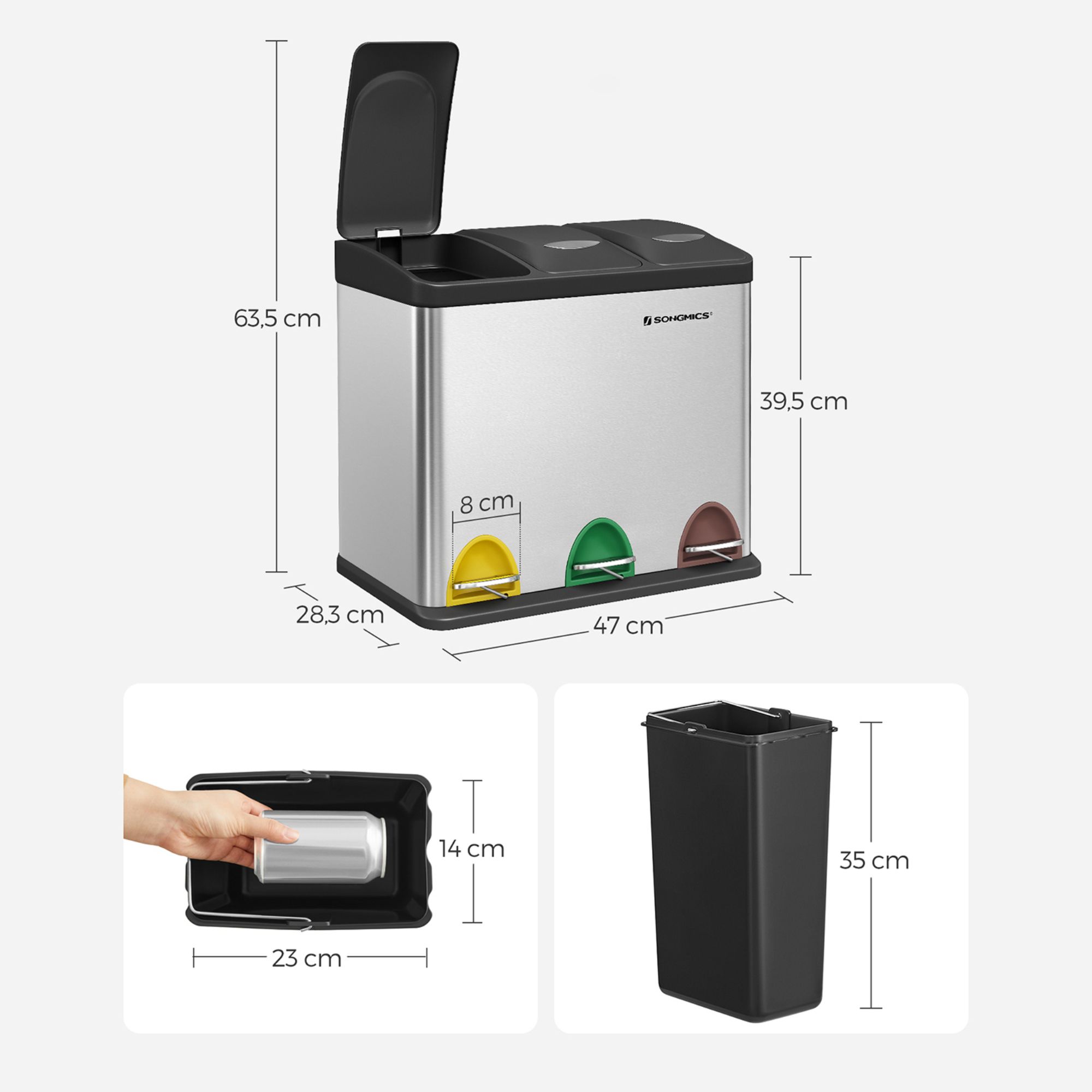 Je rozdelený na 3 časti s objemom 8 L, spolu teda činí 24 L. Jednotlivé koše sa jednoducho otvárajú pomocou nášľapného pedála. Sú farebne rozlíšené pre prehľadnejšie triedenie. Nádoby možno po ich naplnení vybrať pomocou praktickej úchytky. Konštrukcia koša je vyrobená z nehrdzavejúcej ocele, ktorá sa vyznačuje trvácnosťou, odolnosťou proti korózii a zaisťuje jednoduché čistenie. Veko koša je vyrobené z kvalitného ABS plastu.