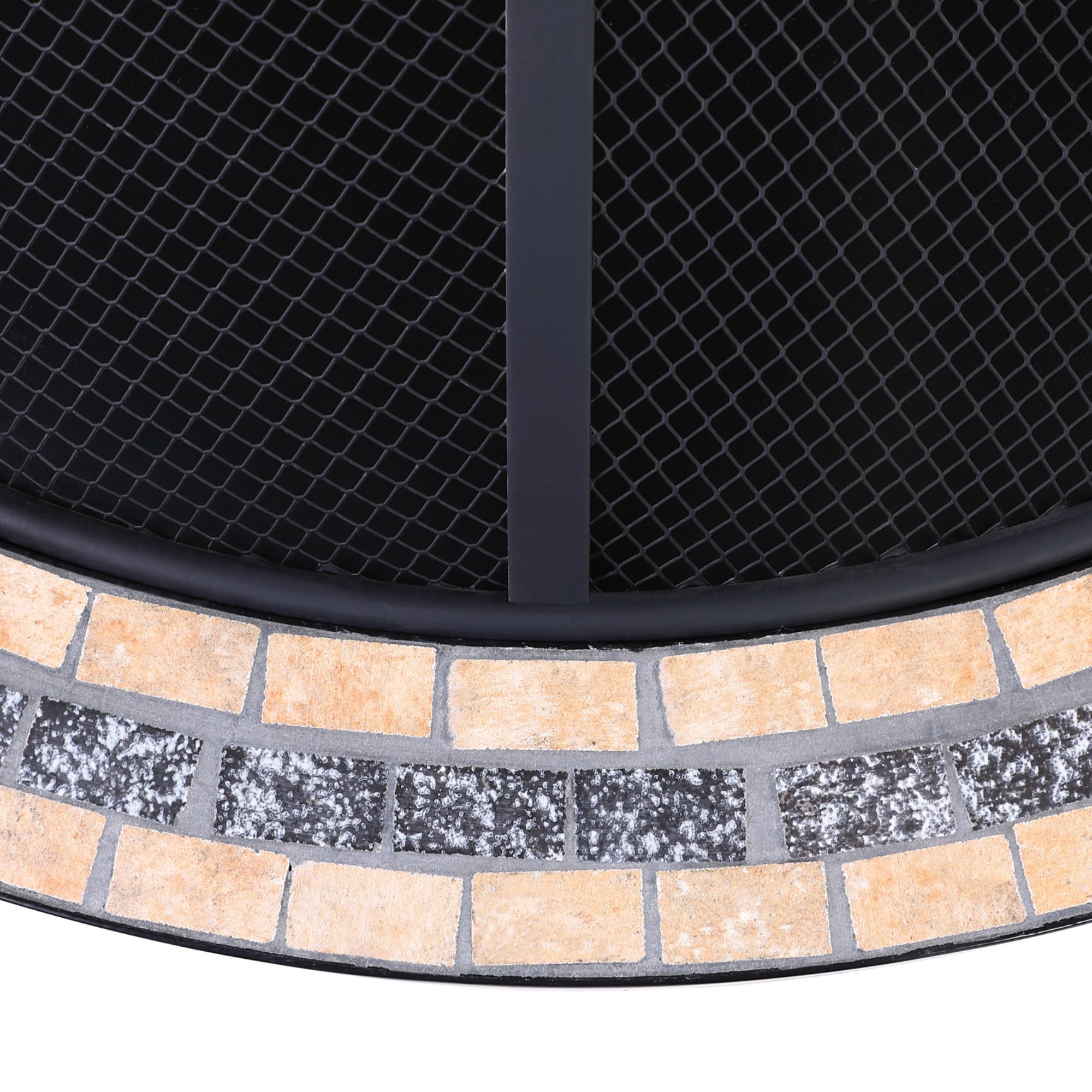 Má robustnú oceľovú konštrukciu v čiernej farbe, ktorá zabezpečuje vysokú stabilitu. Jednoduchá konštrukcia je doplnená štýlovým mozaikovým okrajom, ktorý dodáva ohnisku originálny vzhľad. Súčasťou je poklop proti iskrám, ktorý zabezpečuje bezpečné používanie. Ďalej je vybavené roštom na lepšie prúdenie vzduchu a krytom na jeho ochranu pri nepoužívaní. Praktickým doplnkom je kovový pohrabáč na jednoduchú údržbu ohňa.