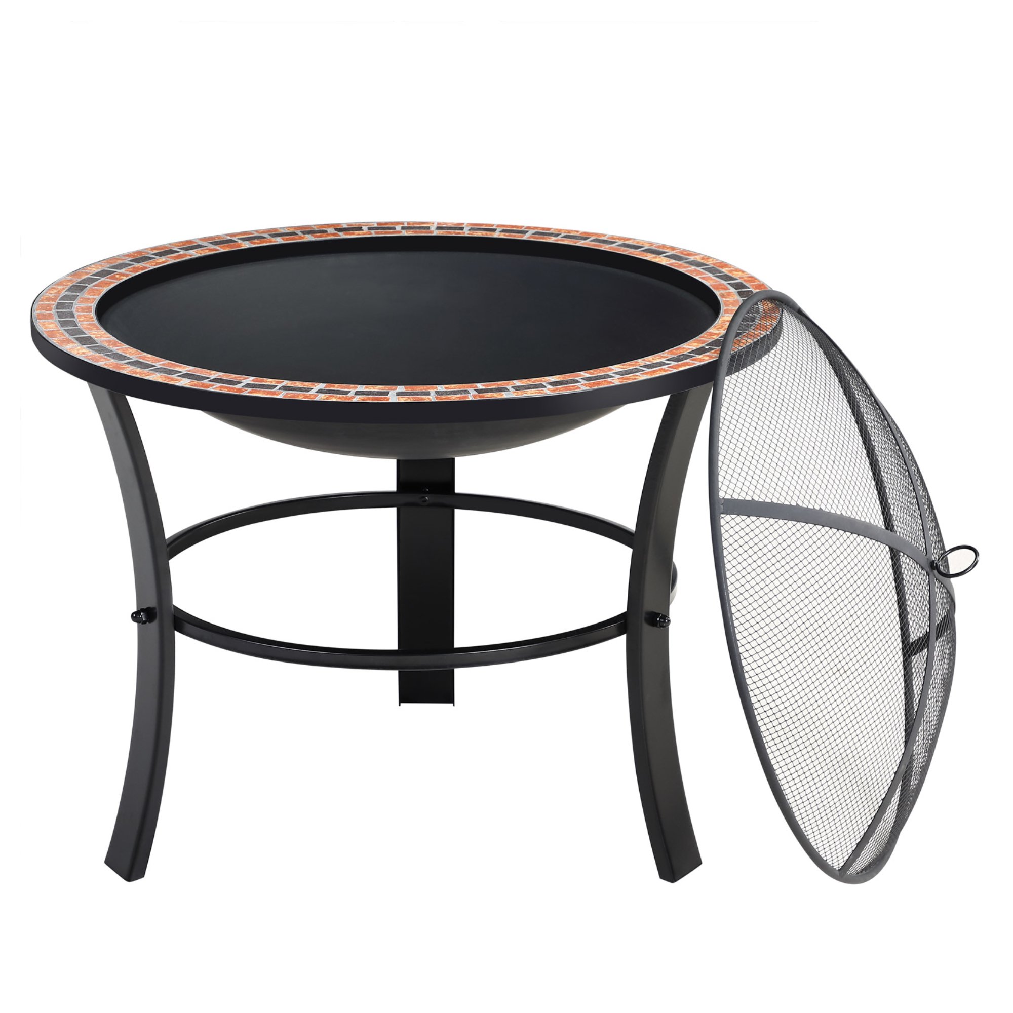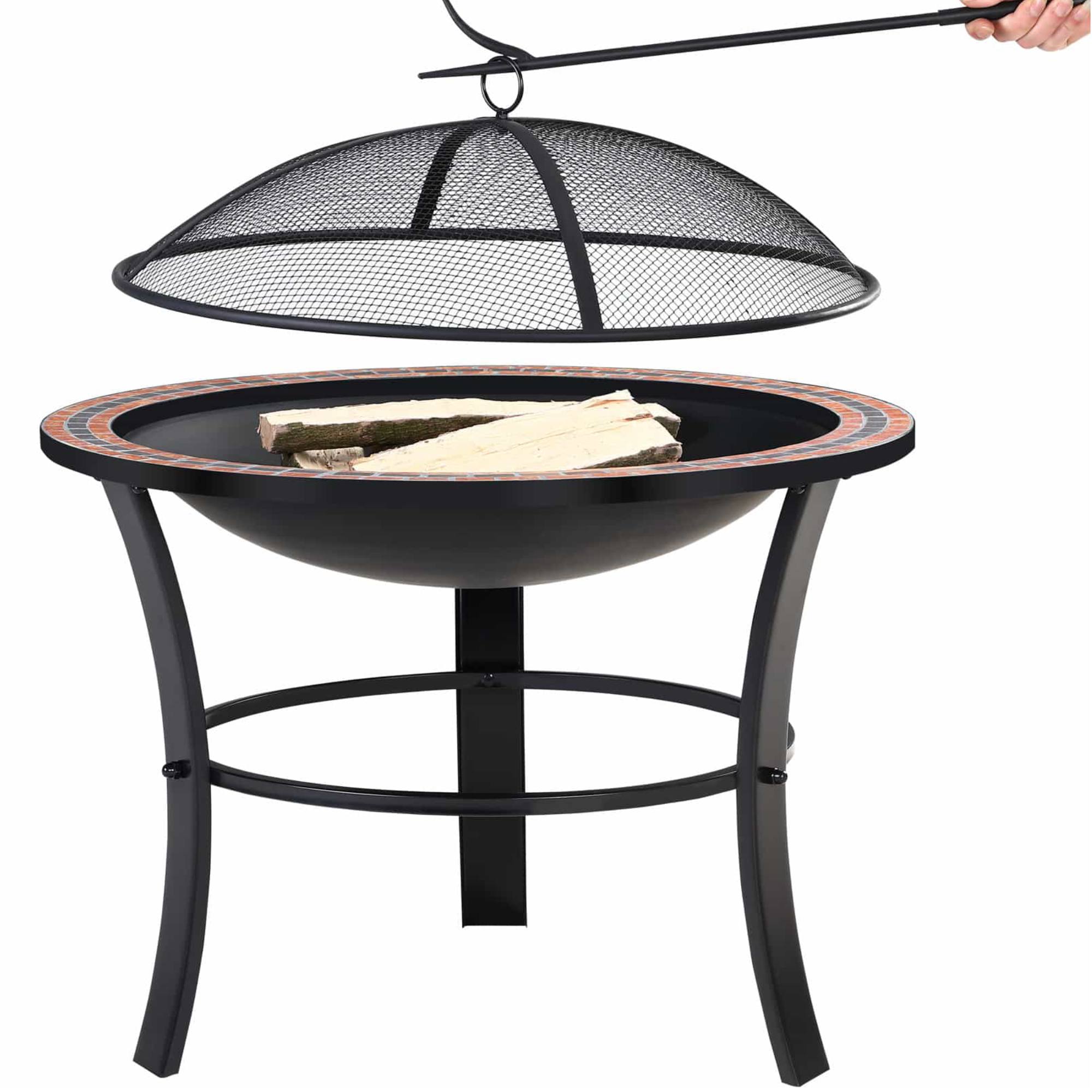Má robustnú oceľovú konštrukciu v čiernej farbe, ktorá zabezpečuje vysokú stabilitu. Jednoduchá konštrukcia je doplnená štýlovým mozaikovým okrajom, ktorý dodáva ohnisku originálny vzhľad. Súčasťou je poklop proti iskram, ktorý zabezpečuje bezpečné používanie. Ďalej je vybavené roštom pre lepšie prúdenie vzduchu a krytom na ochranu pri nepoužívaní. Praktickým doplnkom je kovový pohrabáč na jednoduchú údržbu ohňa.