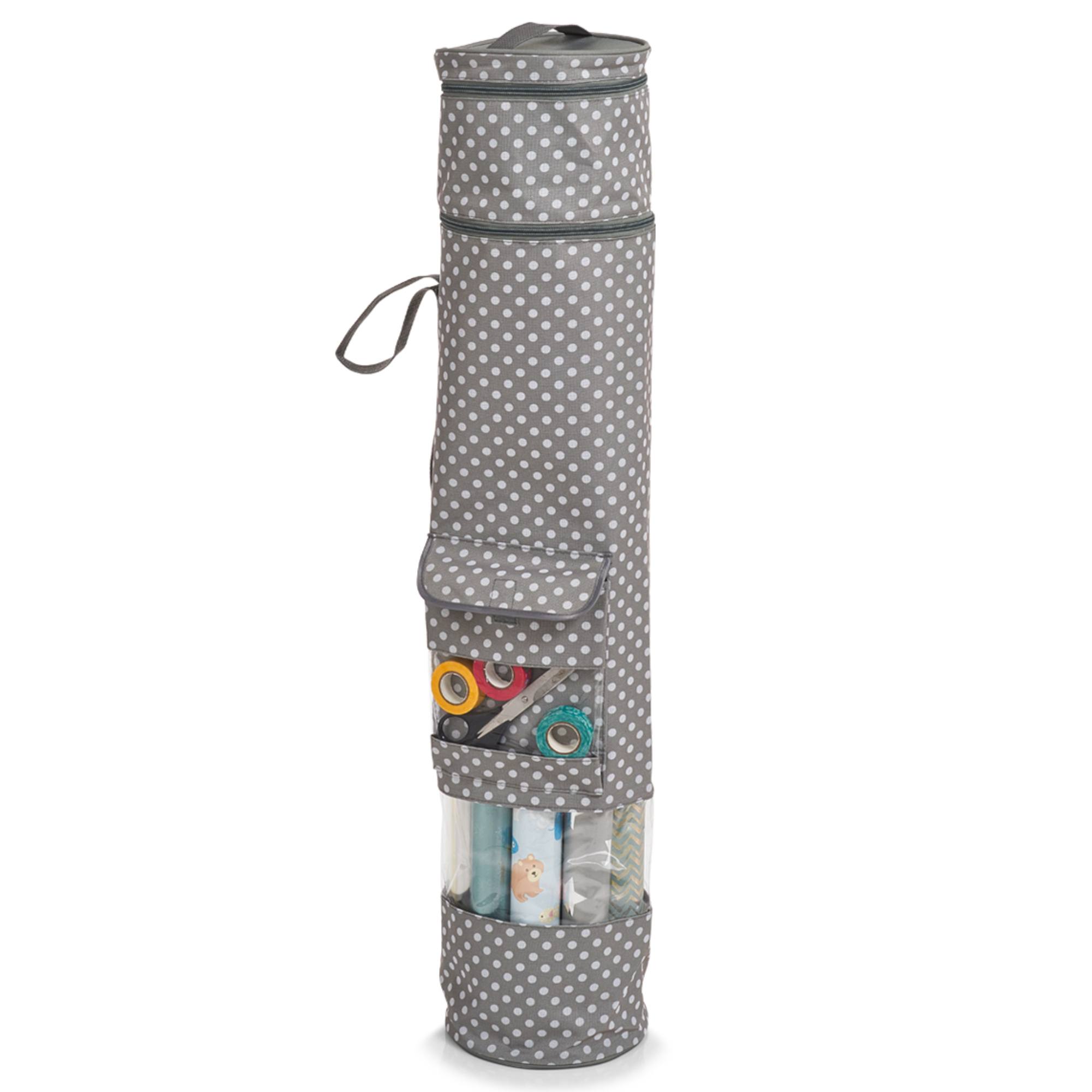 Praktický organizér na baliaci papier prináša poriadok do vášho darčekového baliaceho náčinia. Hlavná komora ponúka priestor až na 15 kotúčov baliaceho papiera, ktorý je možné rýchlo uložiť vďaka zipsu. Ďalšia priehradka ponúka priestor na akékoľvek príslušenstvo. Dodatočné vonkajšie vrecko so suchým zipsom umožňuje ľahko a viditeľne uložiť nožnice alebo lepiacu pásku. Dve držadlá na bokoch uľahčujú prepravu a organizér je možné neviditeľne uložiť do skrine pomocou pútka na zavesenie.