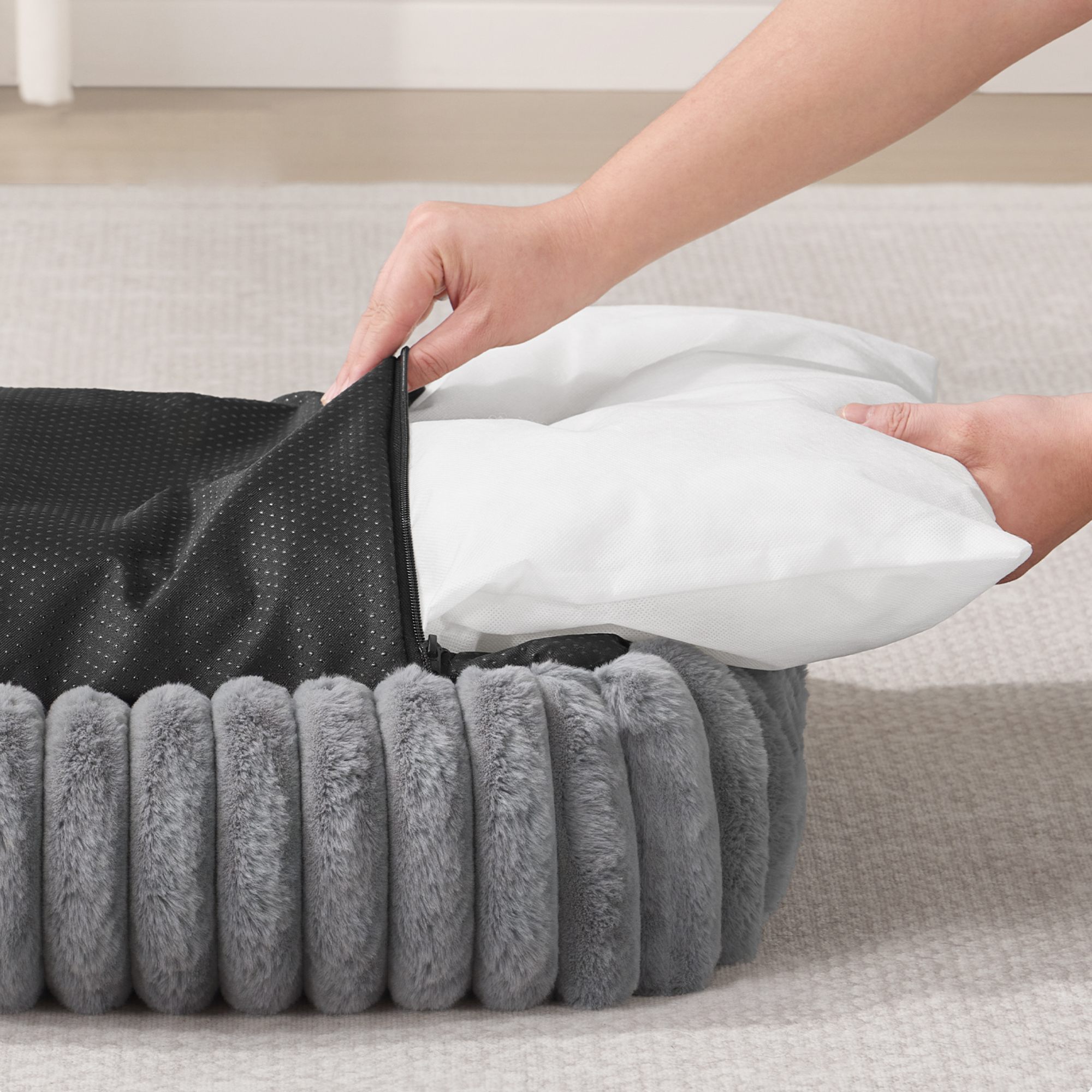 - Doplňujúca poznámka: Chráňte pelech pred teplotami nad 40 °C, ako je kúrenie či vyhrievané podlahy. Ak máte podlahové vykurovanie, umiestnite pelech na koberec.