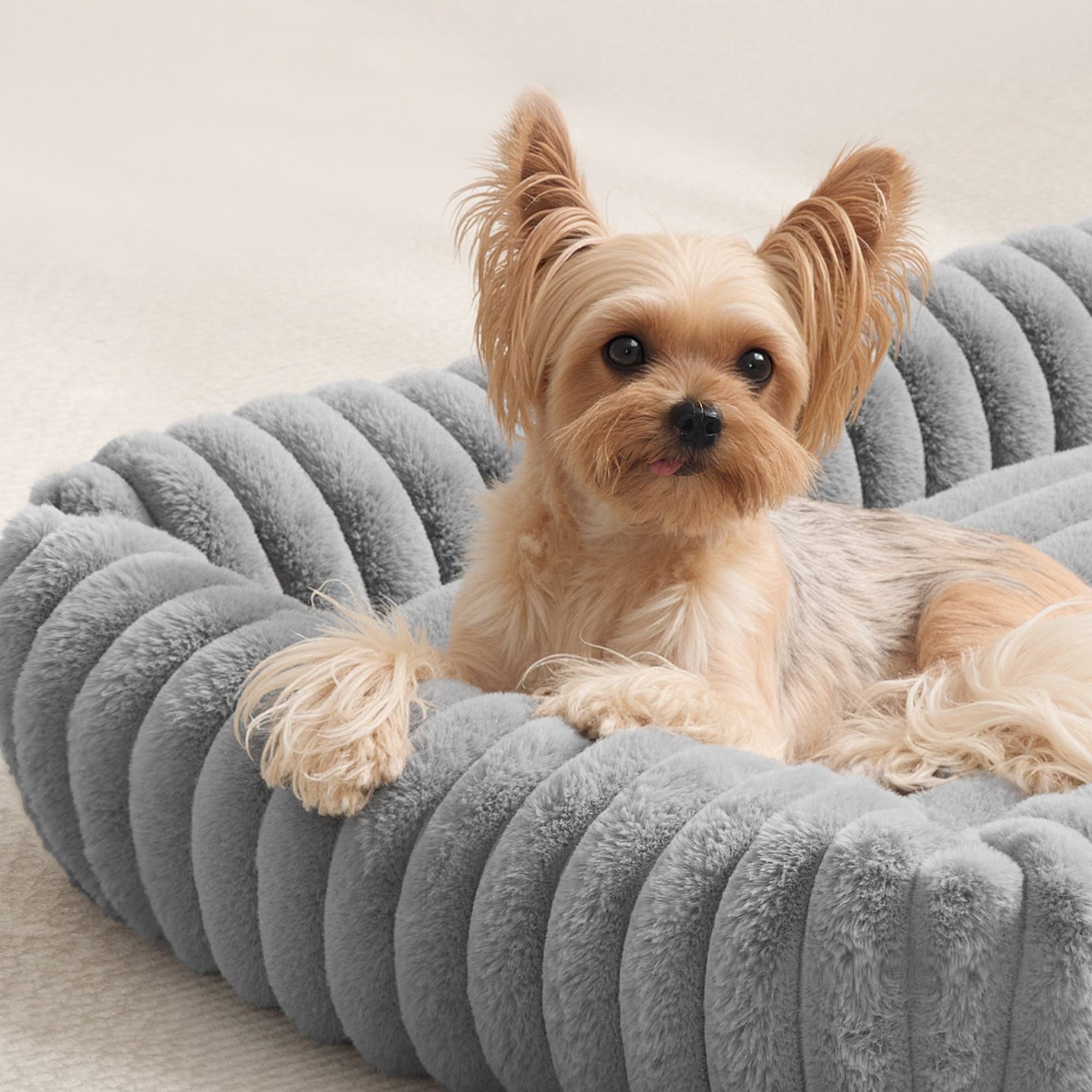 Pelech s rozmermi 71x55 cm je vhodný pre psy do 15 kg. Je vyrobený z hladkej a mäkkej látky imitujúcej králičiu kožušinu doplnenej o rebrovaný povrch. Zvýšené okraje v kombinácii s mäkkou polypropylénovou výplňou podopierajú krk a hlavu, čím zabezpečujú maximálny komfort a pocit bezpečia. Spodná strana je opatrená protišmykovou vrstvou, ktorá udrží pelech na mieste. Vytvára ideálny priestor pre pokojný spánok aj ničím nerušený odpočinok.