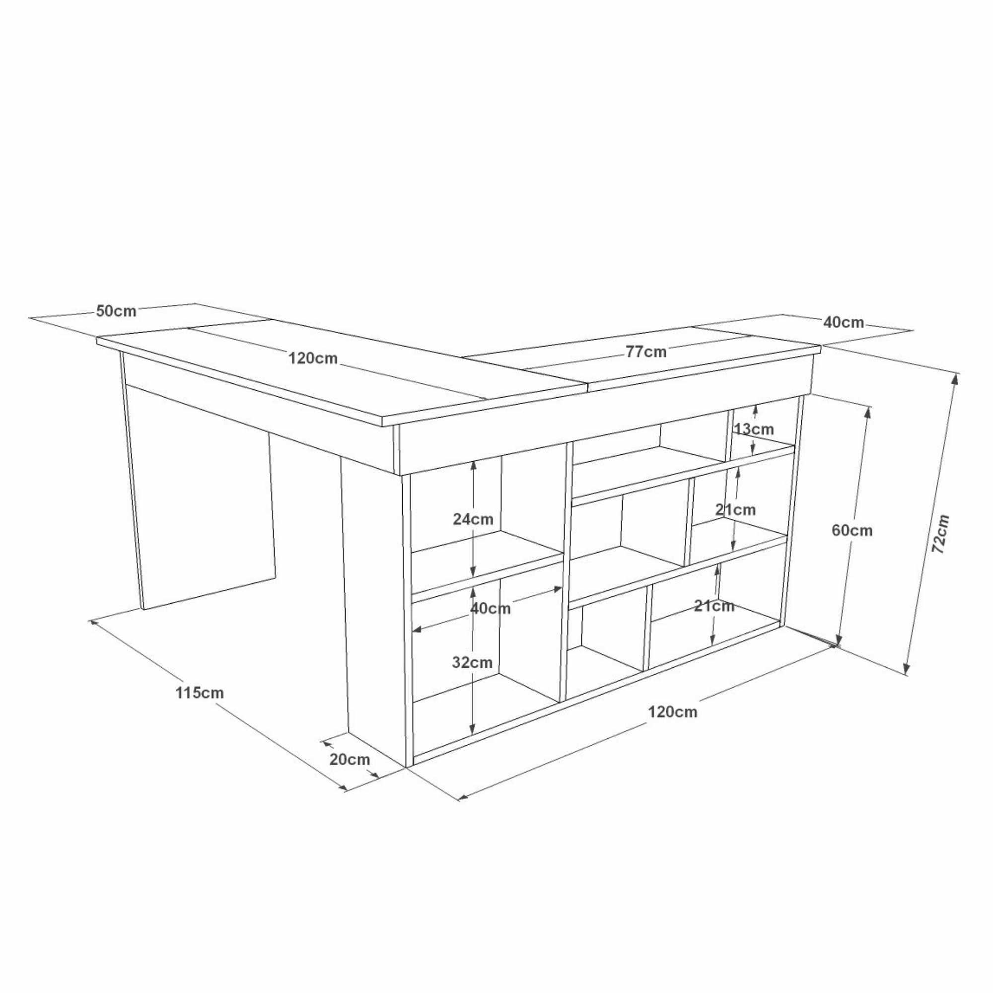Vďaka svojmu vyhotoveniu ho môžete umiestniť priamo do rohu miestnosti, ale vynímať sa bude aj voľne v priestore. Skvele tak zapadne do všetkých moderne zariadených pracovní alebo kancelárií. Dostatočne široká horná doska vám poskytne plno priestoru na všetku vašu prácu. Atypická konštrukcia, do ktorej sú zakomponované otvorené police využijete na uloženie všetkých vašich predmetov.