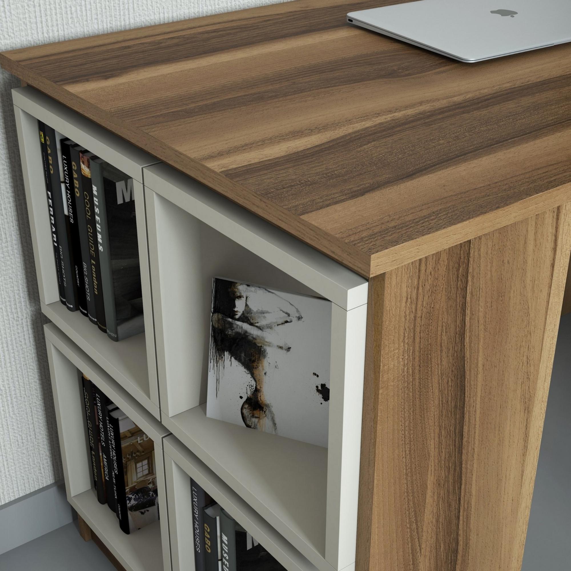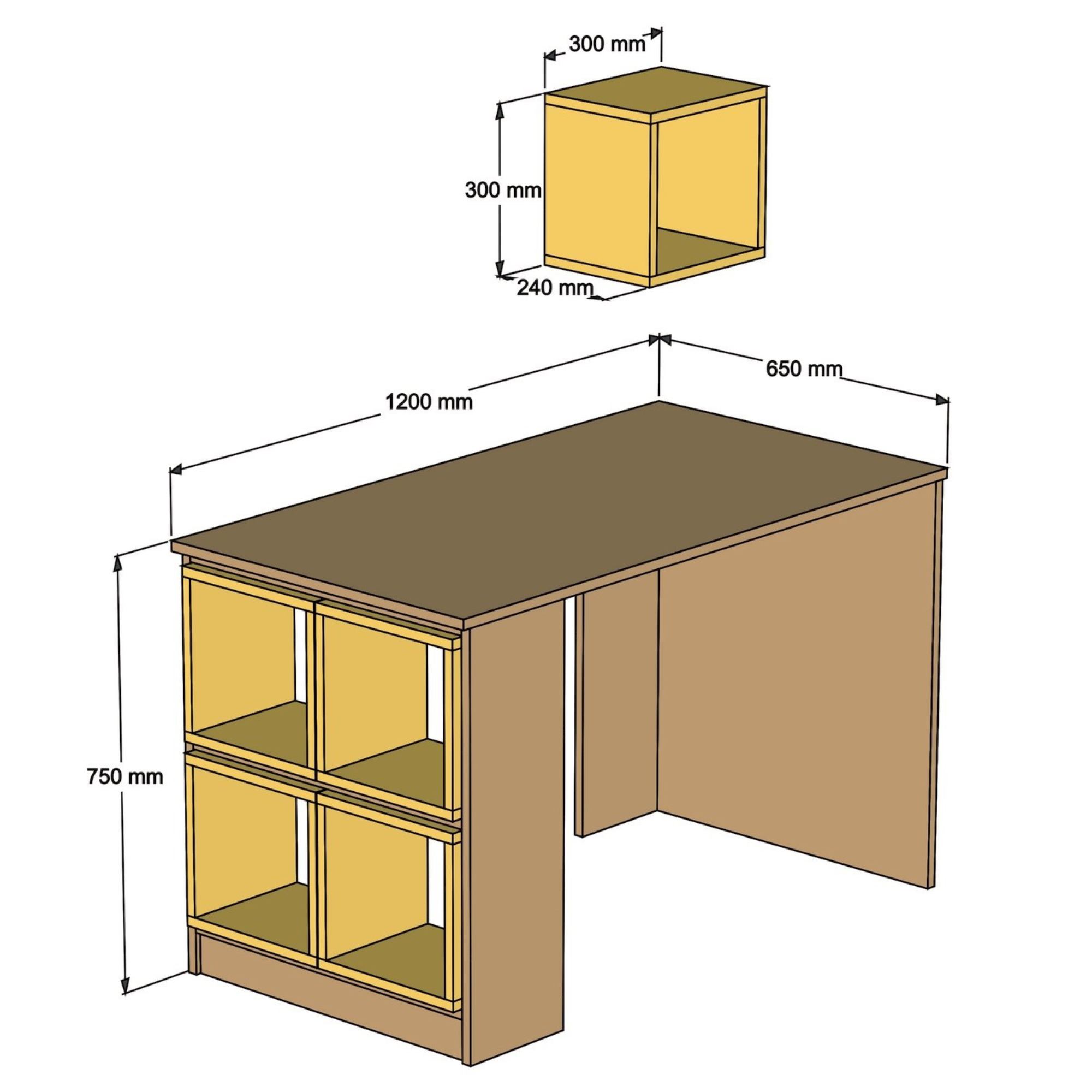 Pracovná doska s hĺbkou 65 cm poskytuje dostatok priestoru na prácu na PC aj na ďalšiu kancelársku činnosť. Súčasťou balenia je 5 ks úložných boxov s rozmermi (š/v/h: 30x30x24 cm), ktoré slúžia ako vložené police na uloženie kníh a dekorácií vnútri stola. Boxy možno tiež variabilne vyberať zo stola a využiť ich ako ďalší úložný priestor aj mimo pracovný stôl. Skvele sa budú vynímať napríklad na stene. Laminovaná drevotriesková doska je nenáročná na údržbu a je ideálna na každodenné používanie.