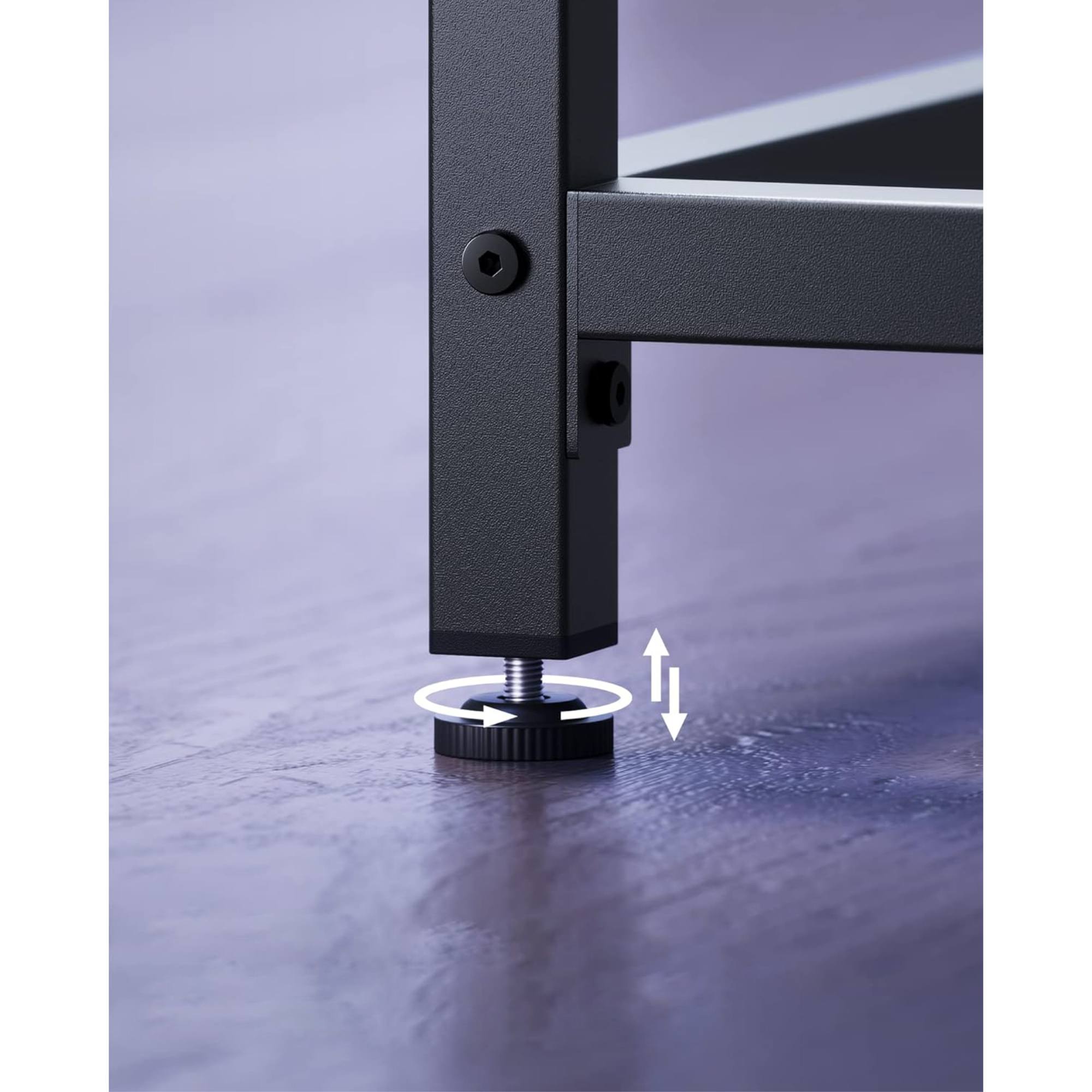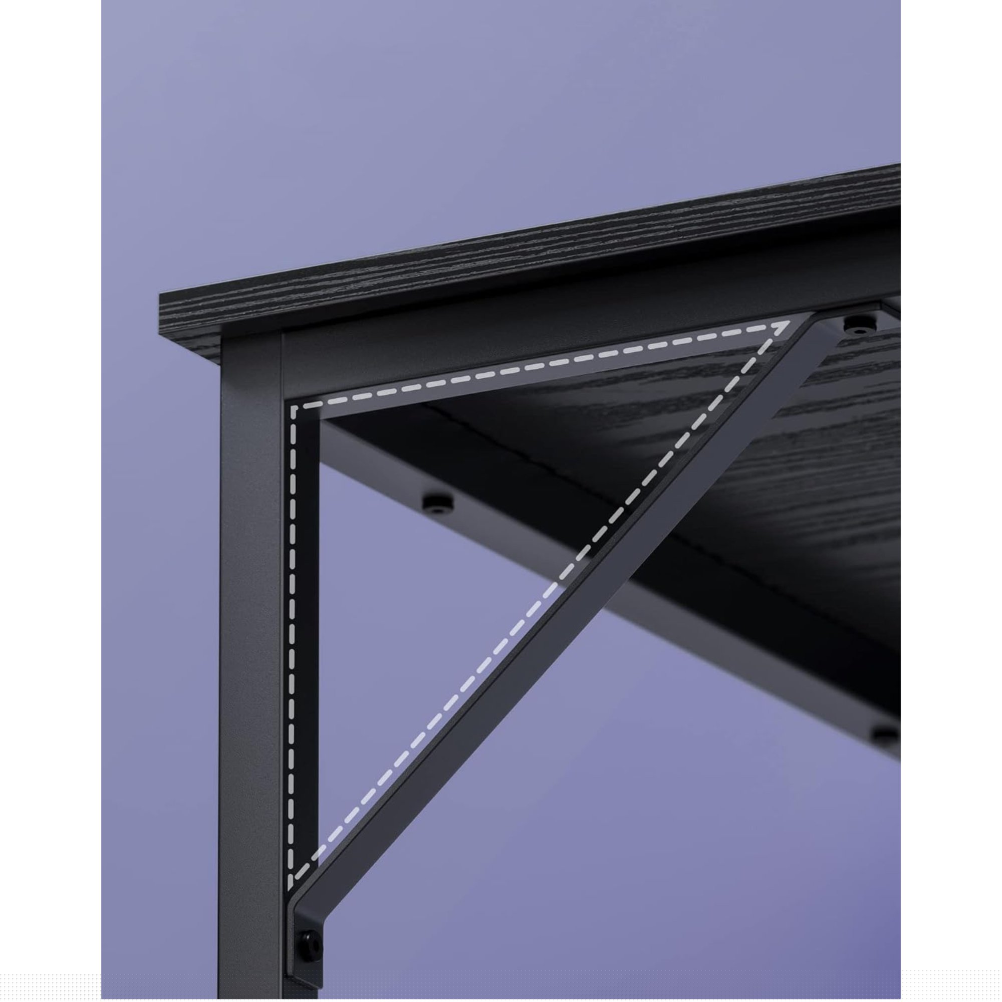 Kovový rám a prídavné tyče v horných rohoch poskytujú dostatočnú pevnosť. Nohy stola sú v spodnej časti nastaviteľné a vďaka tomu umožňujú vyrovnávanie drobných podlahových nerovností. Široká stolná doska je vyrobená z laminovanej drevotrieskovej dosky a ponúka dostatok miesta na prácu, hranie hier aj na odloženie dekorácií.