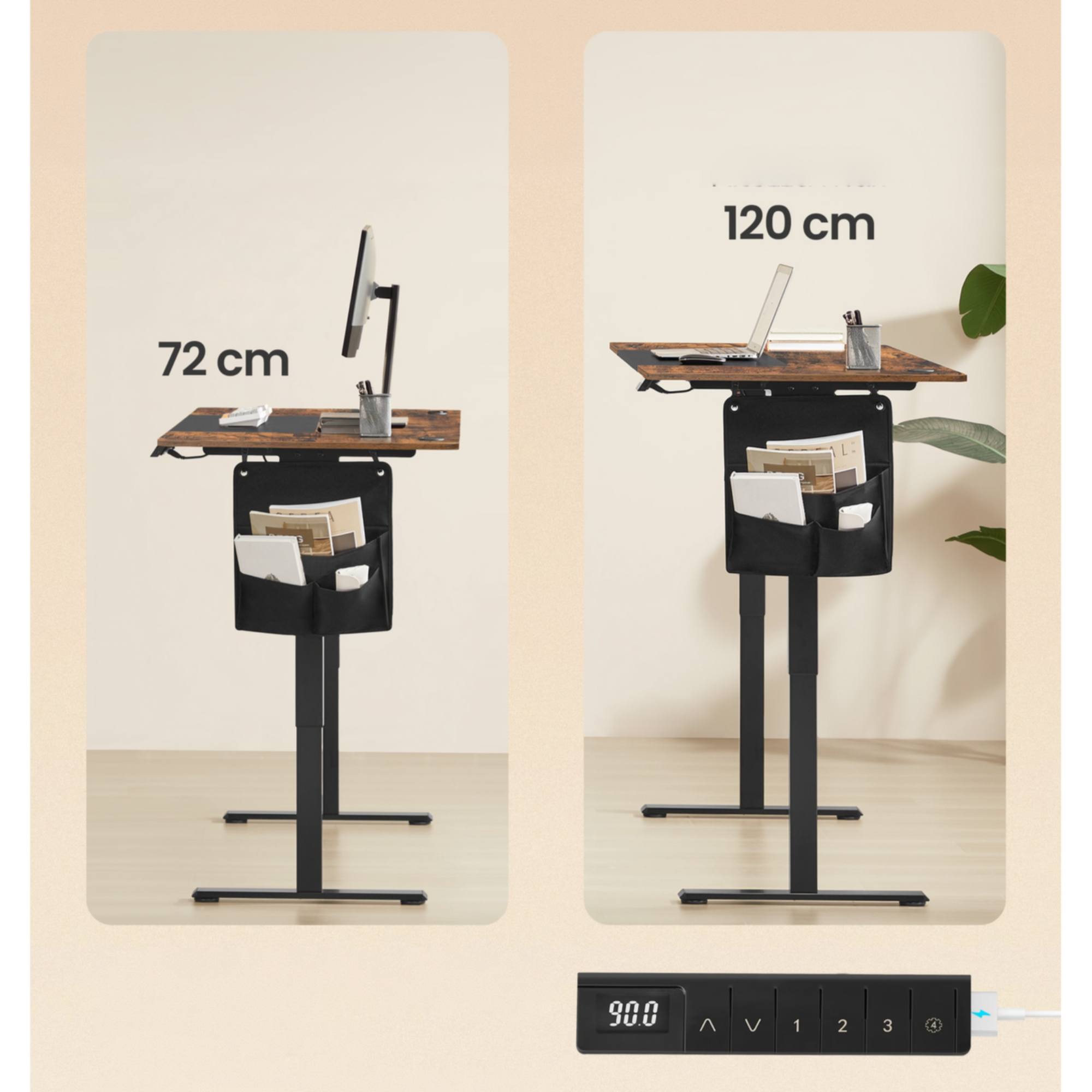 Stôl má pevnú a stabilnú kovovú konštrukciu, ktorá drží dosku z ľahko udržiavateľnej drevotriesky s nosnosťou až 70 kg. Najväčšou prednosťou tohto stola je jeho výšková nastaviteľnosť v rozmedzí 72 až 120 cm pomocou elektrického mechanizmu. Vďaka pamäťovej funkcii si môžete uložiť 4 rôzne výšky a neskôr ich opätovne využívať. Nízky prevádzkový hluk <48 dB umožňuje výšku stola nastavovať aj bez rušenia ďalších členov domácnosti.