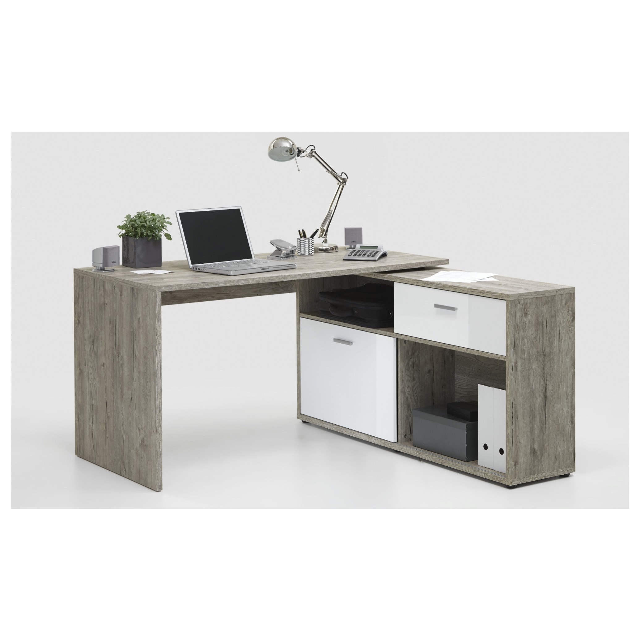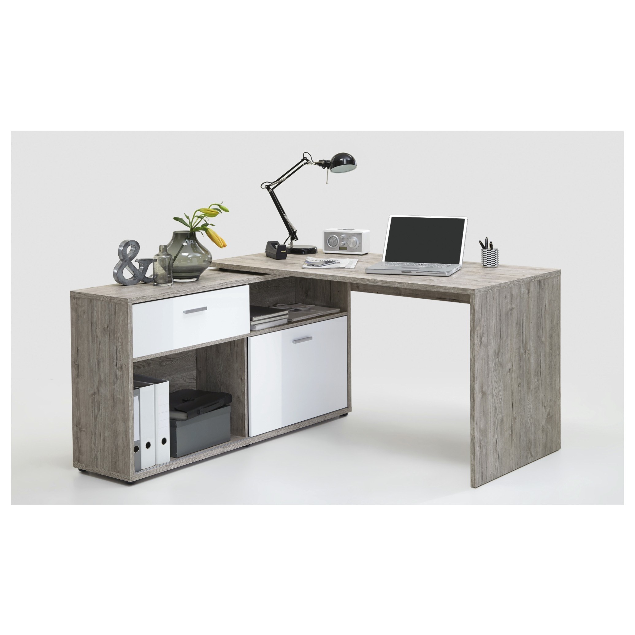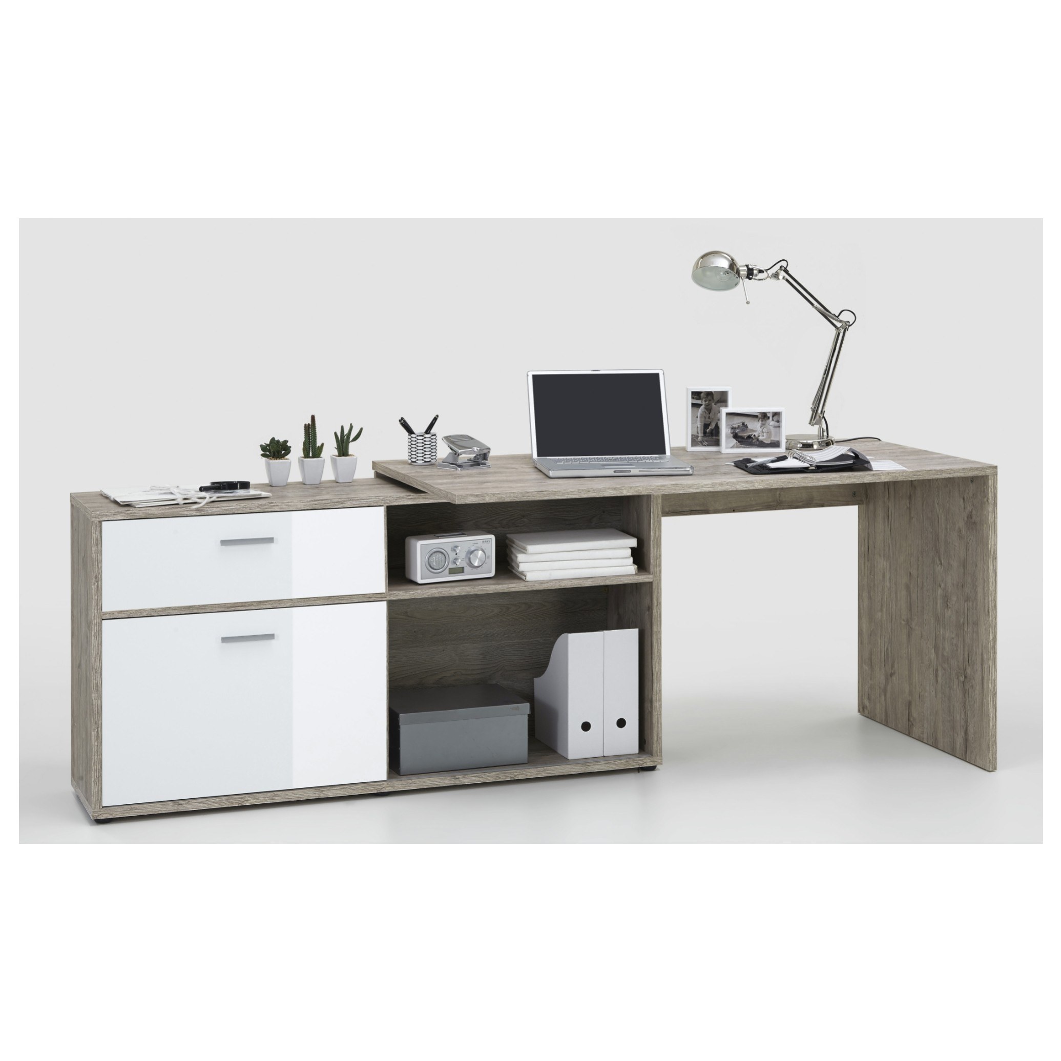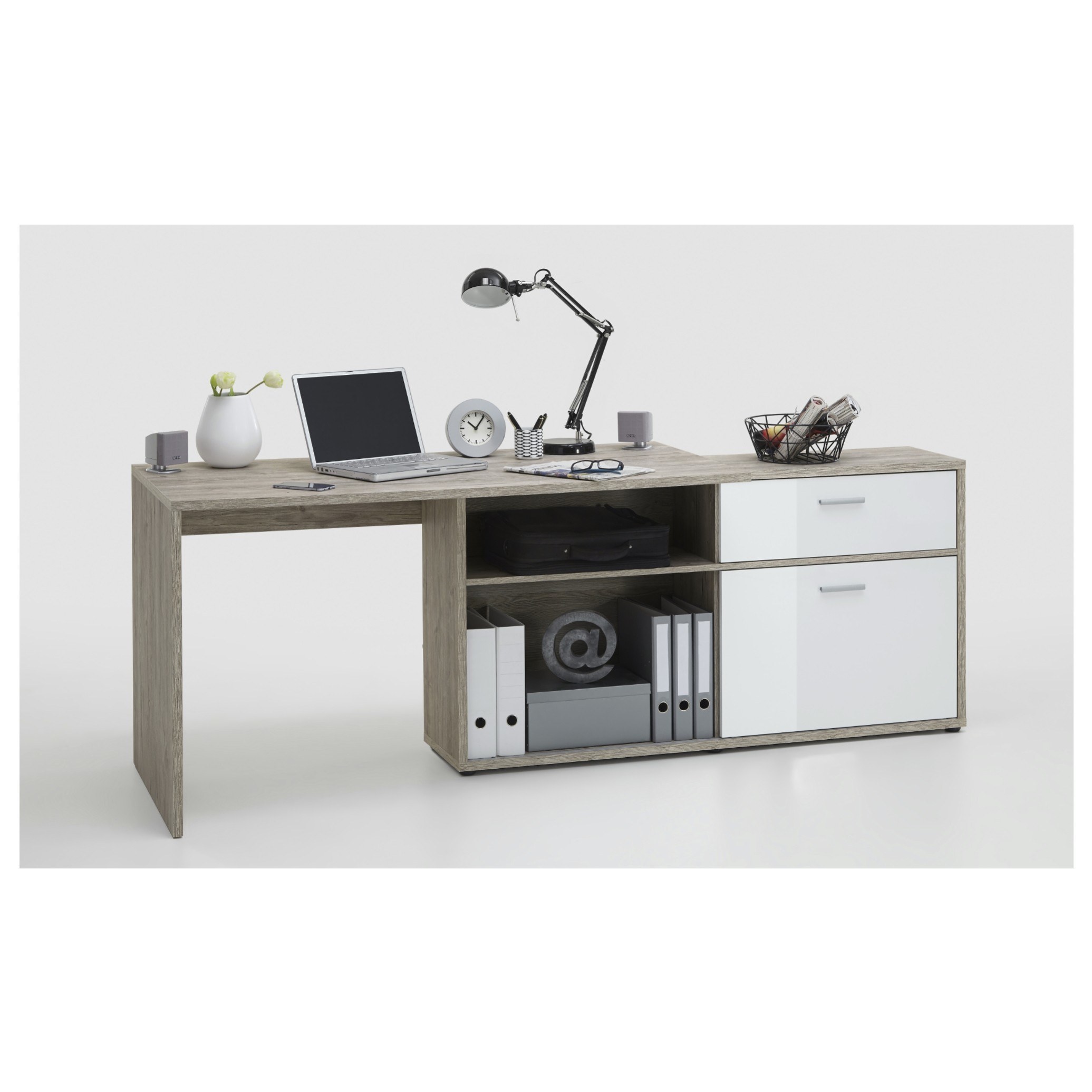 Písací stôl DIEGO 1 - dub pieskový/biela vysoký lesk