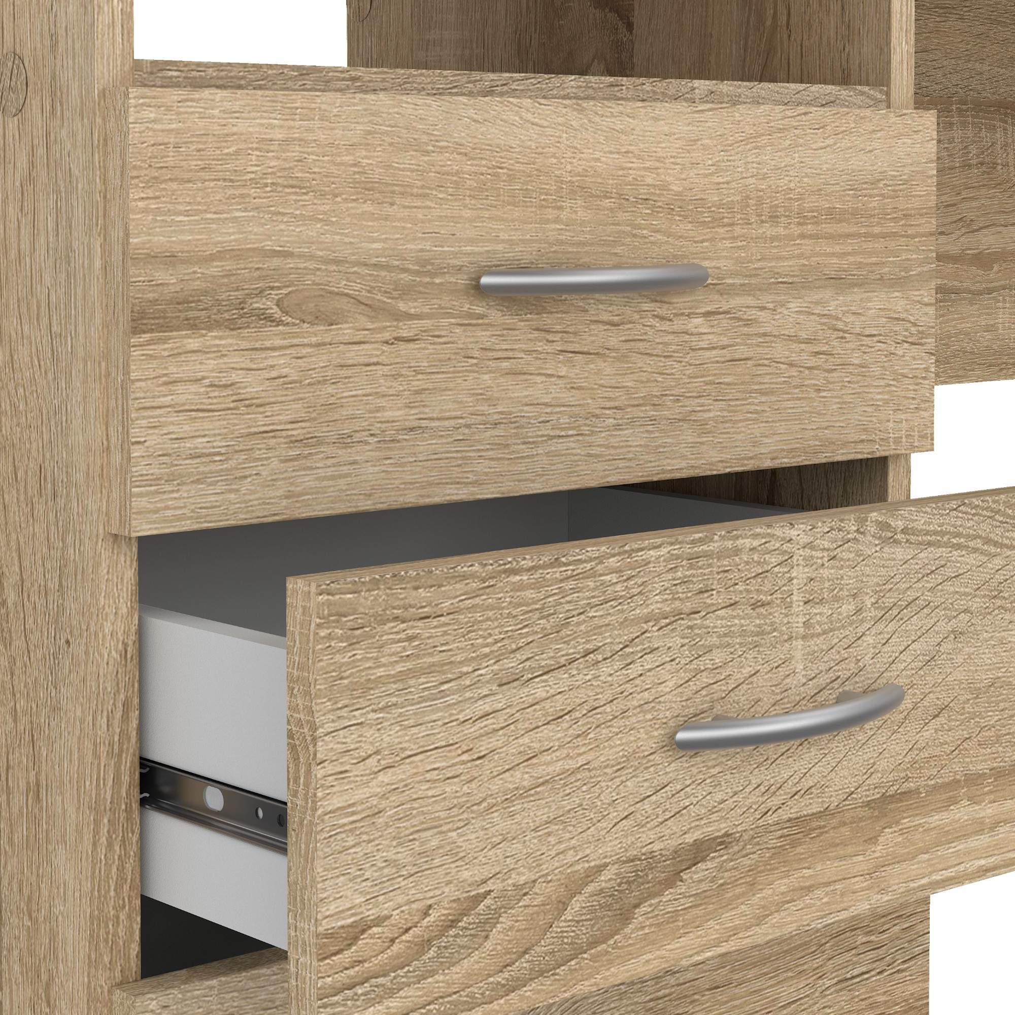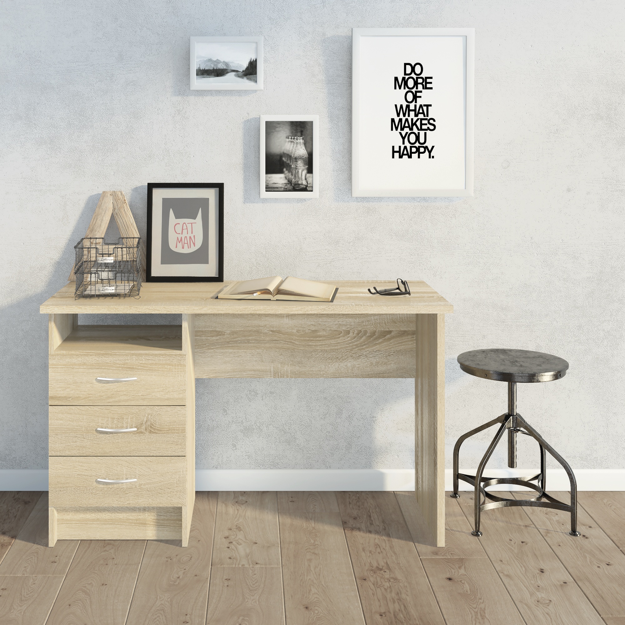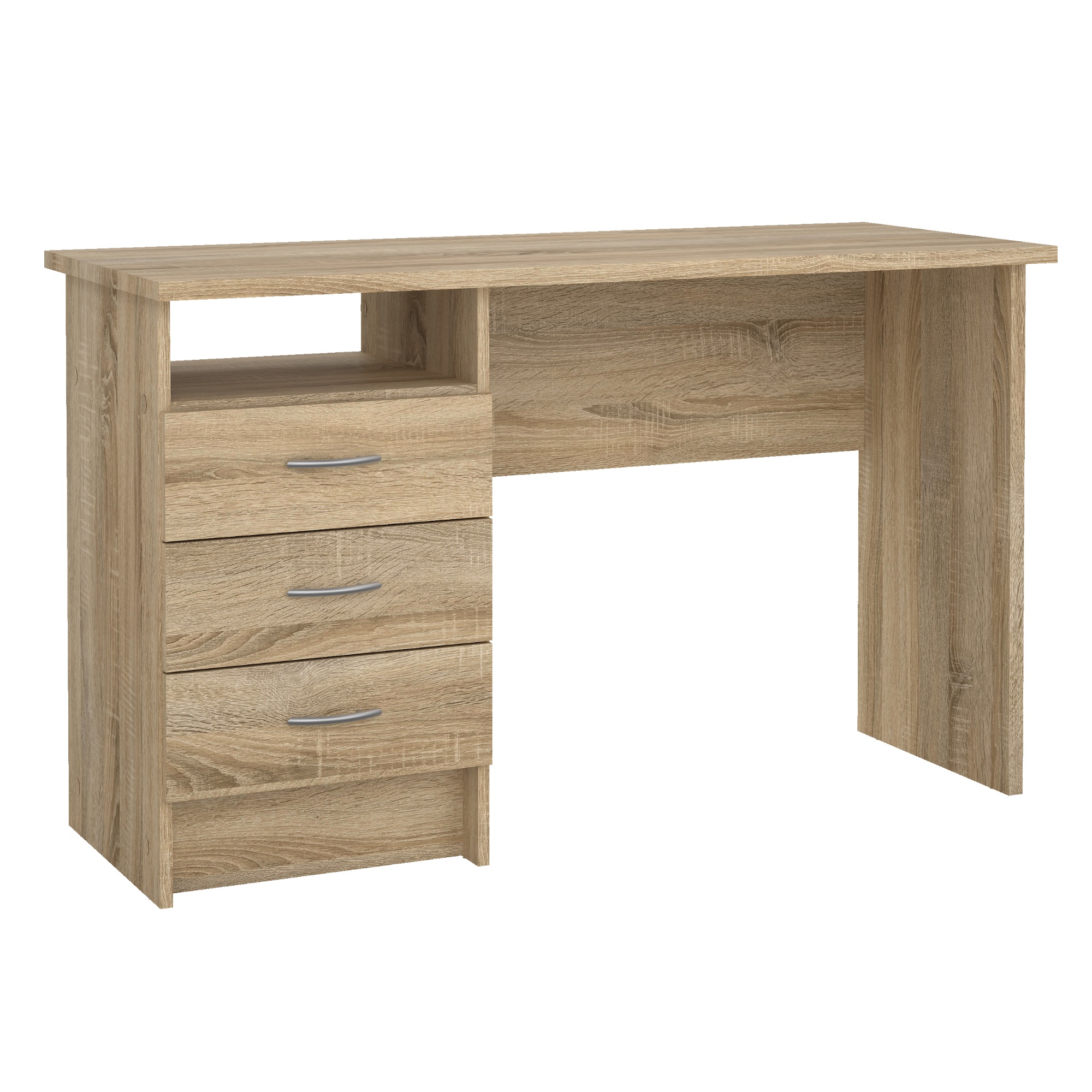 Okrem priestrannej pracovnej dosky stôl disponuje aj tromi zásuvkami, do ktorých si môžete uložiť kancelárske potreby aj ďalšie drobnosti. Aby sa so zásuvkami ľahšie manipulovalo, sú vybavené praktickými rúčkami.