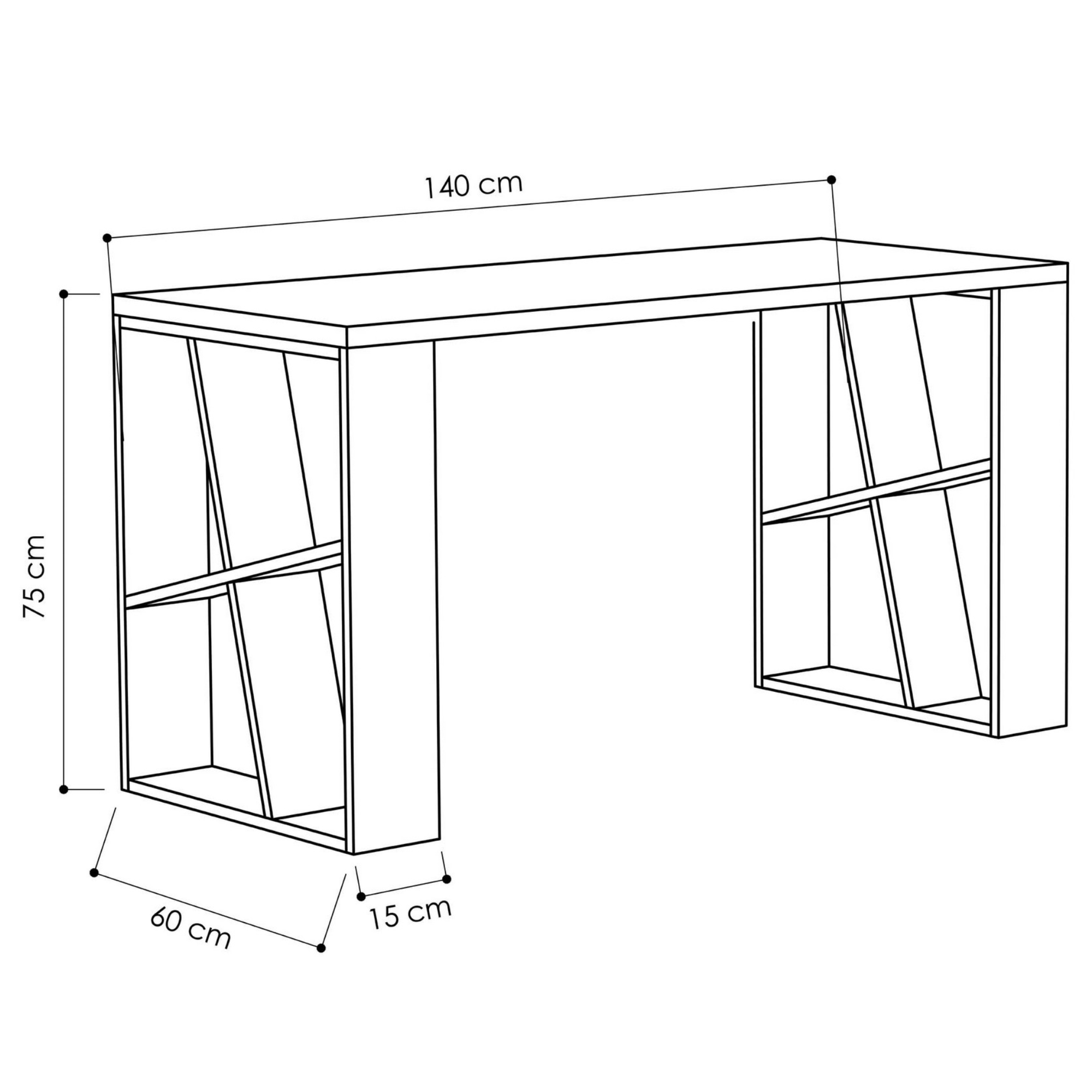 Nechajte sa uniesť geometrickými tvarmi a oživte svoju pracovňu či kanceláriu stolom HONEY. Široká pracovná doska s hĺbkou 60 cm poskytuje dostatok miesta na prácu na PC a ostatné činnosti. Na bokoch stola sú asymetricky vložené police, ktoré môžete využiť na uloženie drobnejších predmetov. Laminovaná drevotriesková doska je nenáročná na údržbu a ideálna na každodenné používanie