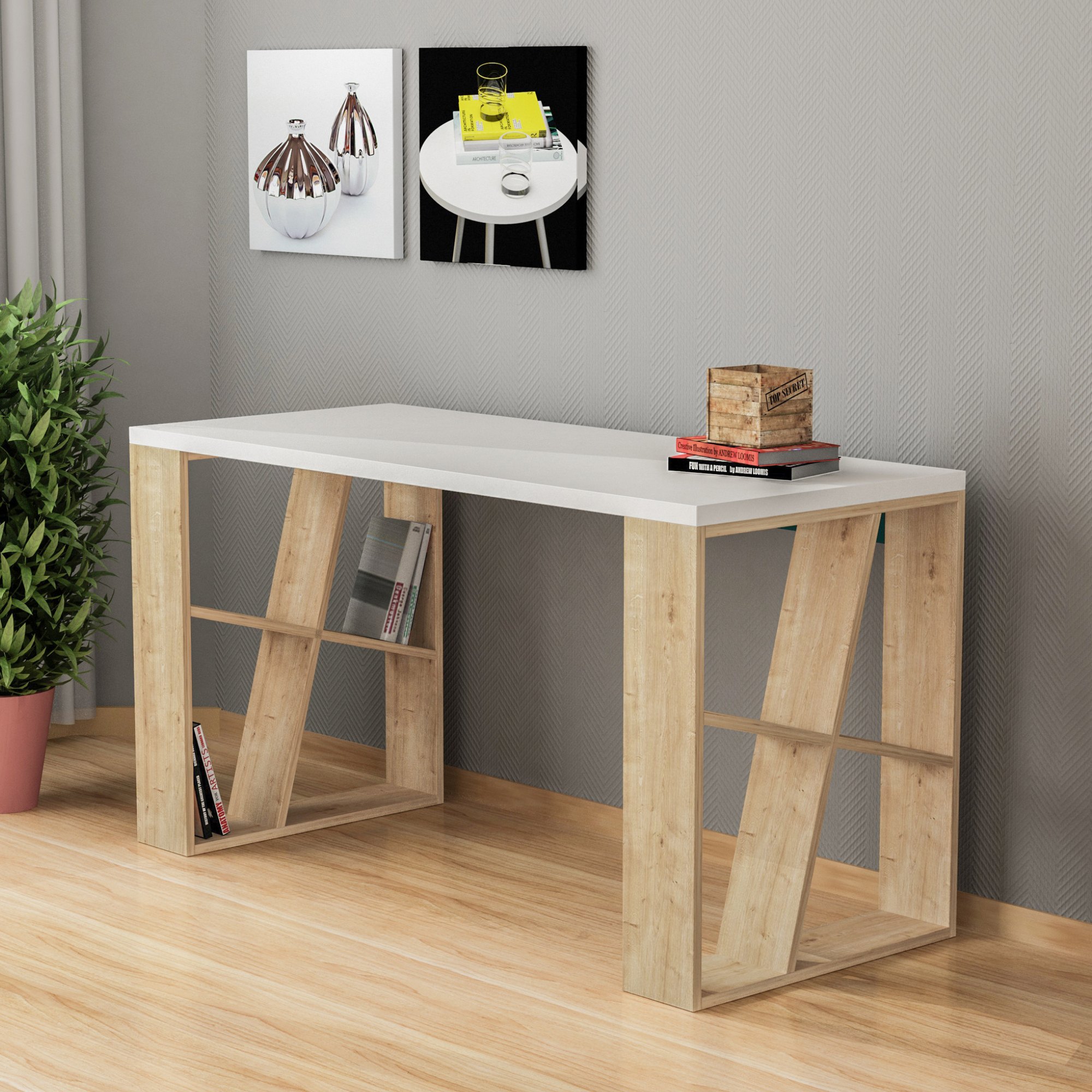 Nechajte sa uniesť geometrickými tvarmi a oživte svoju pracovňu či kanceláriu stolom HONEY. Široká pracovná doska s hĺbkou 60 cm poskytuje dostatok miesta na prácu na PC a ostatné činnosti. Na bokoch stola sú asymetricky vložené police, ktoré môžete využiť na uloženie drobnejších predmetov. Laminovaná drevotriesková doska je nenáročná na údržbu a ideálna na každodenné používanie