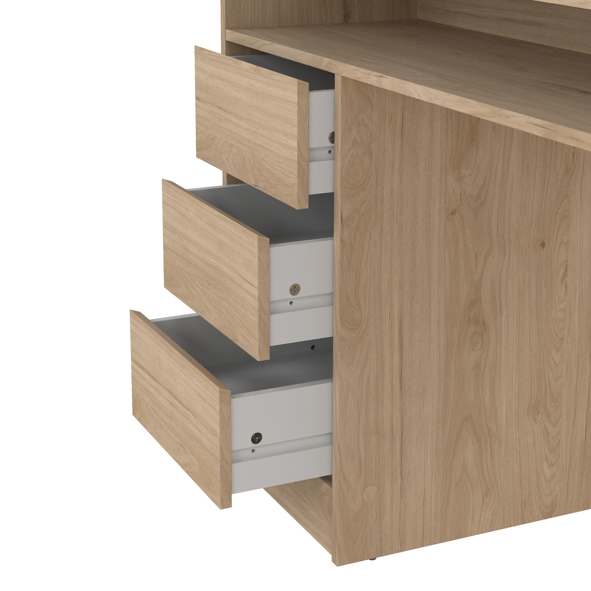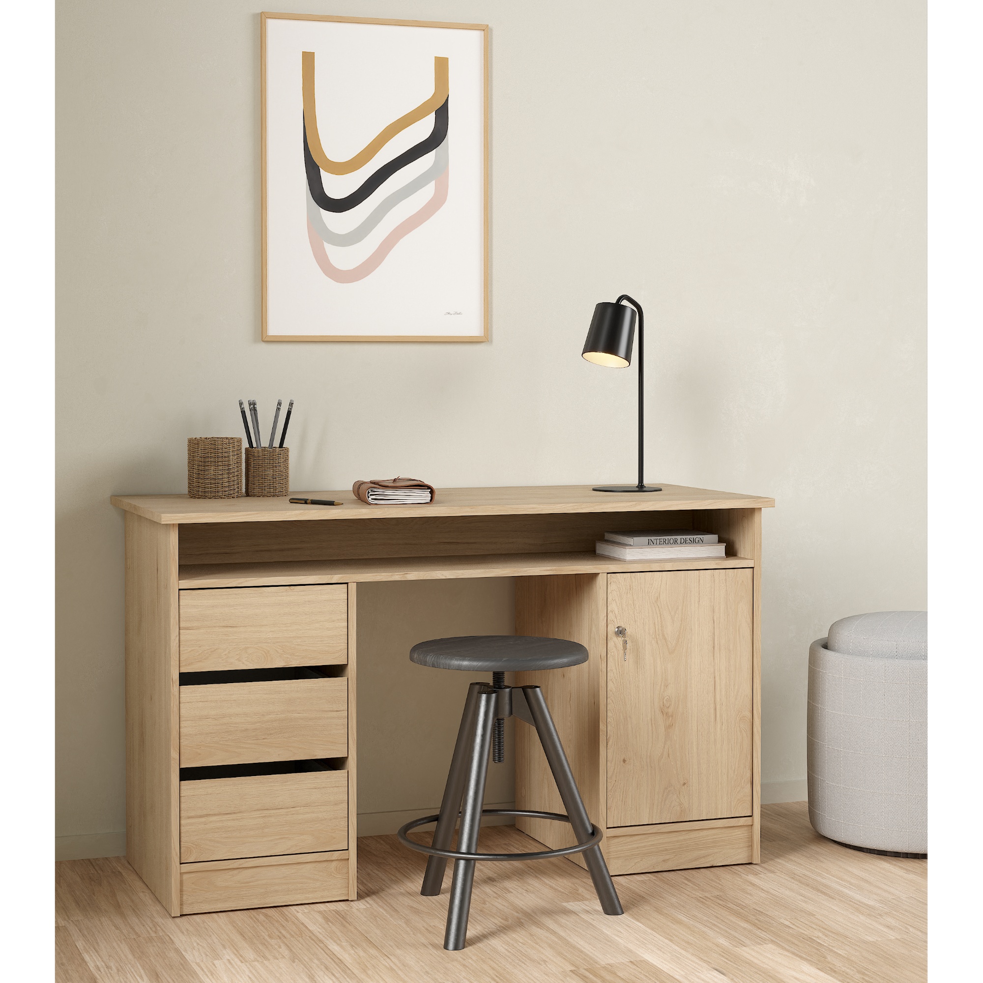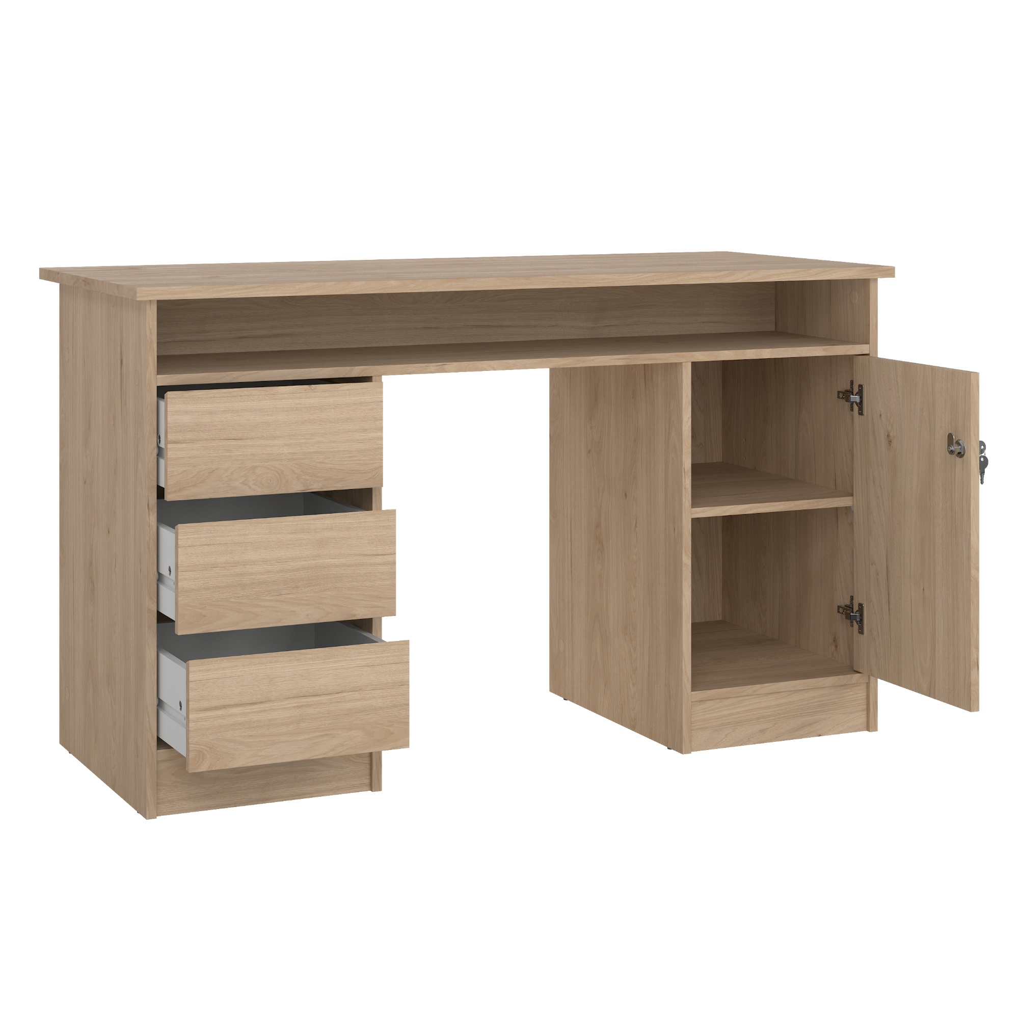 Písací stôl KUZMO ponúka dostatok úložného priestoru, a tak do neho bez problémov uschováte nielen všetky vaše kancelárske potreby, ale aj iné drobnosti.