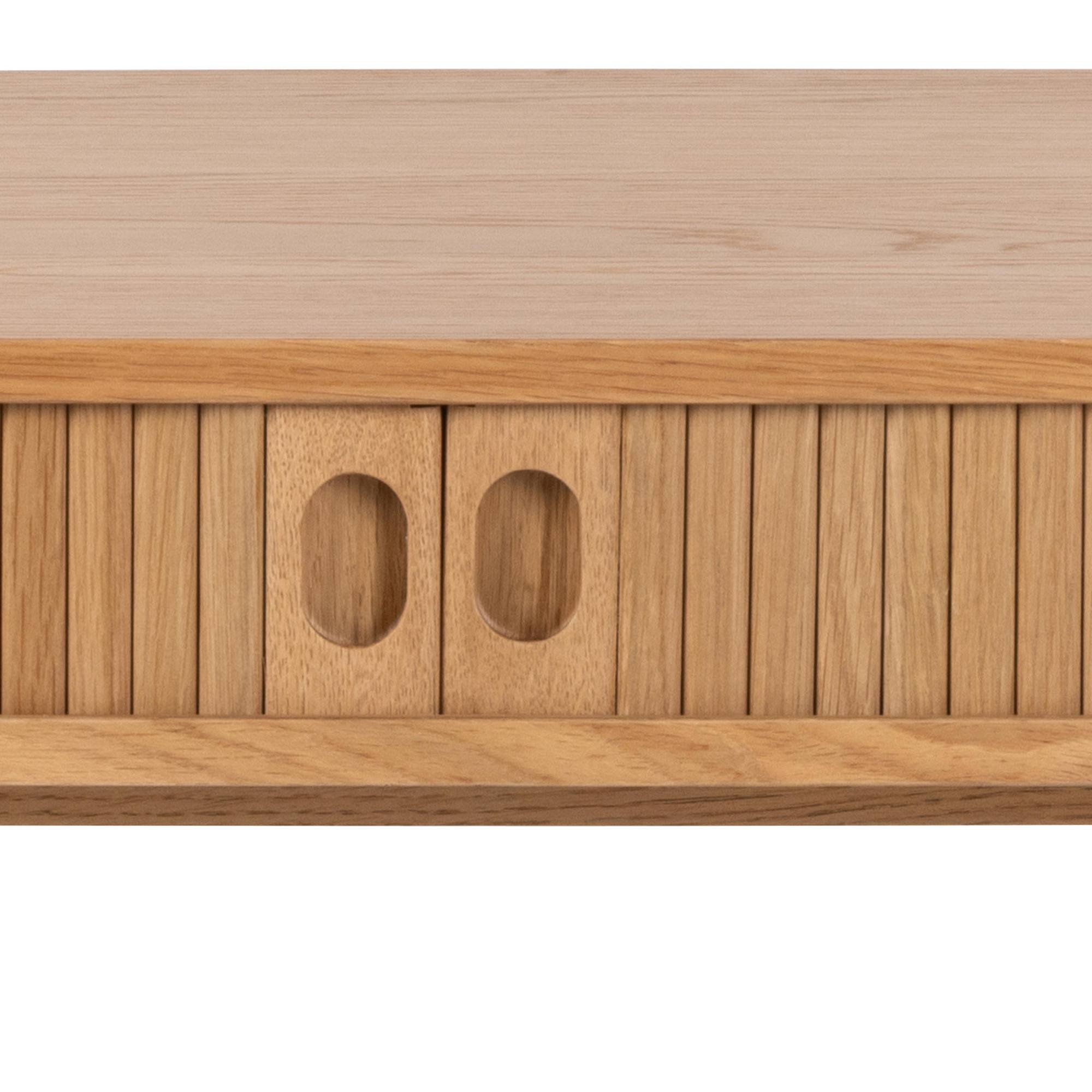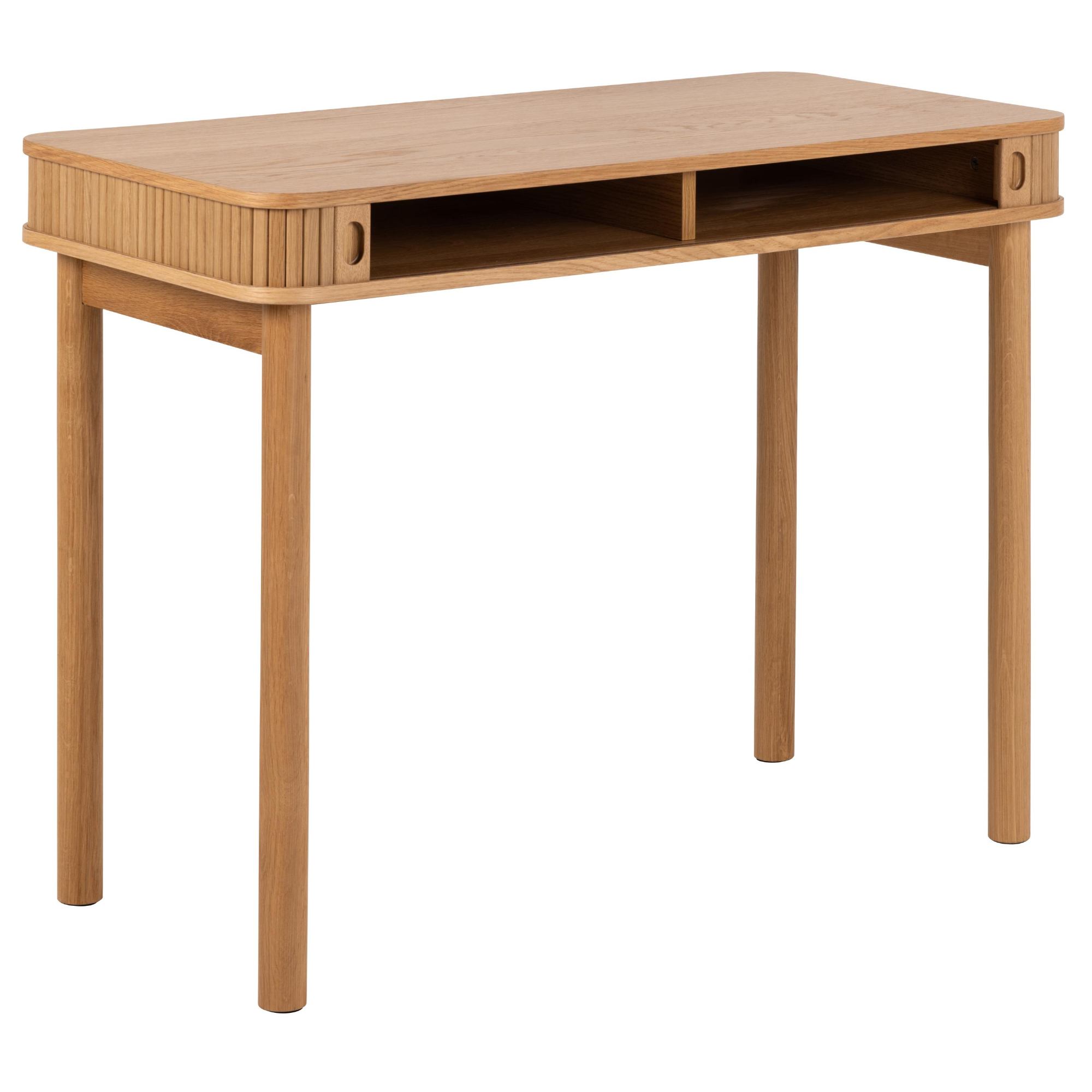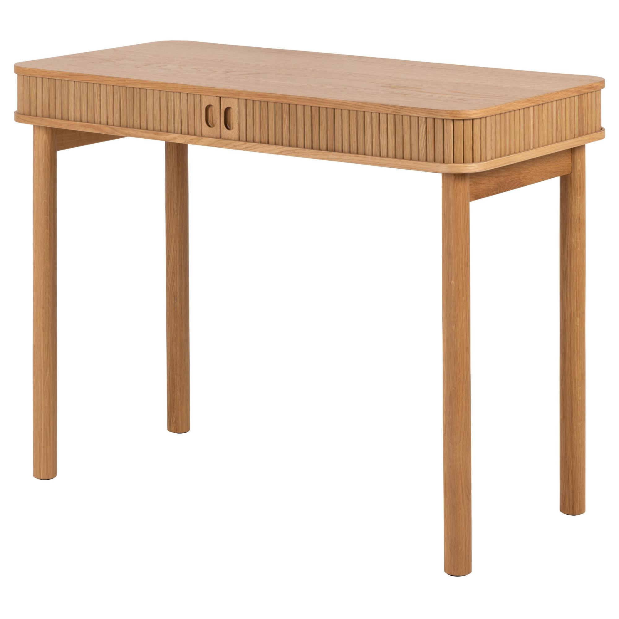 Nevšedný dizajn písacieho stola LANGLEY vás upúta na prvý pohľad. Tento kúsok nábytku obdĺžnikového tvaru so zaoblenými rohmi kombinuje moderný a prírodný dizajn, ktorý sa prispôsobí každému štýlu vášho interiéru. Lamely určujú charakteristický vzhľad tohto stola.