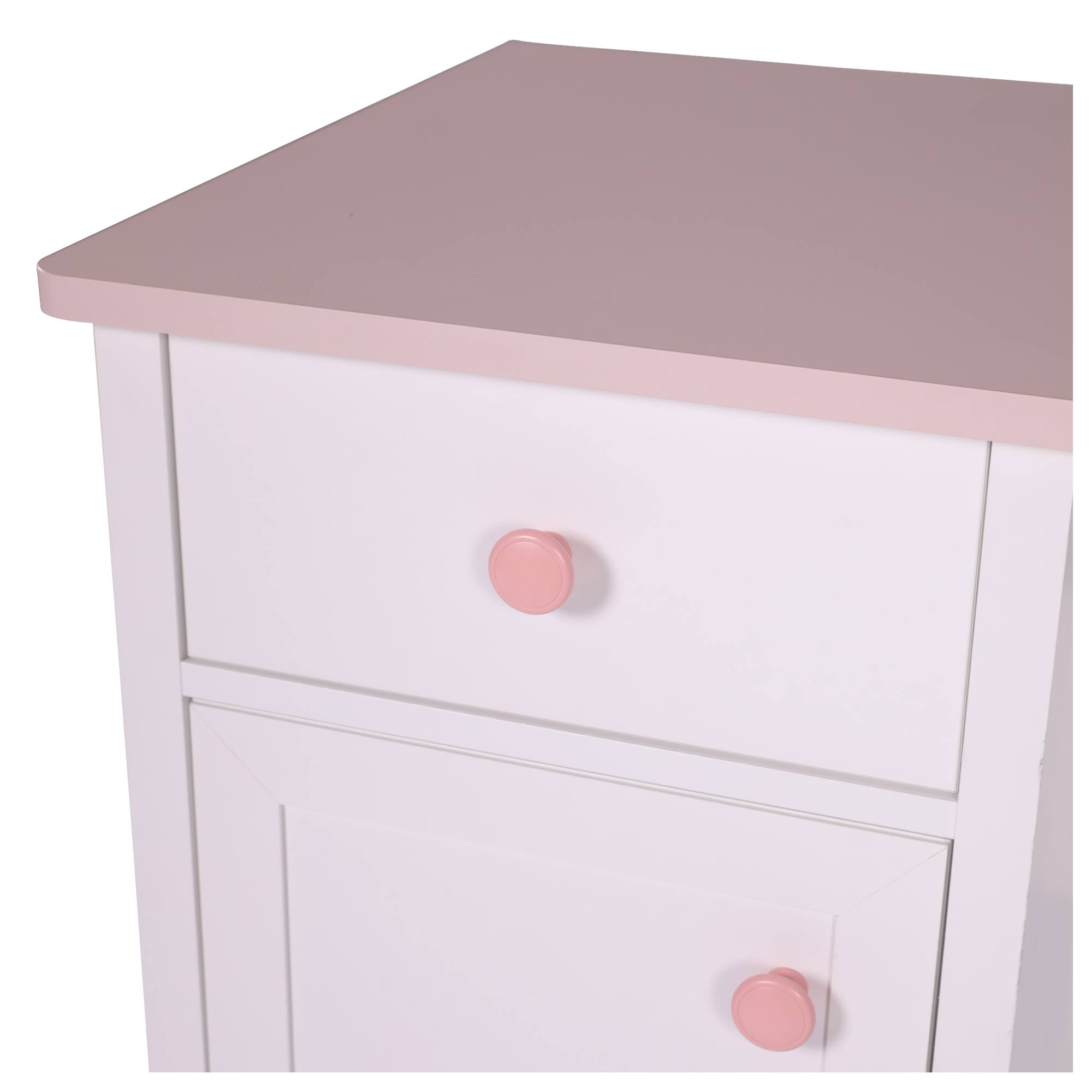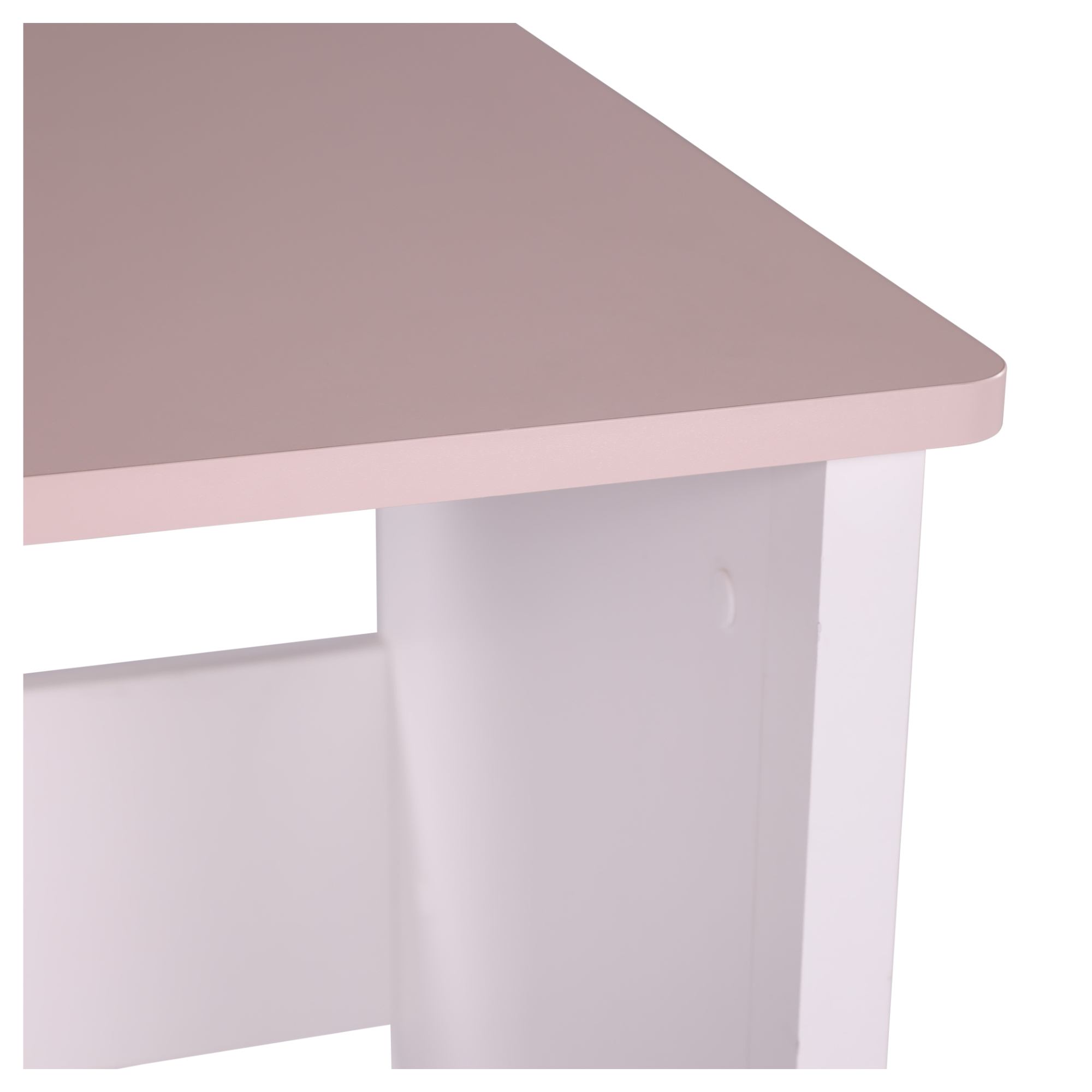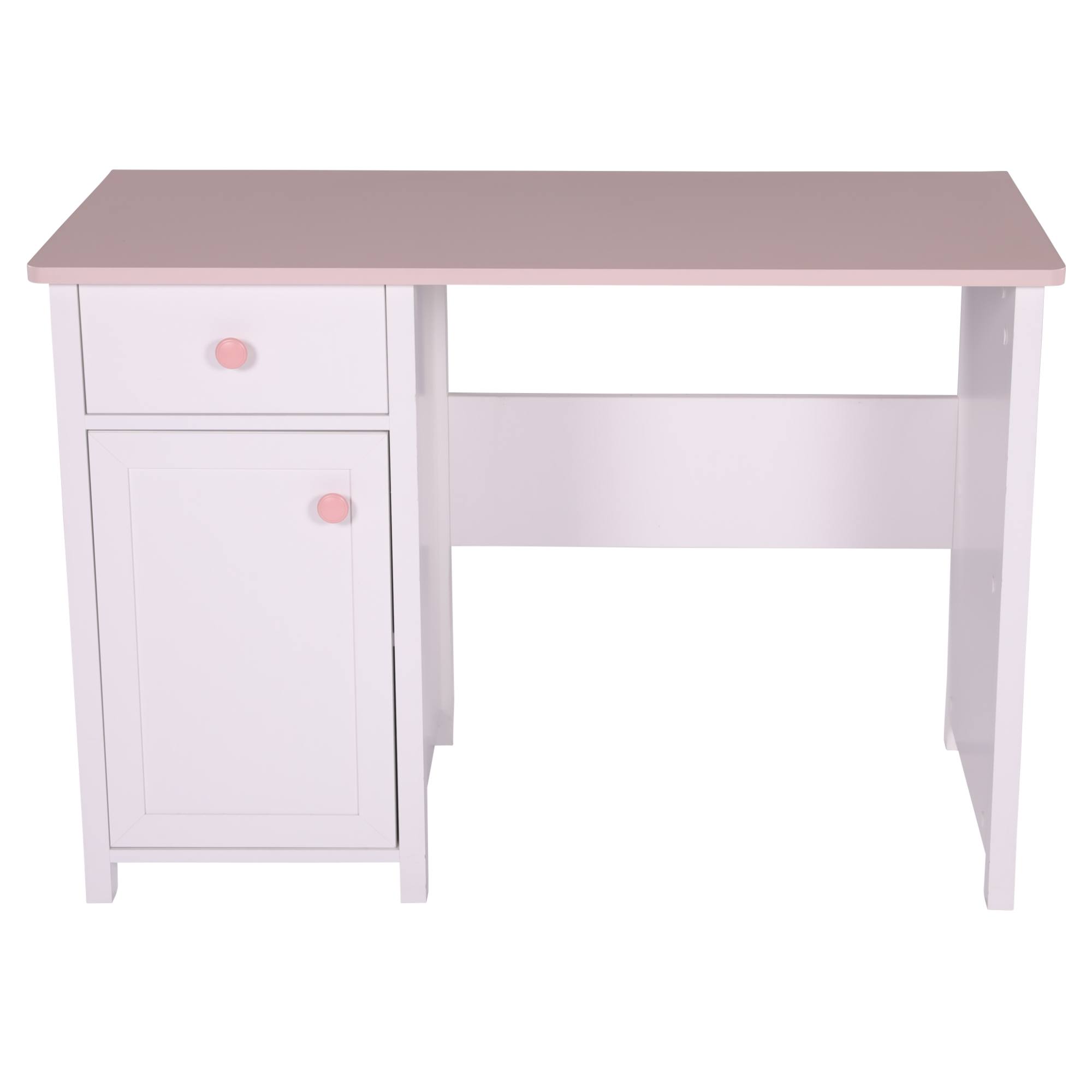 Obsahuje úložný priestor v podobe jednej zásuvky a vloženej police za otočnými dvierkami. Samotná pracovná doska poskytuje plno miesta na akúkoľvek činnosť. Písací stôl je vyrobený z laminovanej drevotrieskovej dosky, materiál je nenáročný na údržbu.