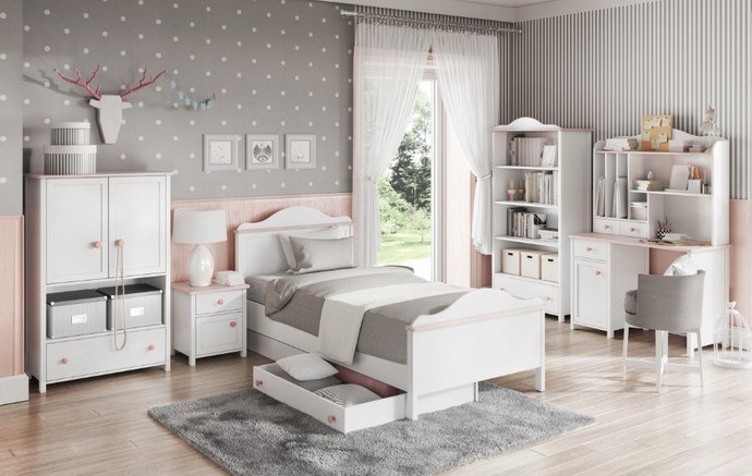 Písací stôl LUNA predstavuje jednoduchý moderný dizajn s jemnými líniami a príjemnými neutrálnymi farbami. Tento štýl a vzhľad nábytku sa hodí do detskej izbičky.