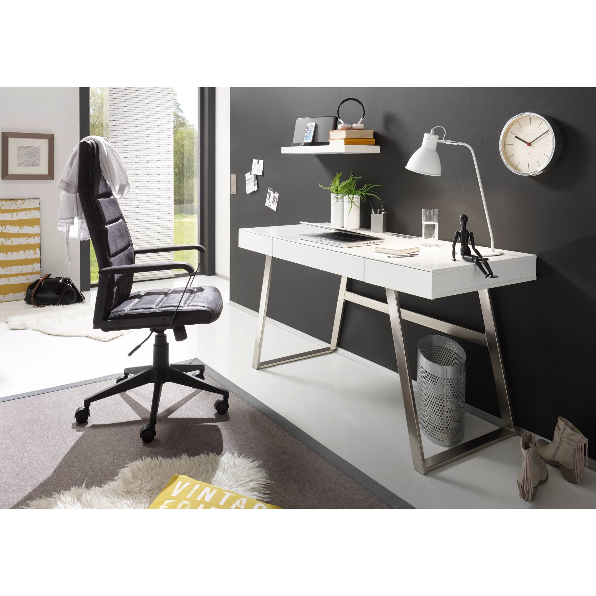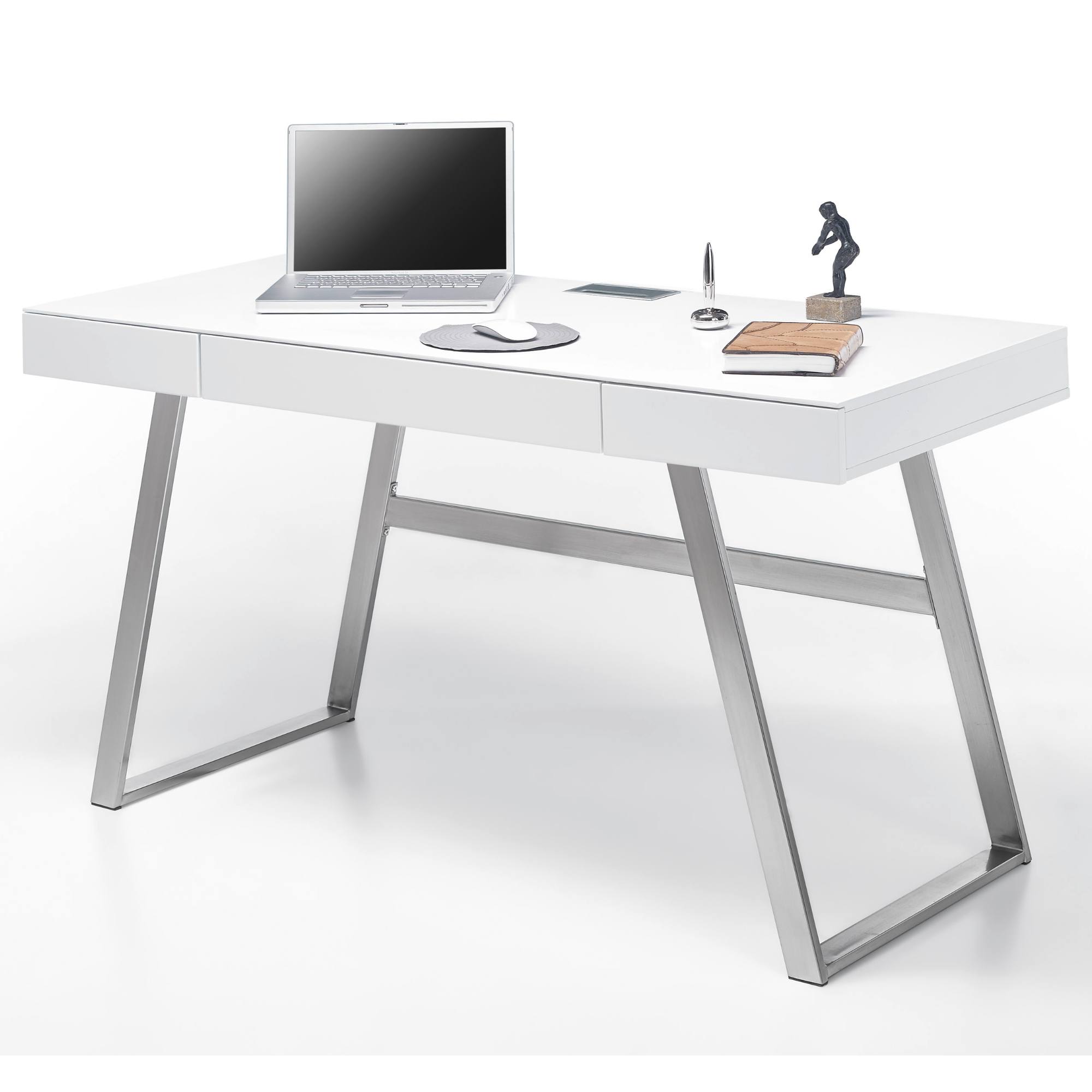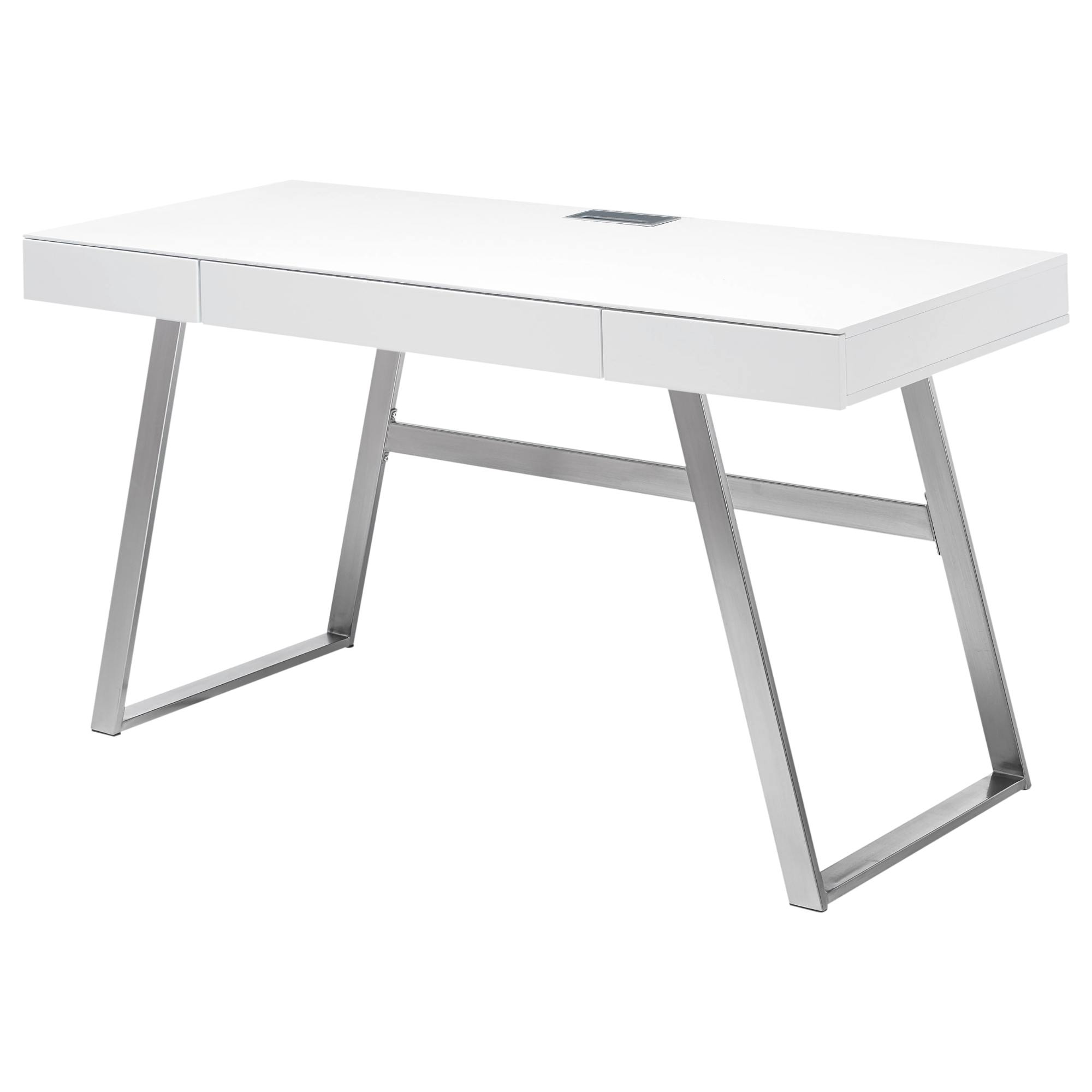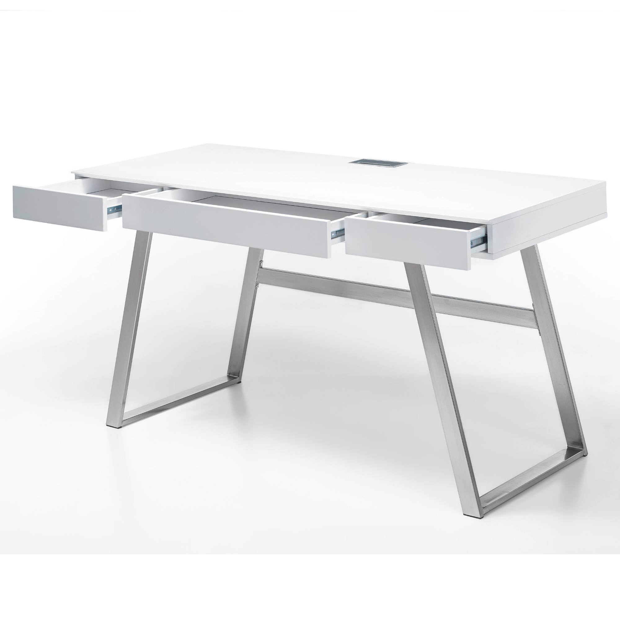 Pracovná doska z lakovaného MDF materiálu vám poslúži na každodennú činnosť. Všetky káble z vašich zariadení môžete viesť namontovaným otvorom. Stôl tiež disponuje nenápadnými zásuvkami, ktoré využijete na uloženie dokumentov a iných predmetov. Kovové nohy striebornej farby podopierajú celý stôl, ktorému zároveň dodávajú stabilitu.