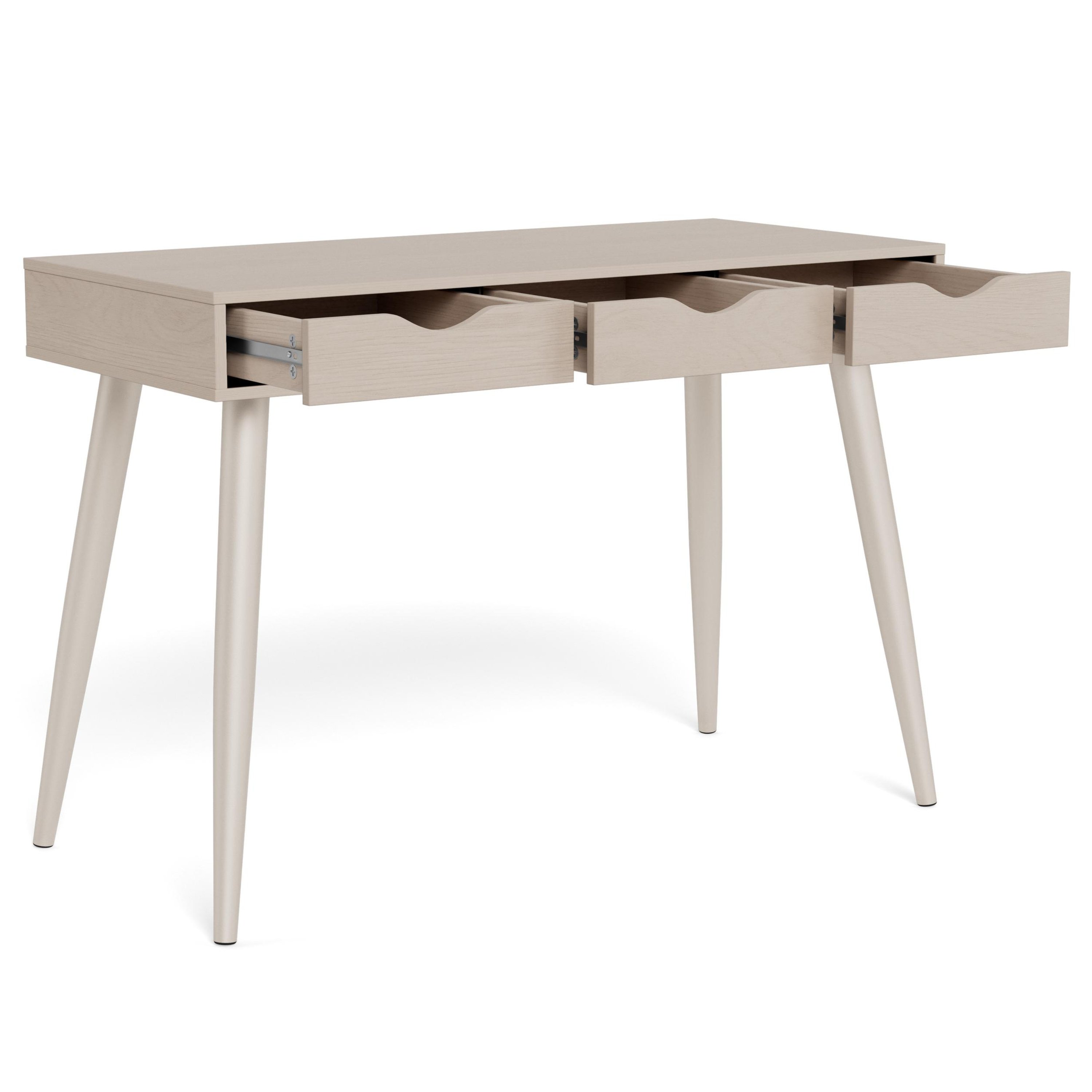 Pevná kovová konštrukcia sa stará o to, aby bol stôl dostatočne stabilný. Pod doskou sa nachádzajú tri praktické zásuvky, ktoré poskytujú priestor na uloženie nevyhnutných kancelárskych potrieb.