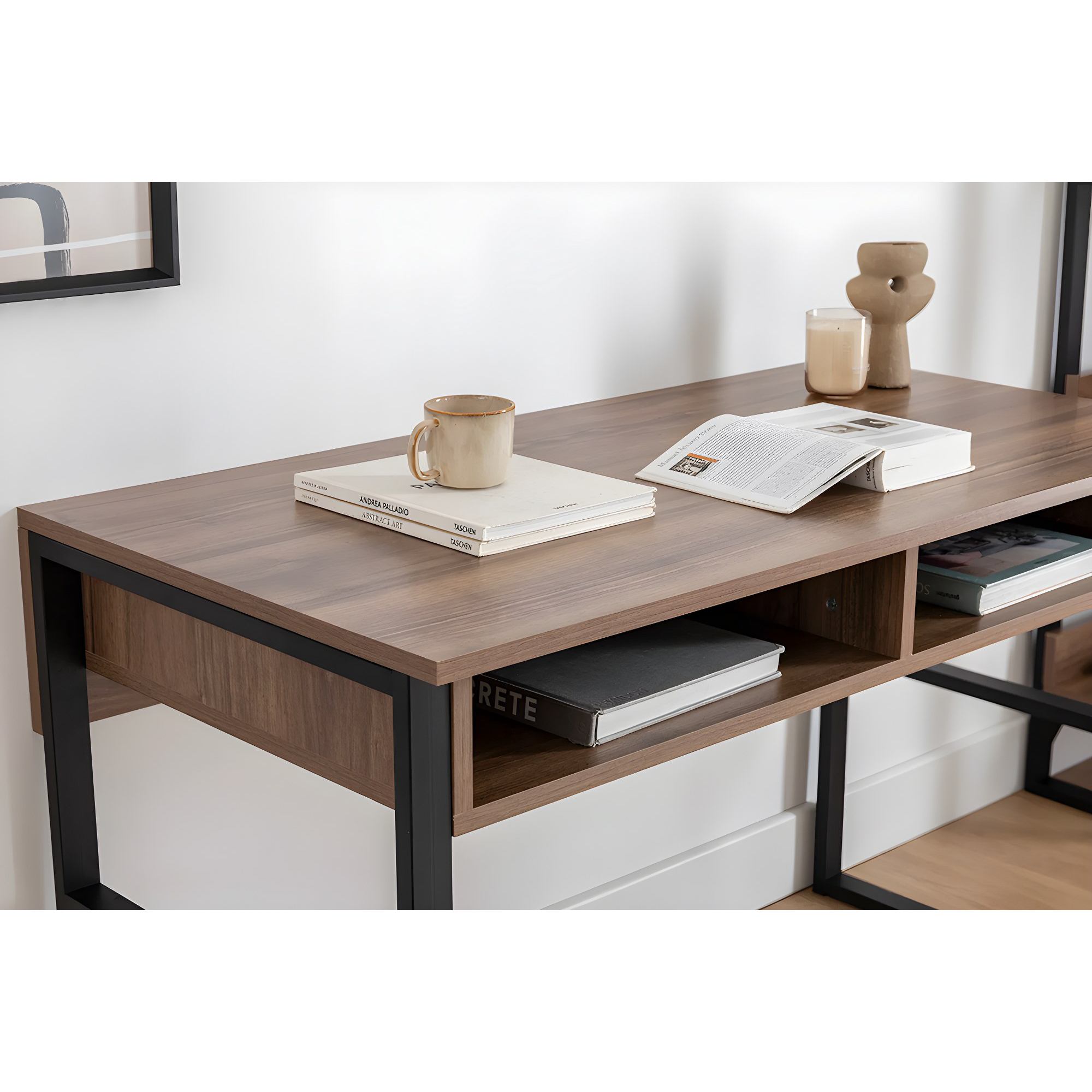 Minimalistický písací stôl NOVE sa vďaka modernému dizajnu skvele hodí do každého interiéru. Dostatočne široká pracovná plocha doplnená o priestranné priehradky vám umožní uloženie všetkých vašich dokumentov, ktoré budete mať vždy po ruke. Laminovaný drevený materiál sa vyznačuje nenáročnou údržbou a je ideálny na každodenné používanie.