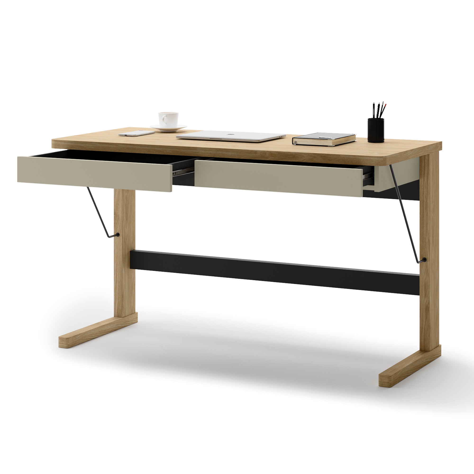 Okrem priestrannej dosky disponuje tento stôl aj 2 zásuvkami, do ktorých si môžete uschovať drobné kancelárske pomôcky.