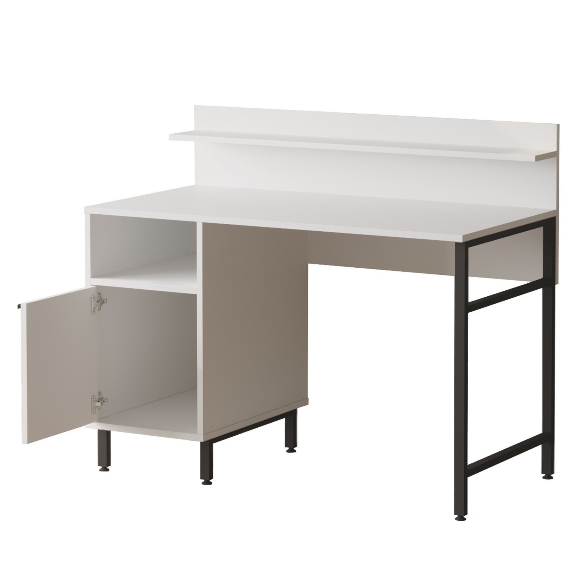 Stôl je vybavený kontajnerom, do ktorého si môžete uložiť všetky kancelárske pomôcky. Nechýba ani 1 polica. Aby sa s dvierkami na kontajneri ľahko manipulovalo, sú vybavené praktickou rúčkou.