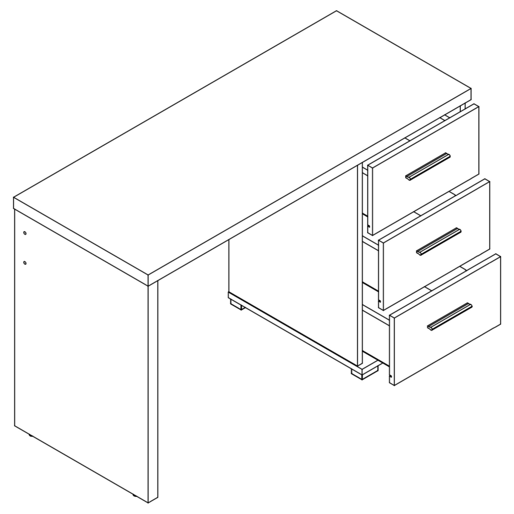 Jednoduchý písací stôl PEN v modernom dizajne sa hodí do každého interiéru. Disponuje skrinkou s tromi zásuvkami, ktoré poskytujú dostatok úložného priestoru. Decentné rúčky zdôrazňujú celkový štýl stola. Vyrobený je z dobre udržiavateľného lamina, rúčky sú vo farbe kovu.