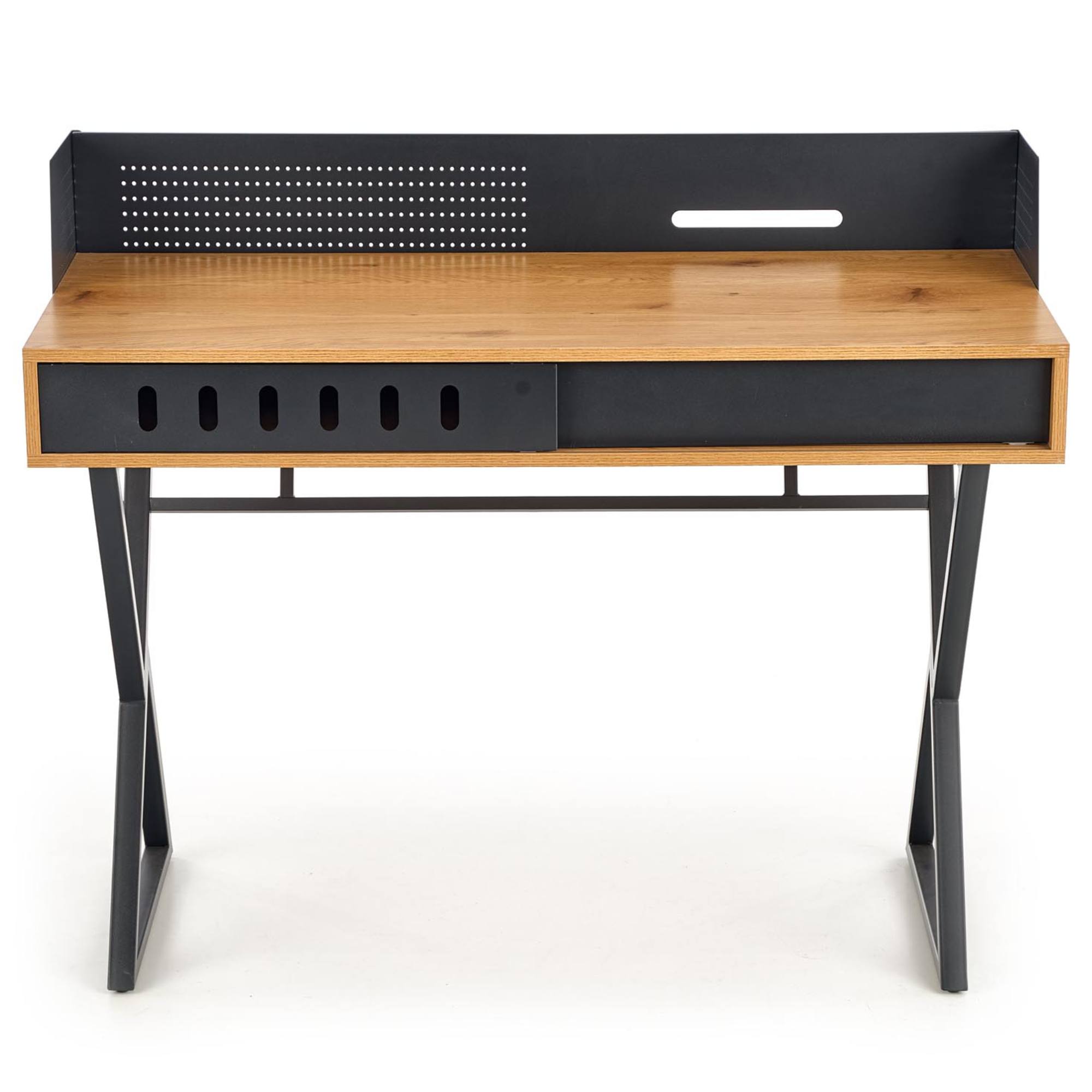 Elegantný a minimalistický písací stôl SCB-43 sa vďaka decentnému dizajnu skvele hodí do každého interiéru. Doska stola zaisťuje dostatok miesta na prácu. Vďaka svojmu praktickému úložnému priestoru sa stane nepostrádateľnou súčasťou vášho každodenného života. Dva priestory s posuvnými prvkami pod hornou doskou vám poskytnú dostatok miesta na uloženie všetkého potrebného, kde sa vám na nič nebude prášiť. Hlavným materiálom je dyhovaná doska z dubového dreva.
