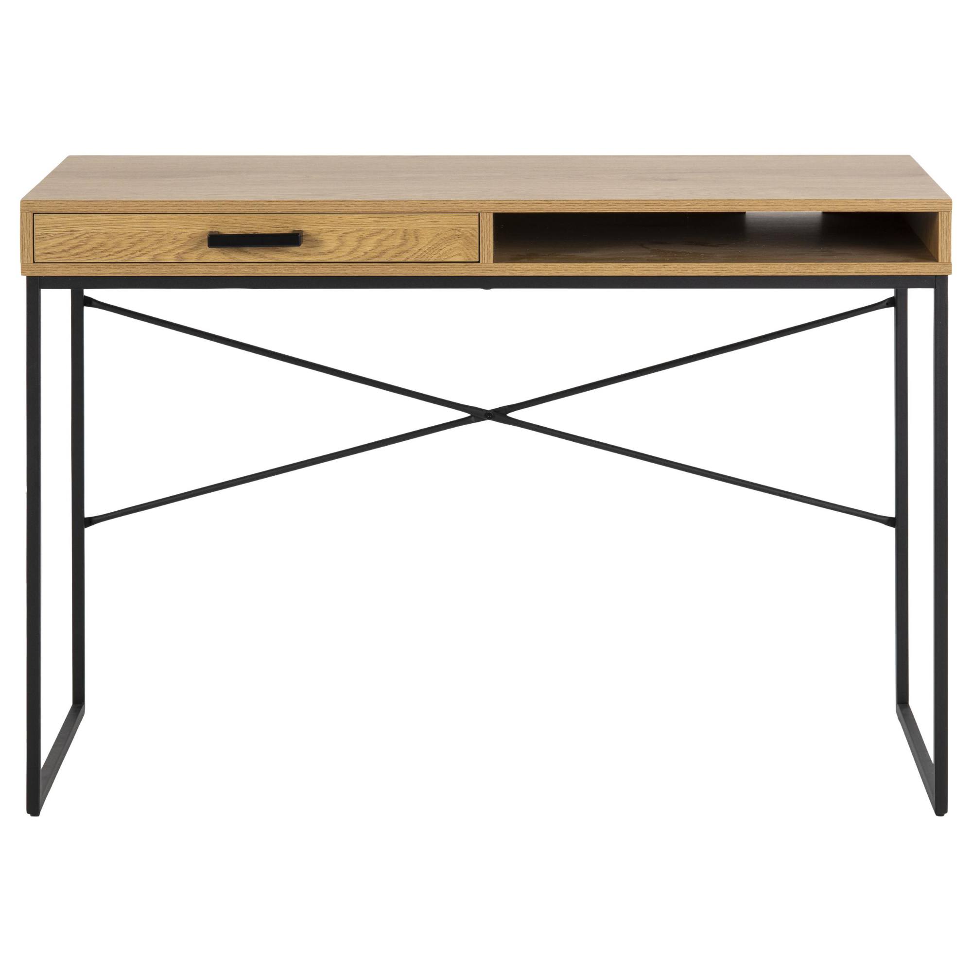 Písací stôl SEAFORD 4 je typ stola, ktorý vyniká svojou jednoduchosťou a funkčnosťou. Doska stola zaisťuje dostatok miesta na prácu. Pod doskou nájdete úložný priestor v podobe jednej zásuvky a otvorenej priehradky. Vysoké kovové nohy zaisťujú potrebnú pevnosť a stabilitu. Materiál je nenáročný na údržbu.