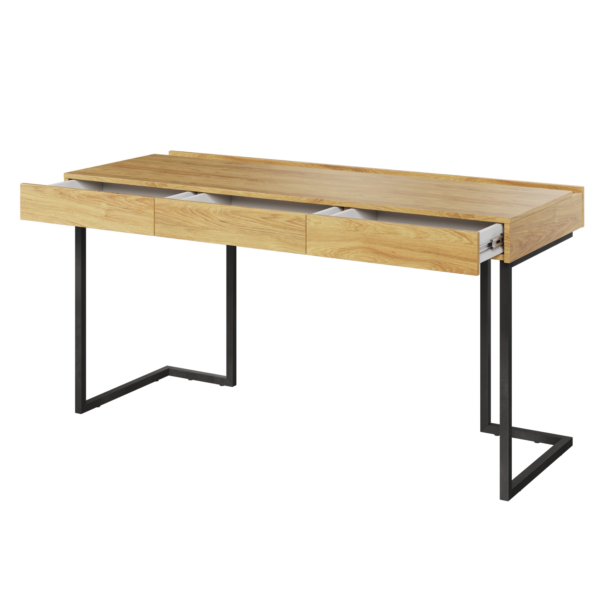 Stôl ponúka dostatočne veľkú odkladaciu a pracovnú plochu vyhotovenú v prírodnom dekore orecha hiroka. Súčasťou dosky sú 3 integrované zásuvky na uschovanie dokumentov či školských potrieb. Predné plochy sú v minimalistickom vyhotovení bez rúčok. Konštrukciu podopierajú originálne riešené nohy z ocele, ktoré zaisťujú celkovú pevnosť a stabilitu stola. Hlavná doska je vyrobená z laminovanej drevotriesky, ktorá sa vyznačuje ľahkou udržiavateľnosťou.